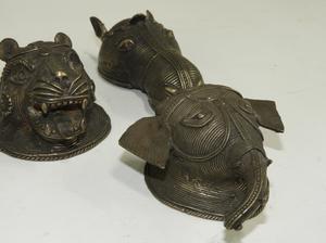 four metal work animal heads, 5 1/2" and smaller