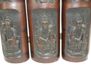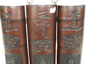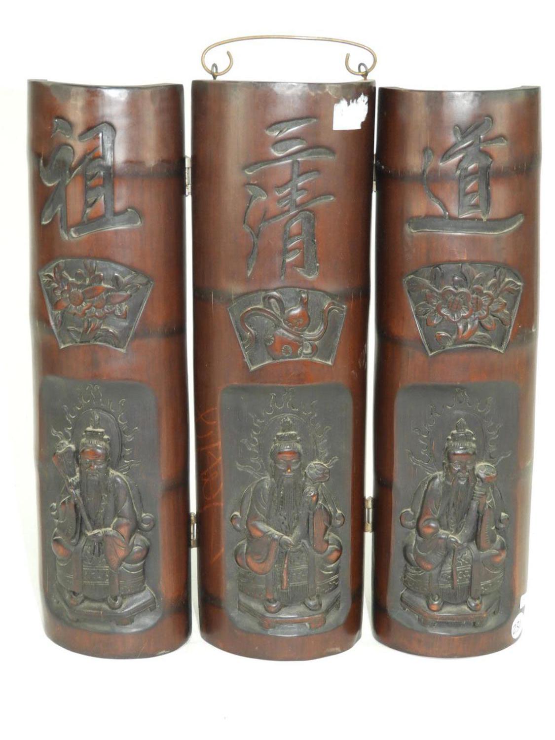 carved 3-section bamboo screen, 15 1/2" x 13 1/2"