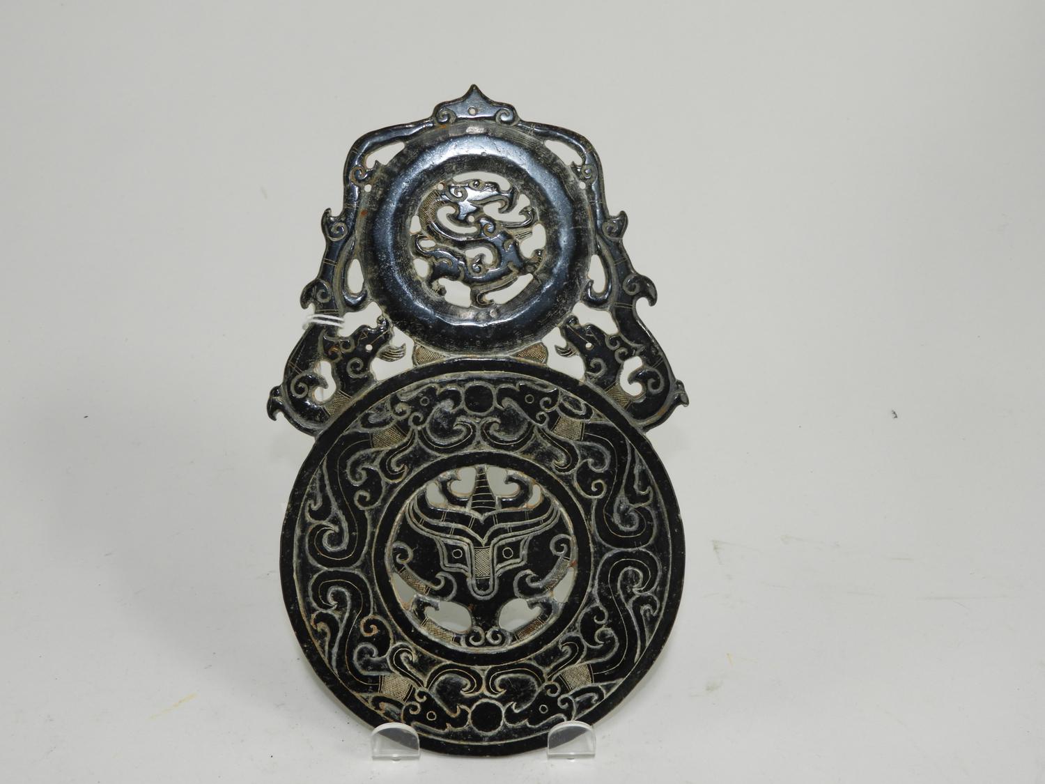 carved hardstone plaque, 9 1/4" x 5 3/4"