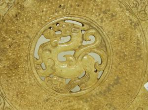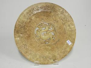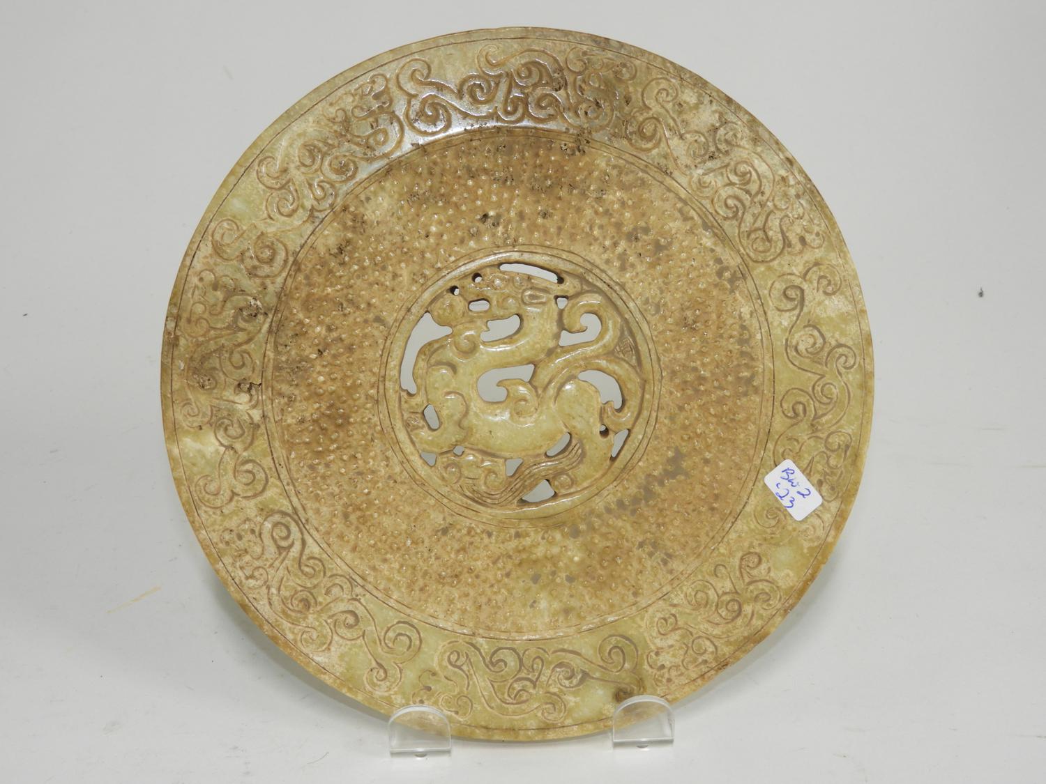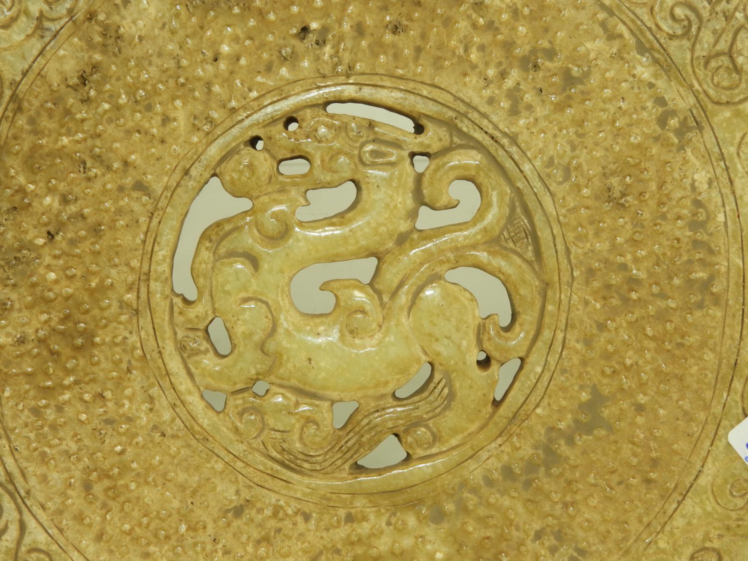 carved hardstone dragon motif disc, dia. 7 1/2"