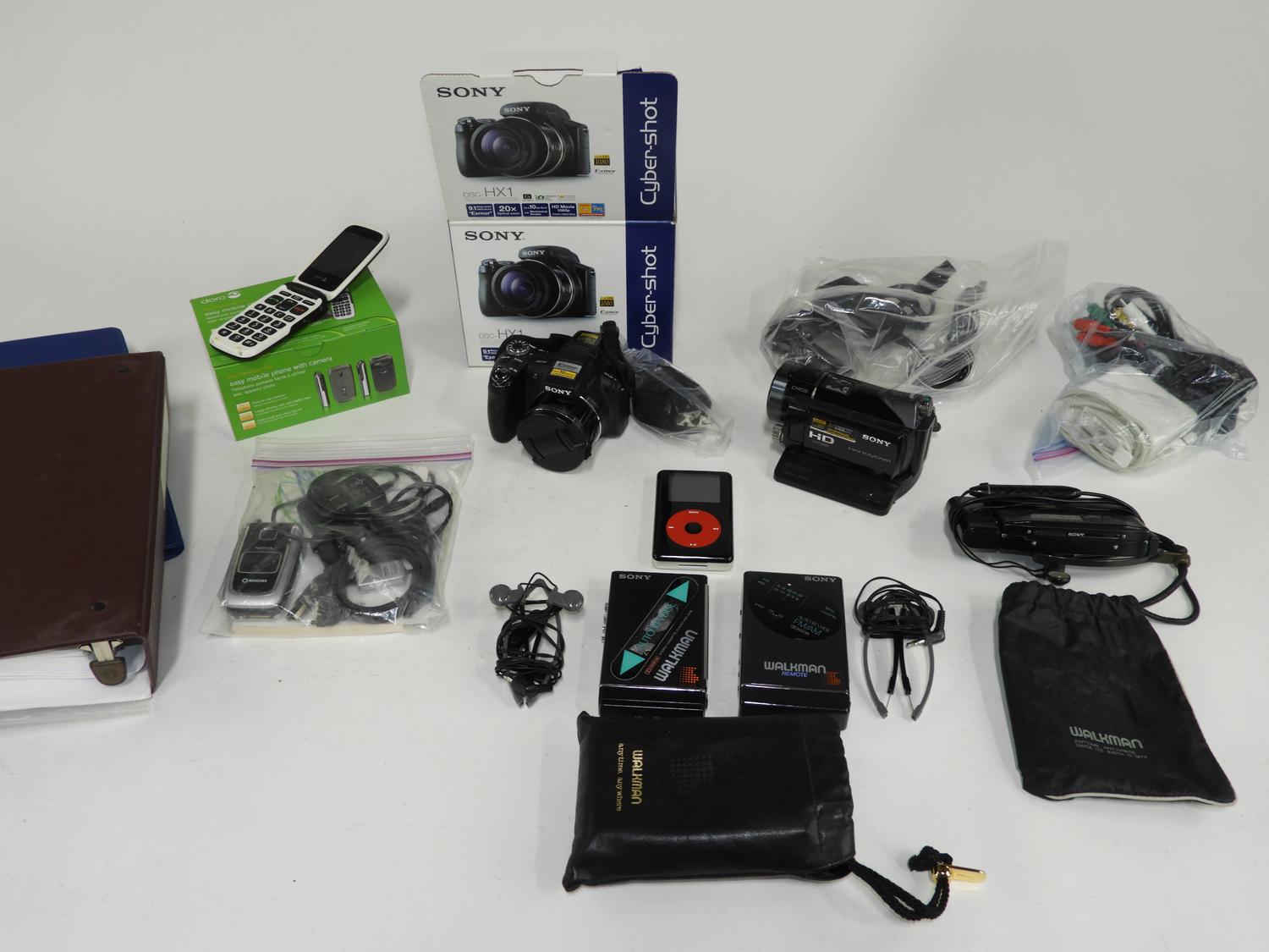 lot of camera's, phones etc., camera has no battery