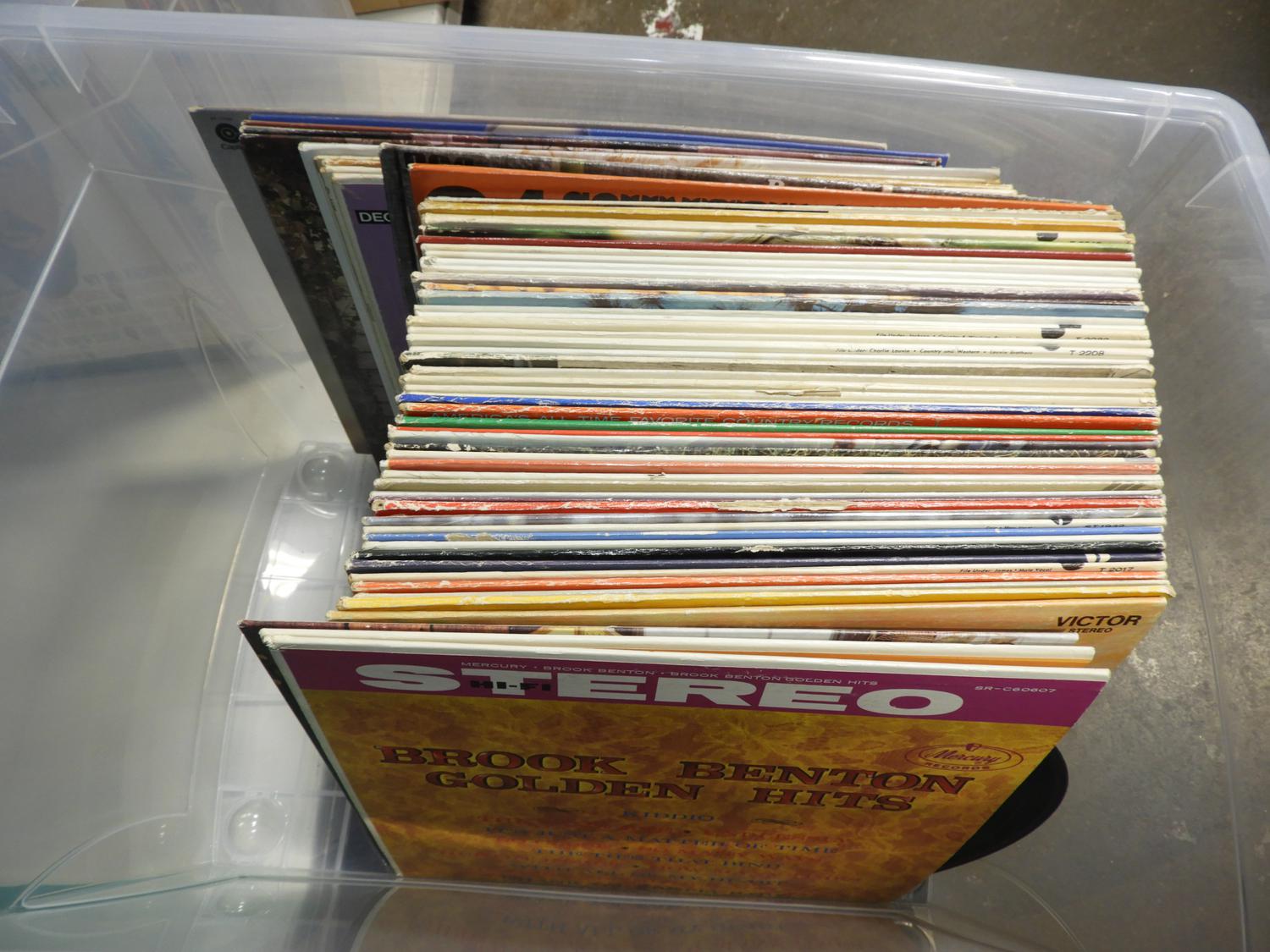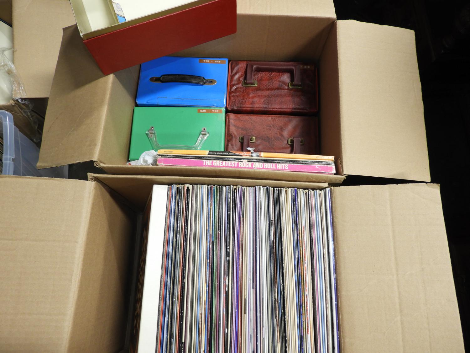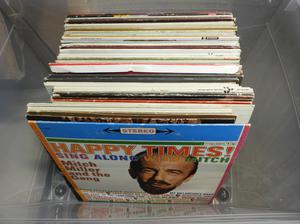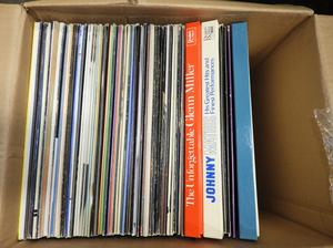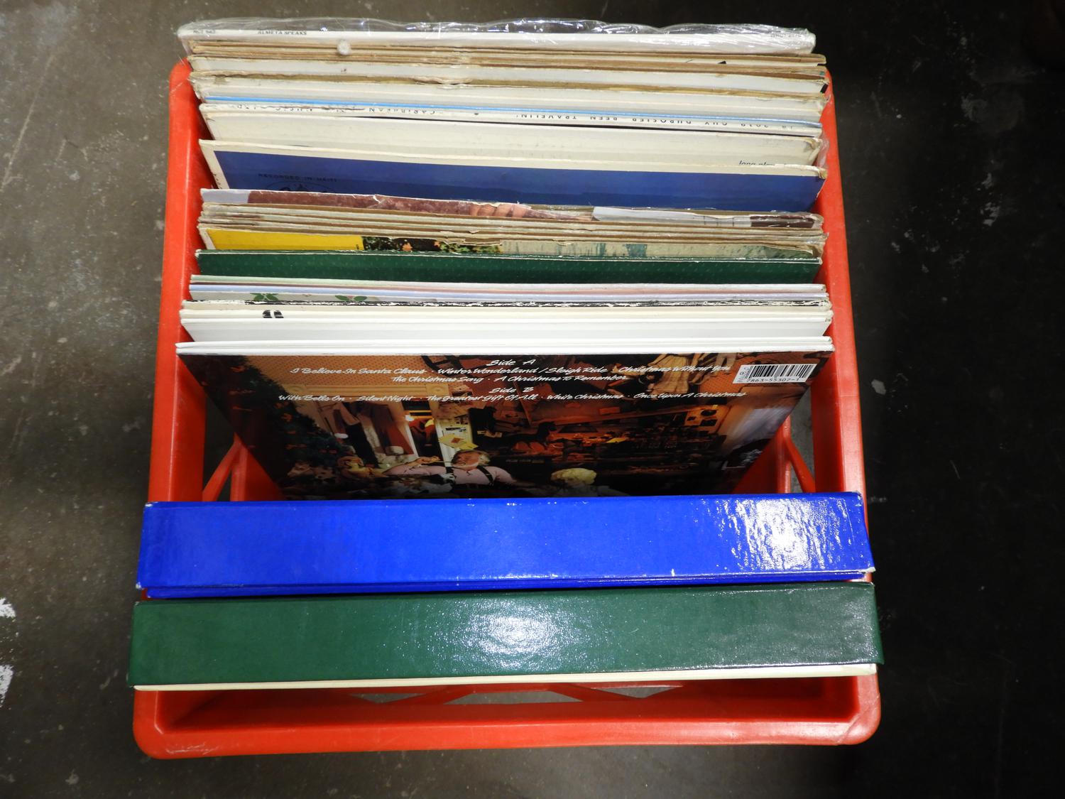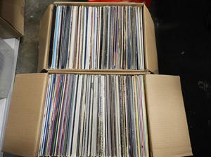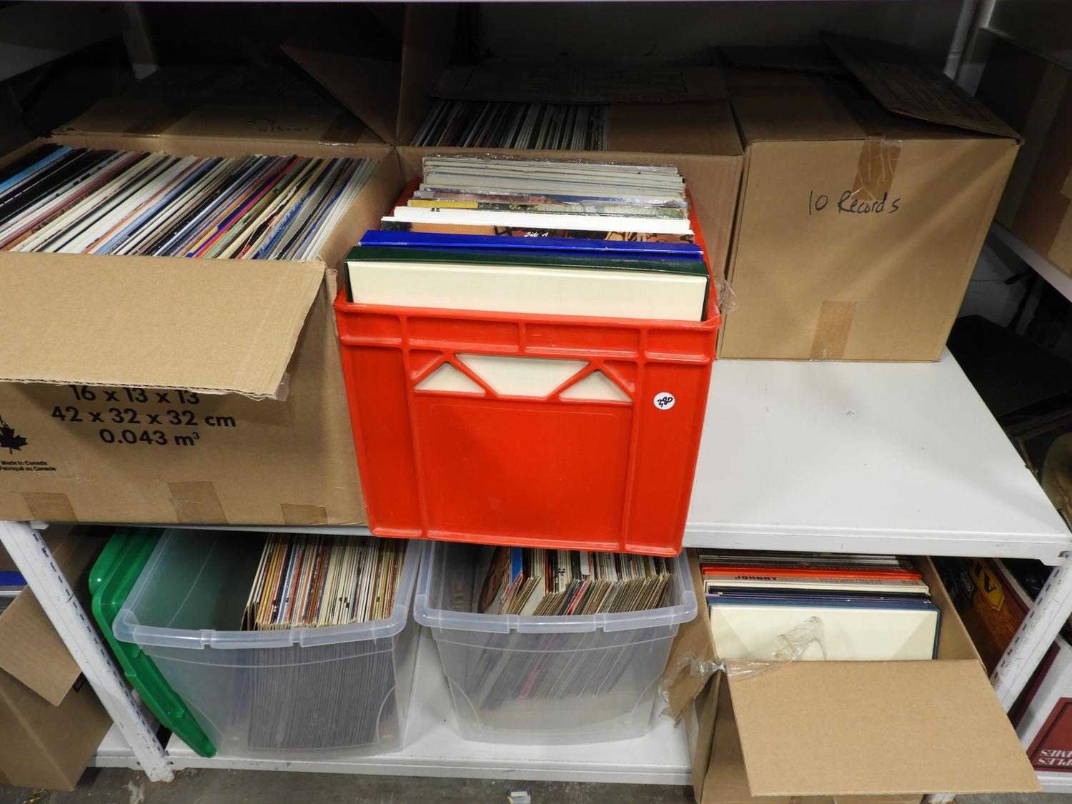 large lot of records, 5 boxes, 2 bins and one milk crate