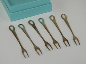 six elsa peretti sterling silver cocktail forks for tiffany with box