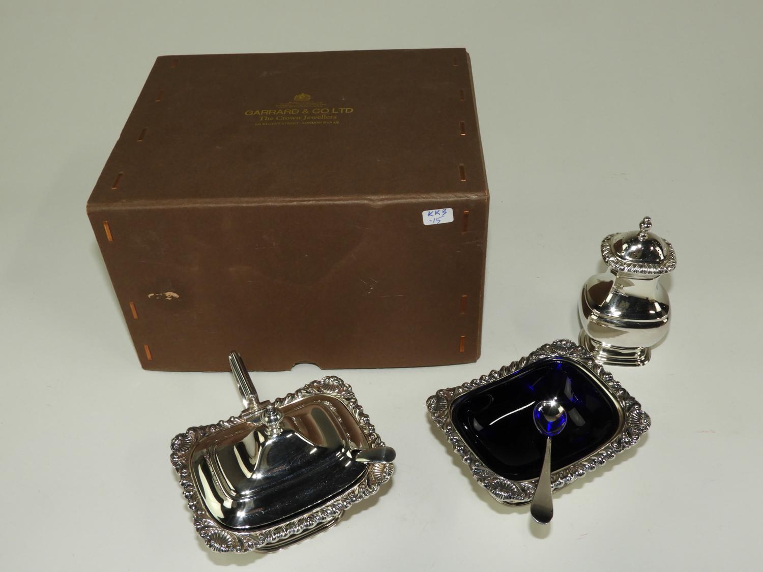 garrard & co. ltd silver plate 3pc table salt set