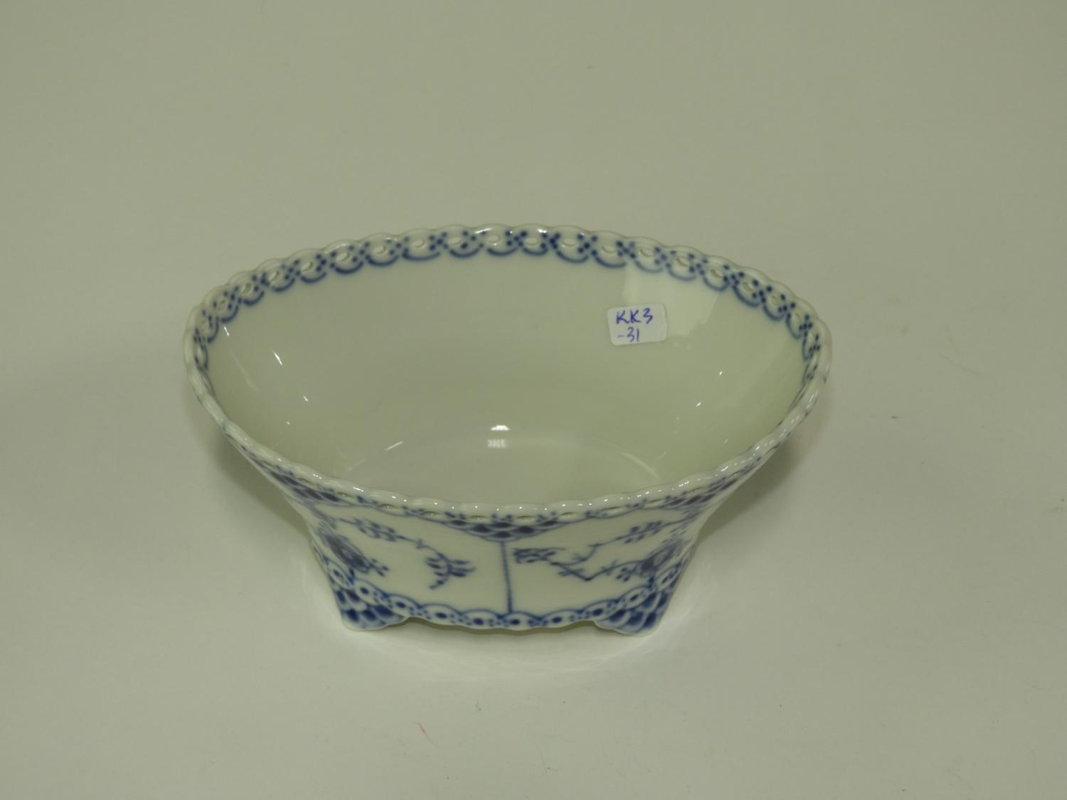 royal copenhagen onion pattern footed dish, length 6"