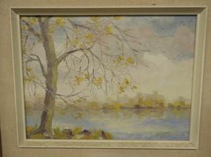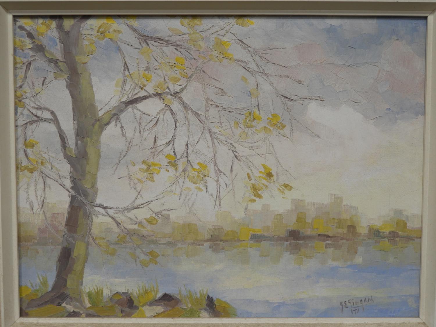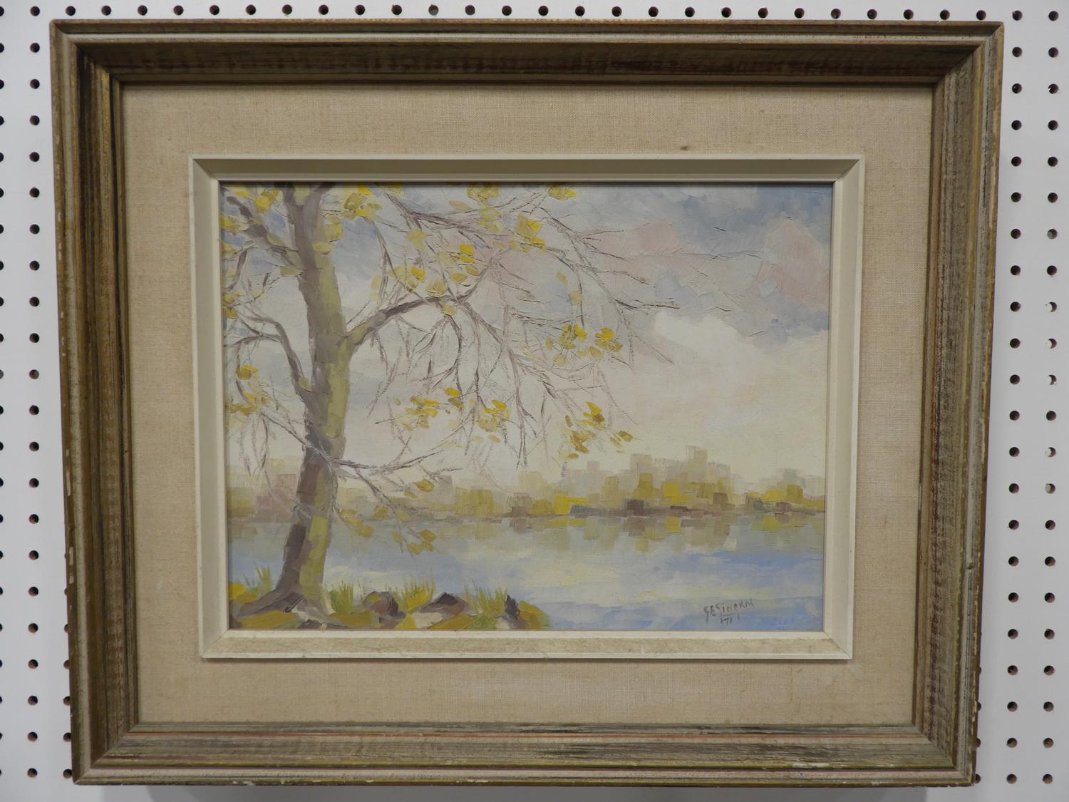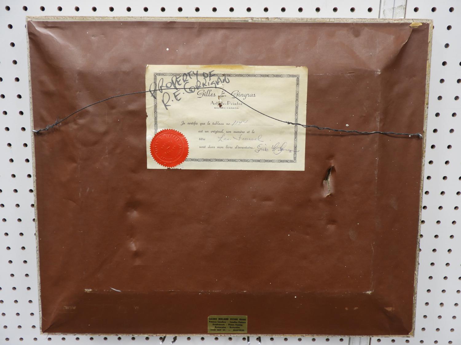 gilles emmanuel gingras (1932-2002), oil on canvas, d. 1971, 12" x 16", "lac fournel"