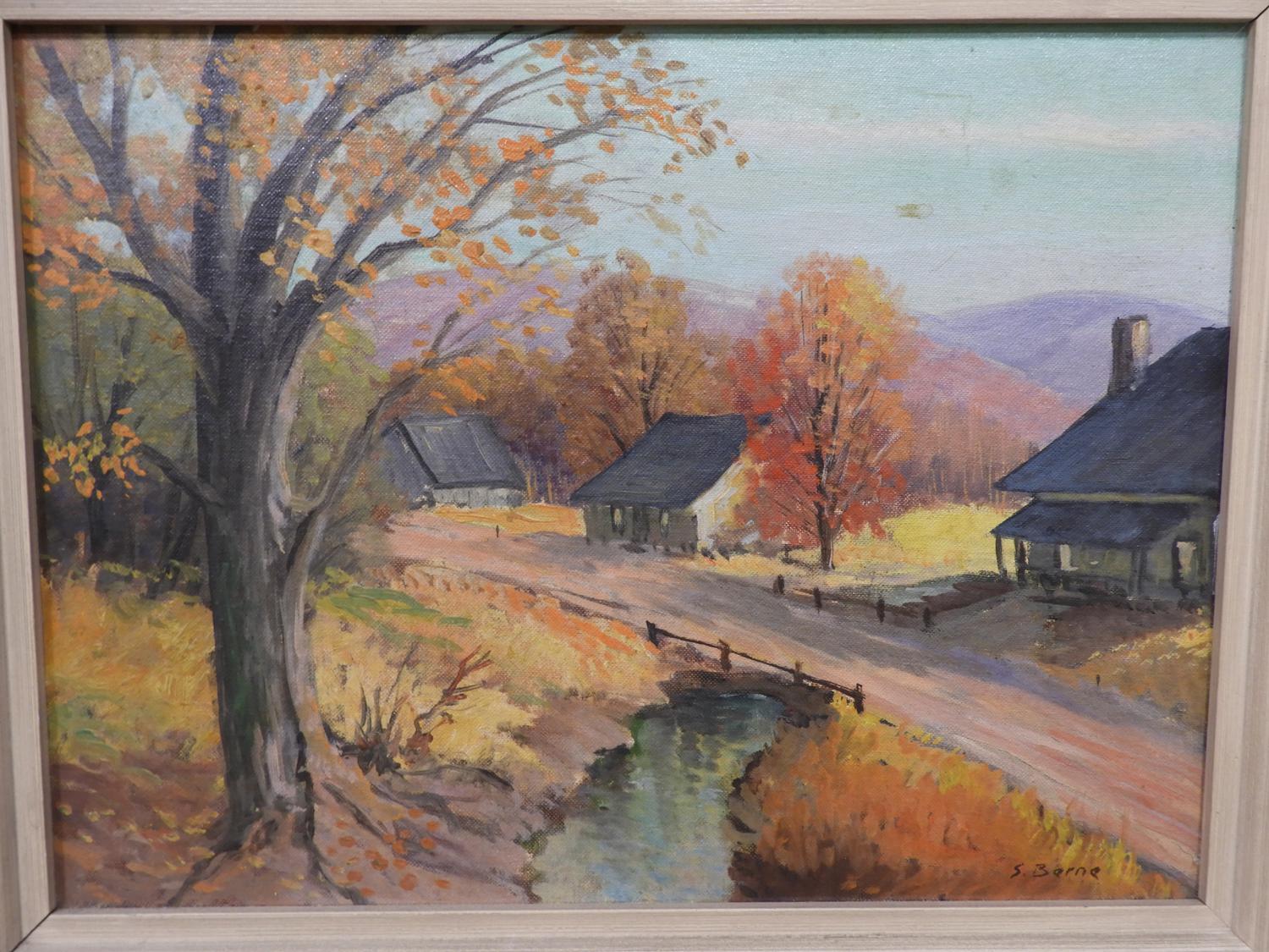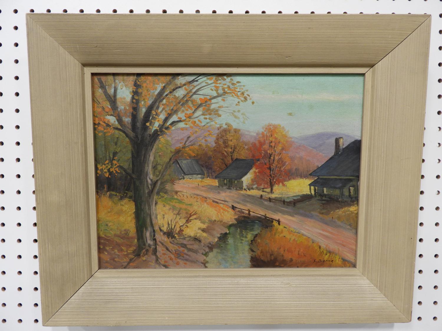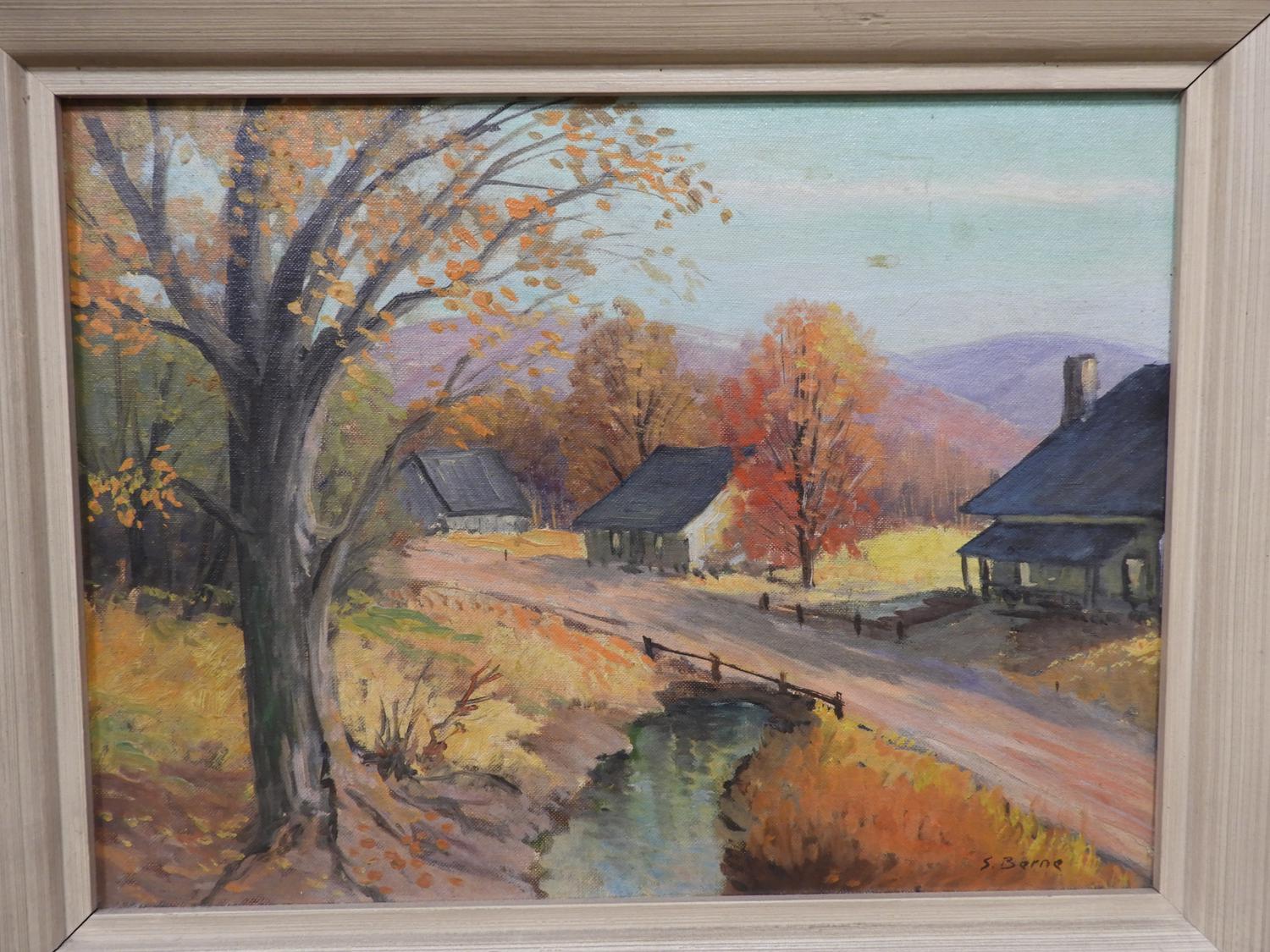sydney berne(1921-2013), oil on board, 12" x 16", "fall landscape"