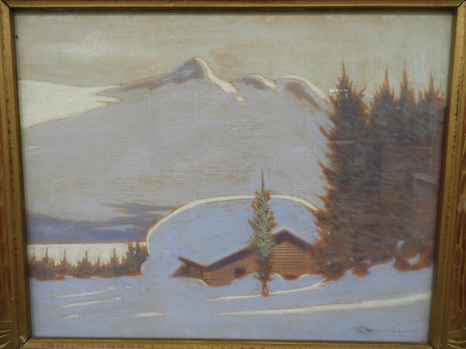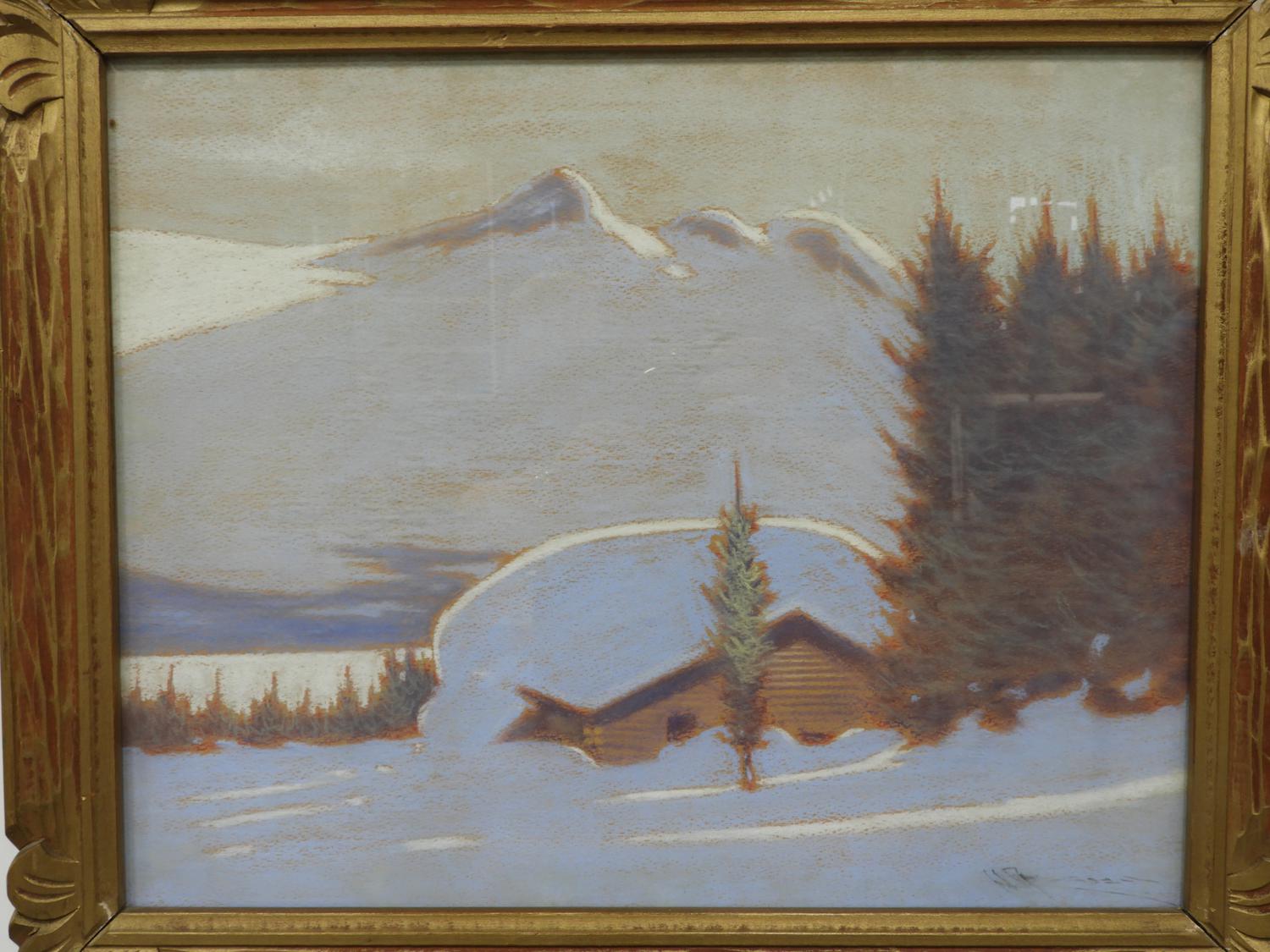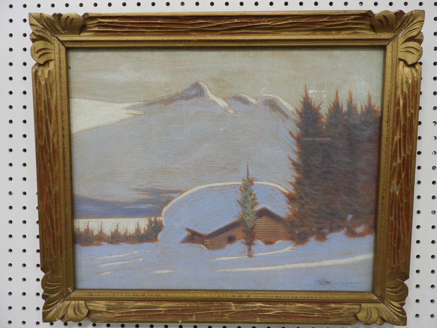 halfred a. tygesen (1890-1951), pastel, 16" x 20", "log cabin in winter"
