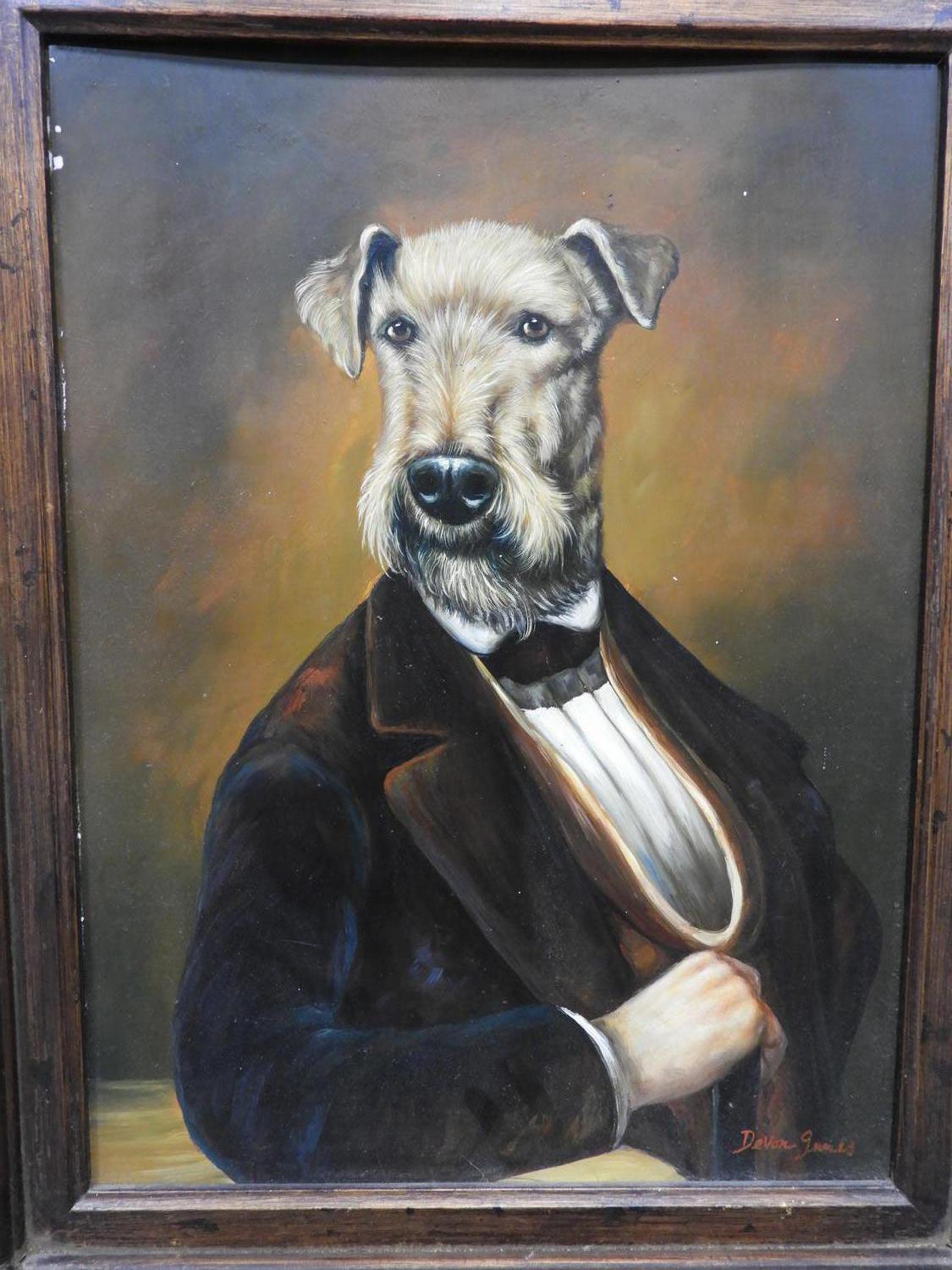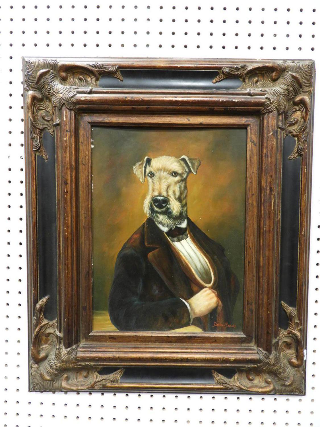 indistinctly signed oil on panel, 15 1/2" x 11 1/2", "portrait of a gentleman dog"