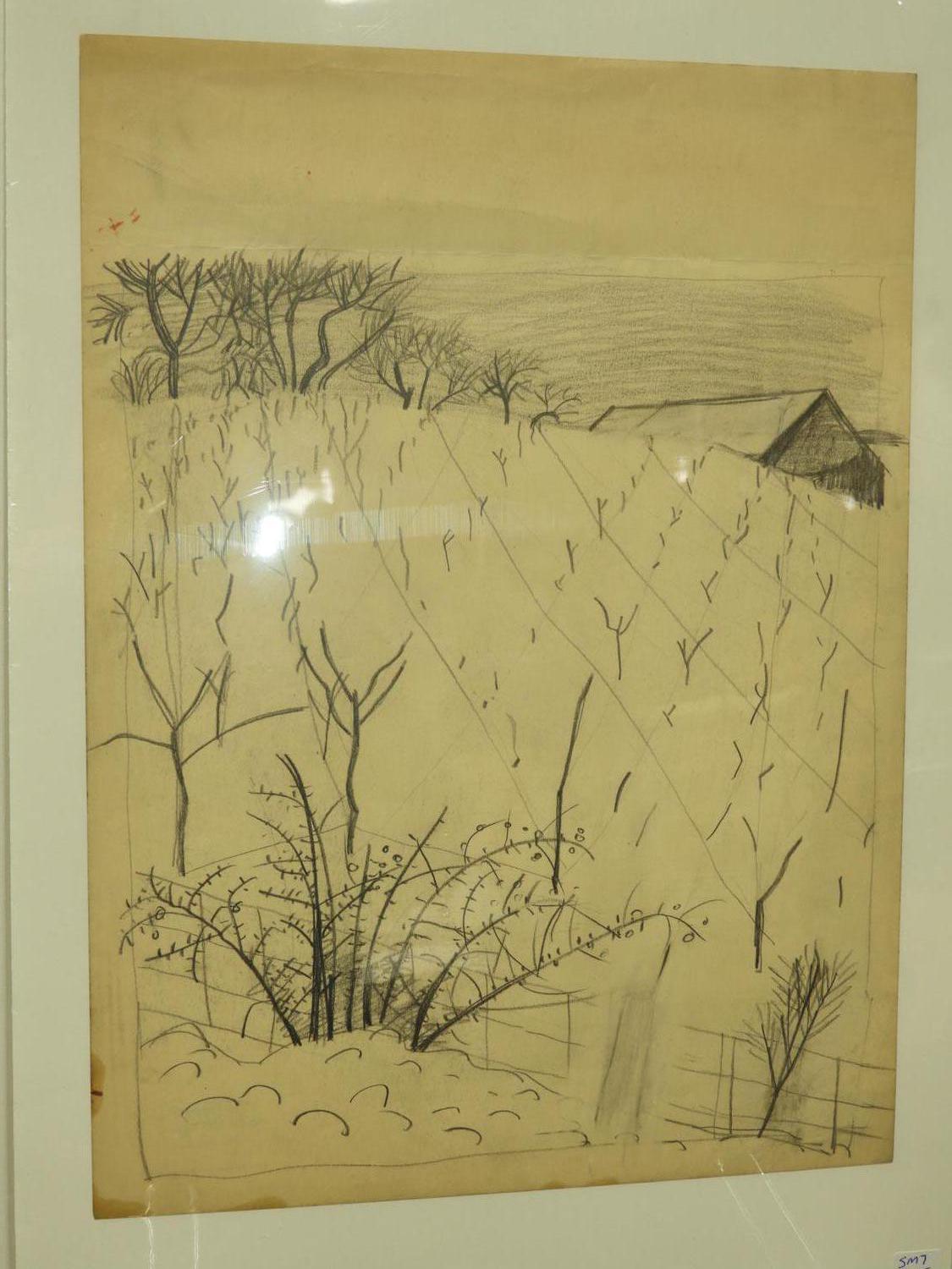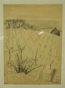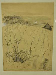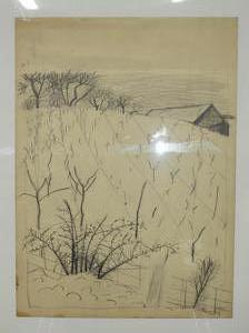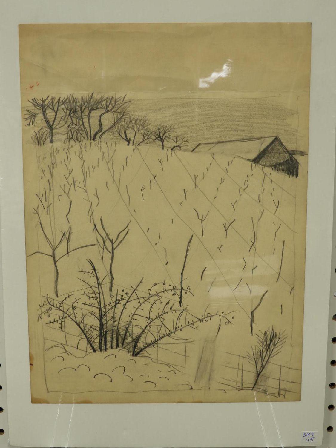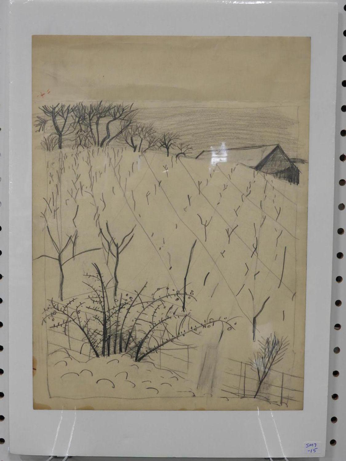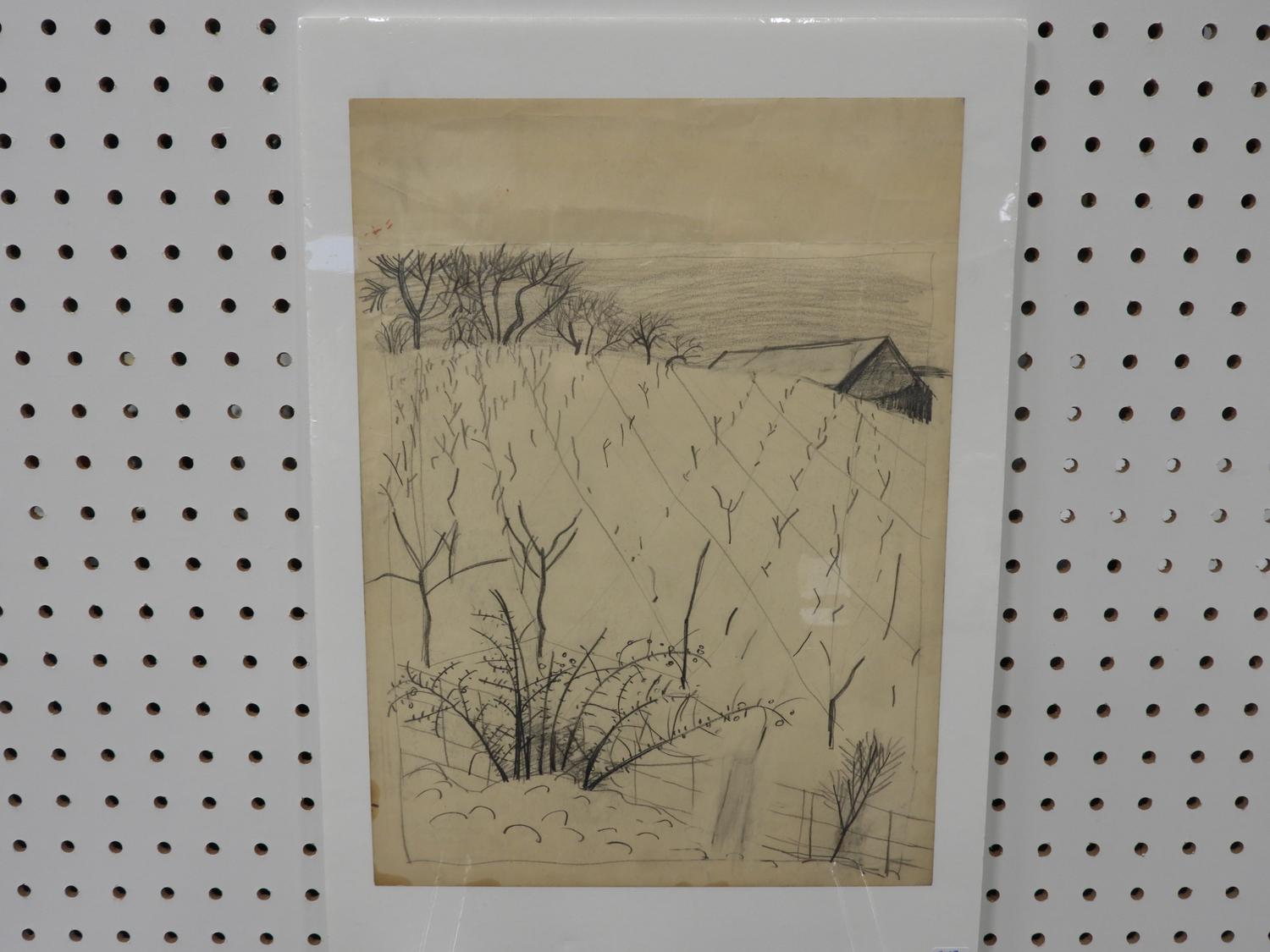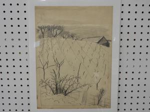 isabel grace mclaughlin(1903-2002), drawing, 15" x 11", "farm landscape"