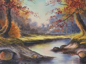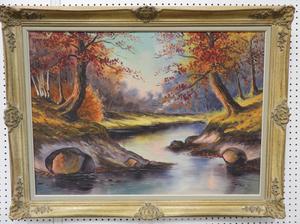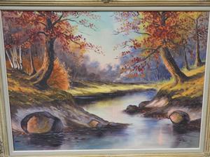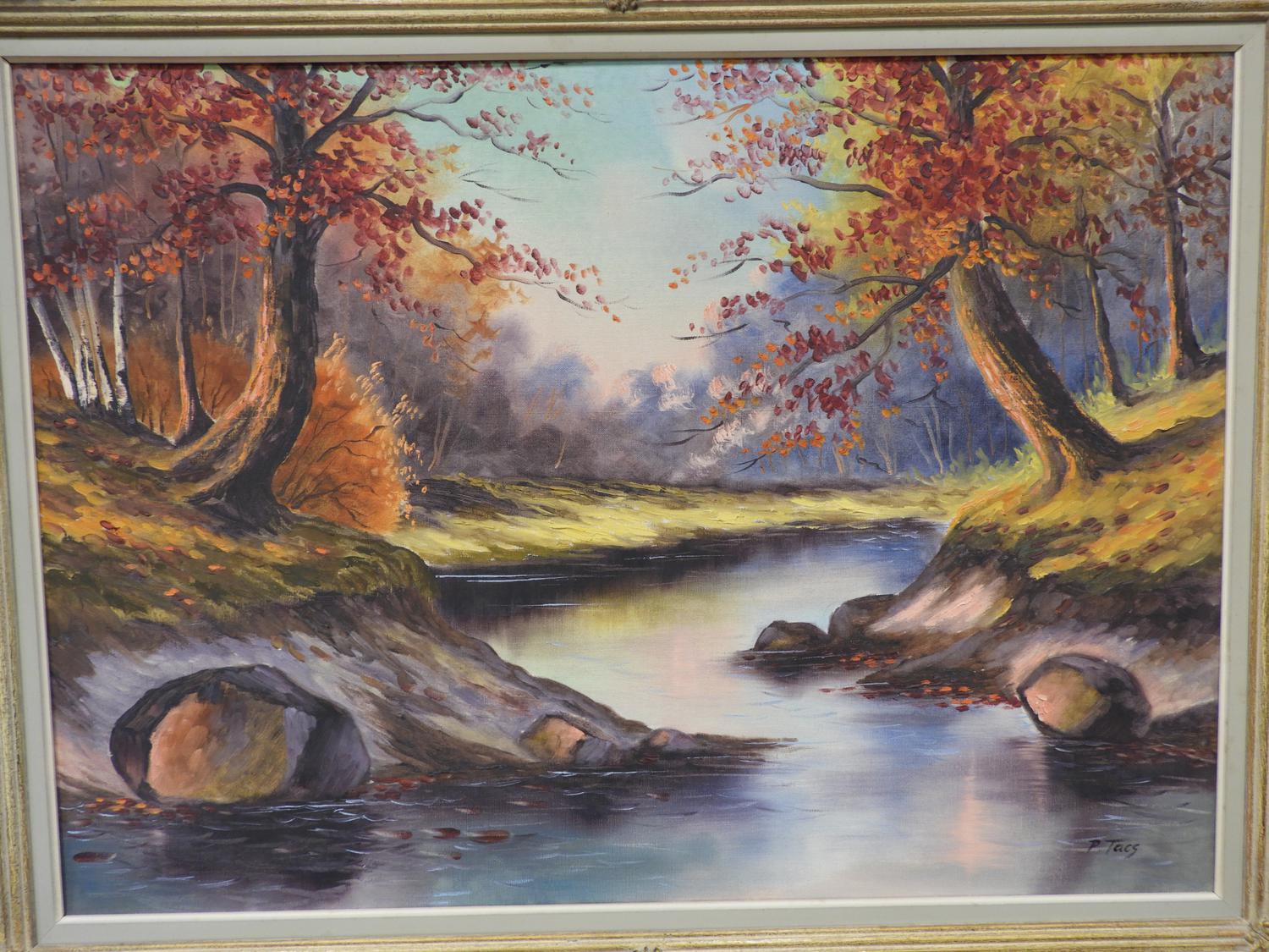 indistinctly signed oil on canvas, 26" x 36", "landscape"