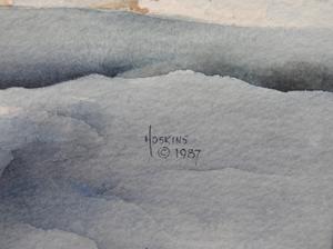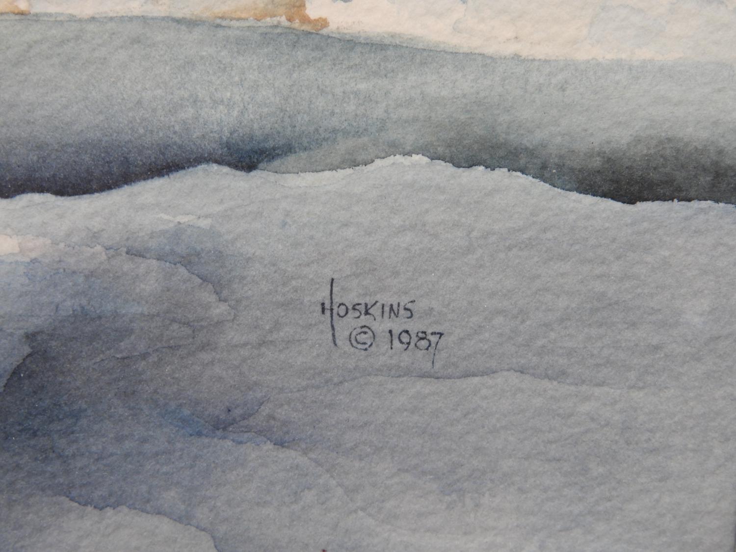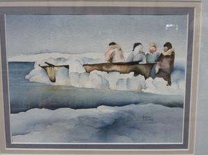hoskins, d.1987, watercolour, 7 3/4" x 5 3/4", "inuit fishing"