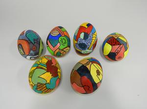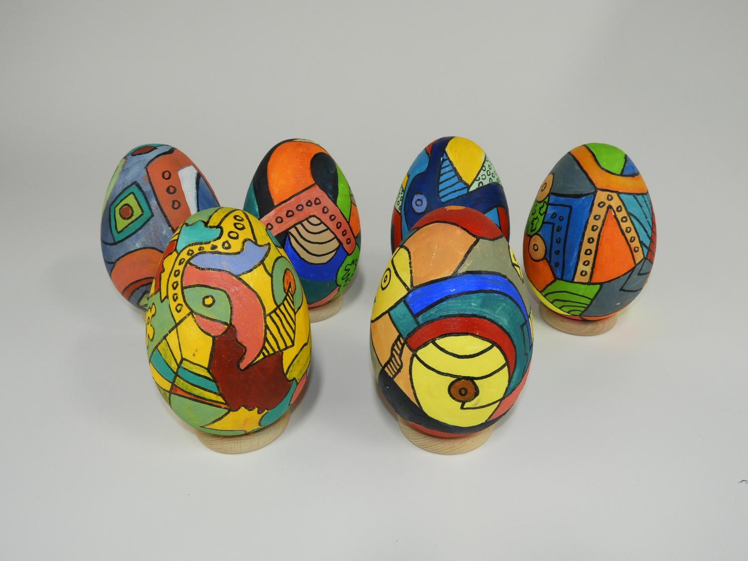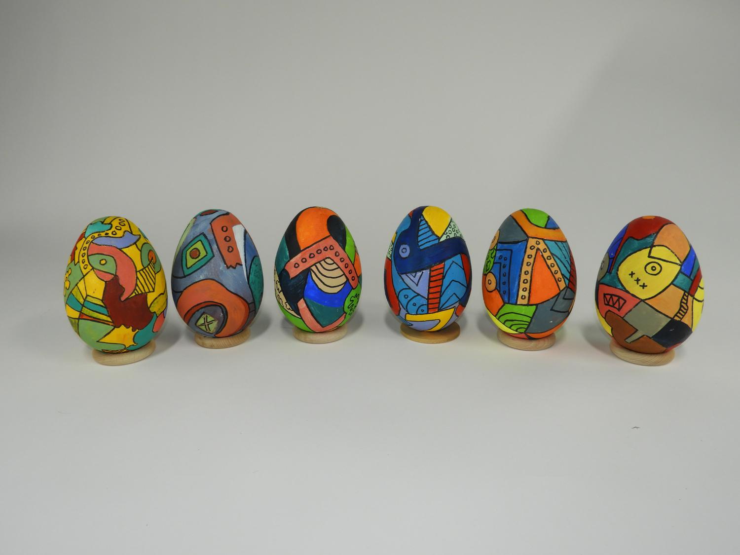 gaston petit, acrylic on shaped foam, ht. 6 1/2", "eggs"
