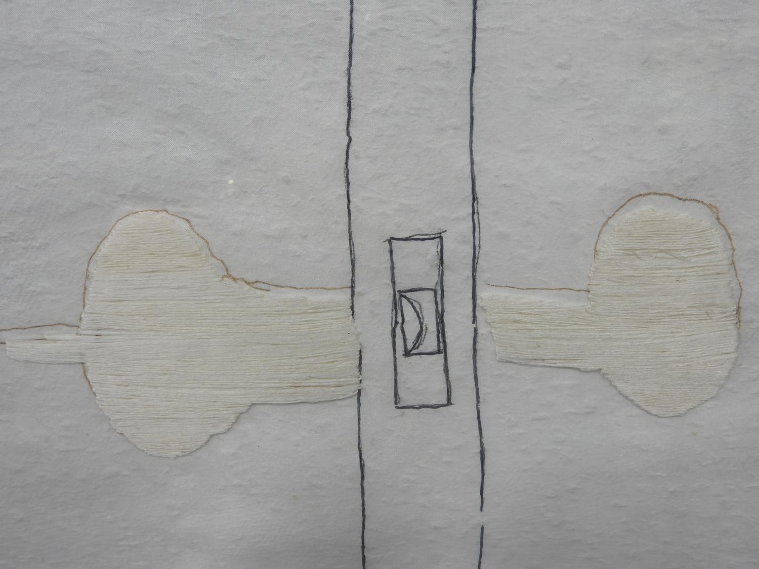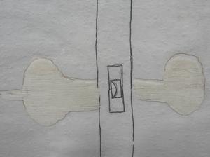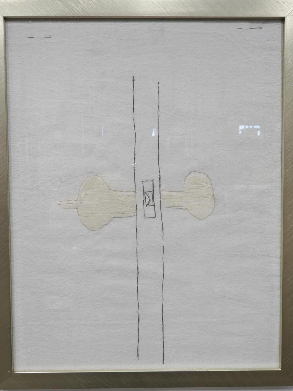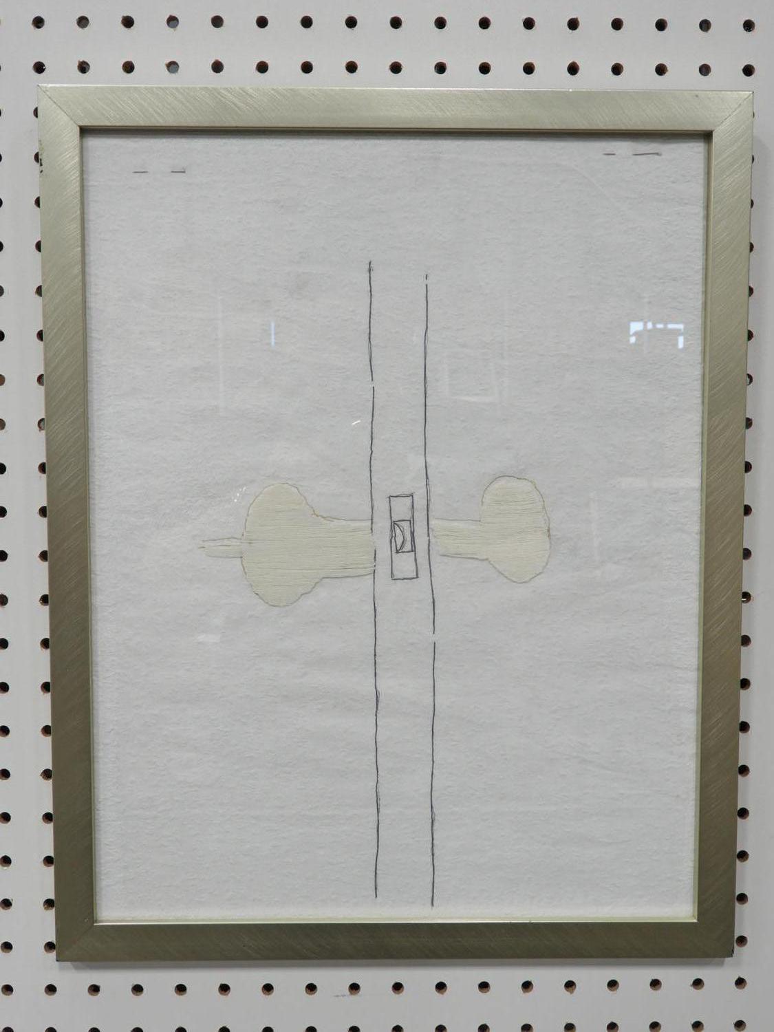 kei takemura (b.1975-), pencil and sheer thread mixed media, 18" x 14", "m.s.'s doorknob"