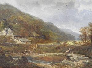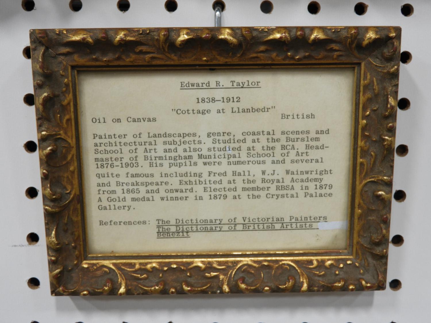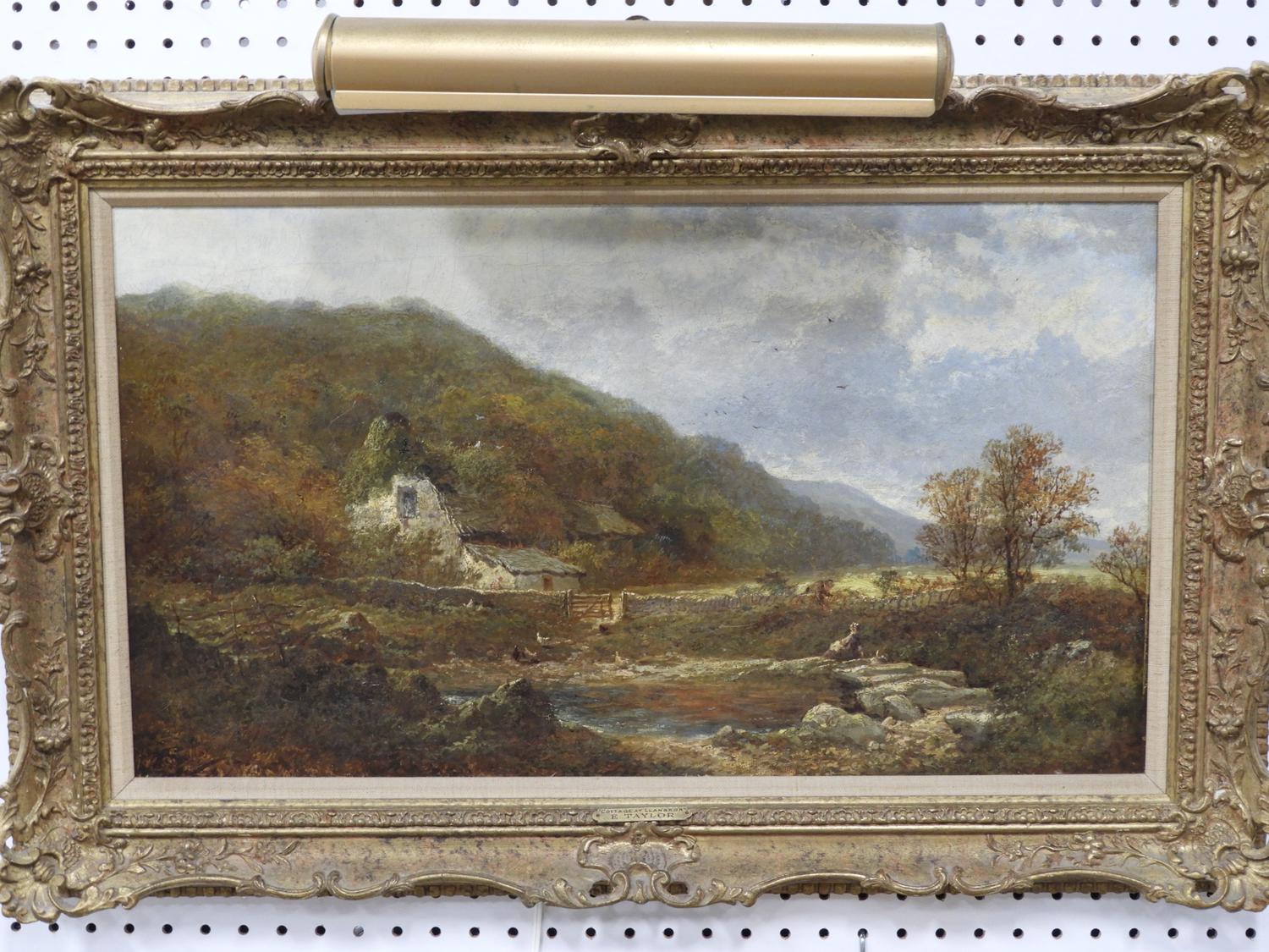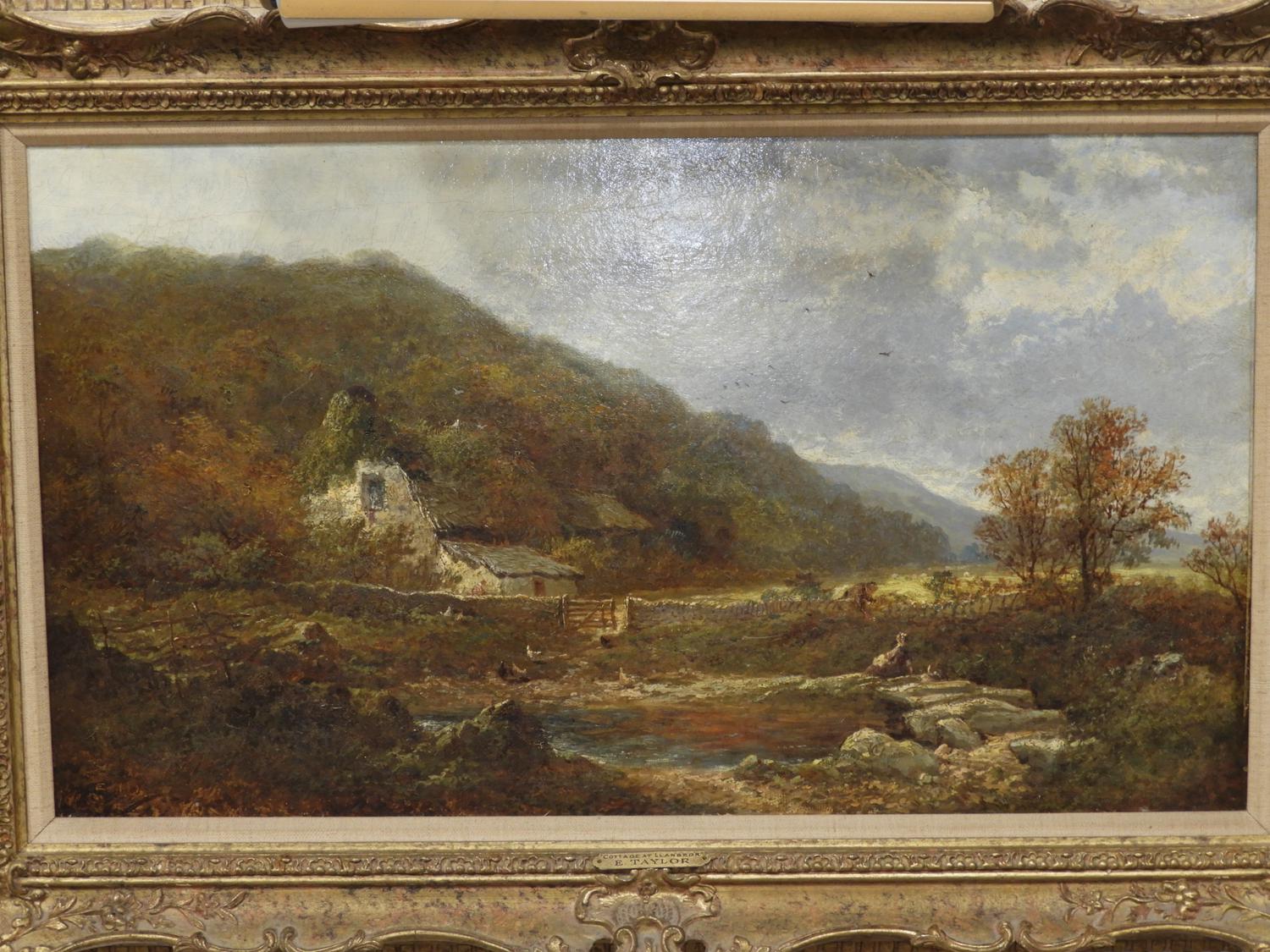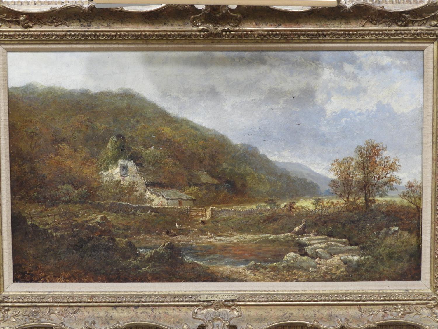 edward richard taylor (1838-1911), oil on canvas, 15" x 26", "cottage at llanbedr"
