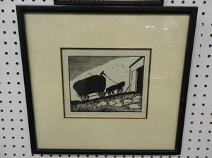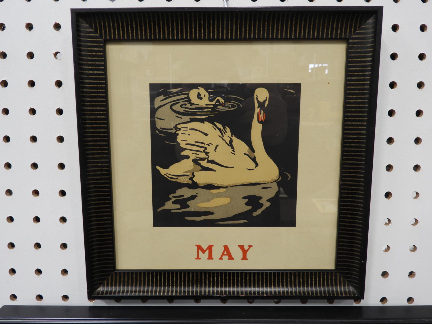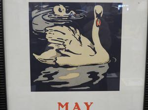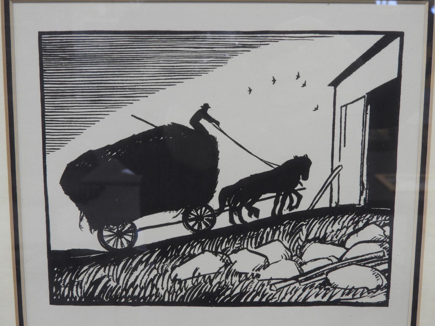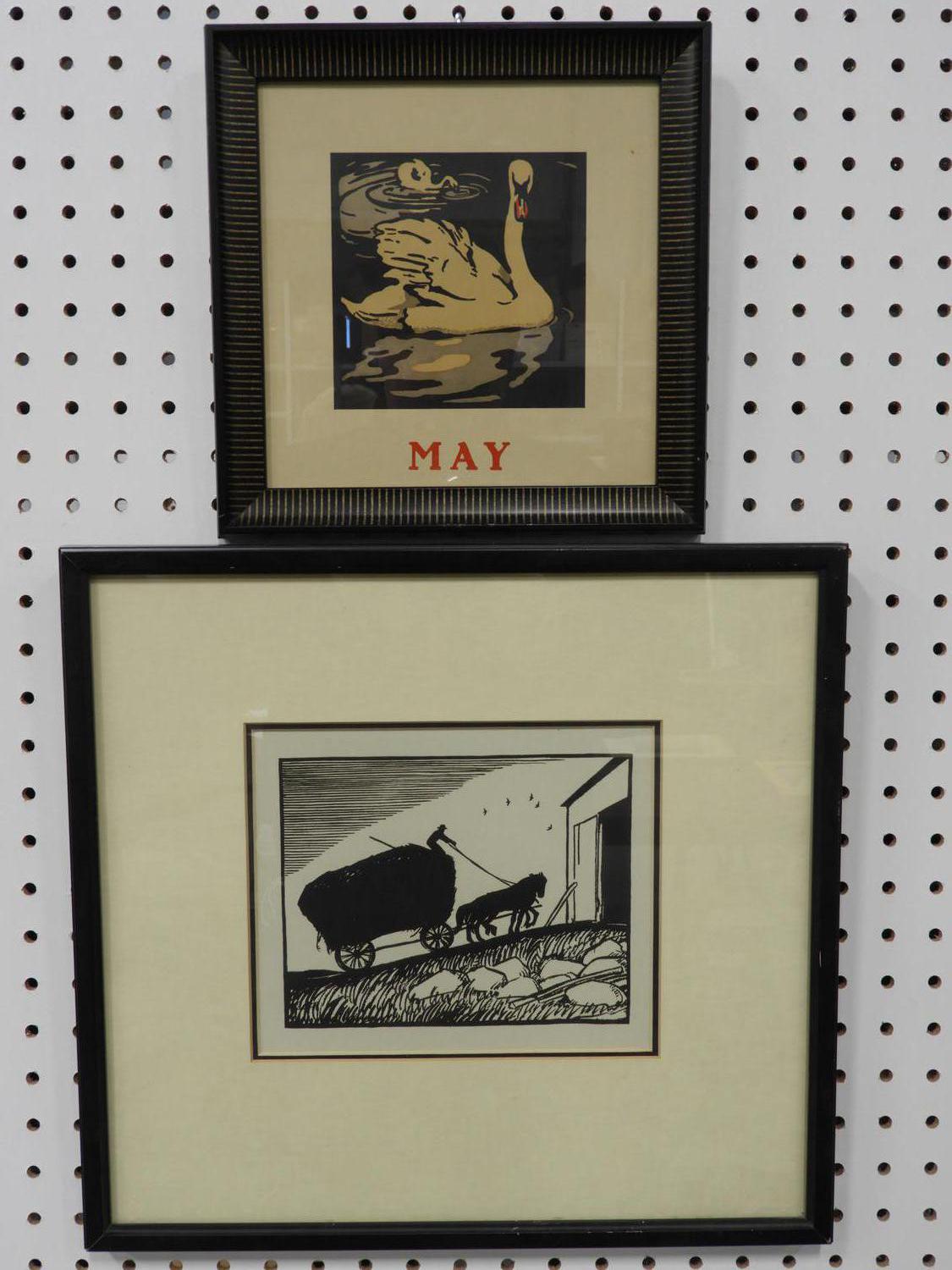threau macdonald (1901-1989), woodcut, 5" x 7", "harvest" together with another print "may - swans"