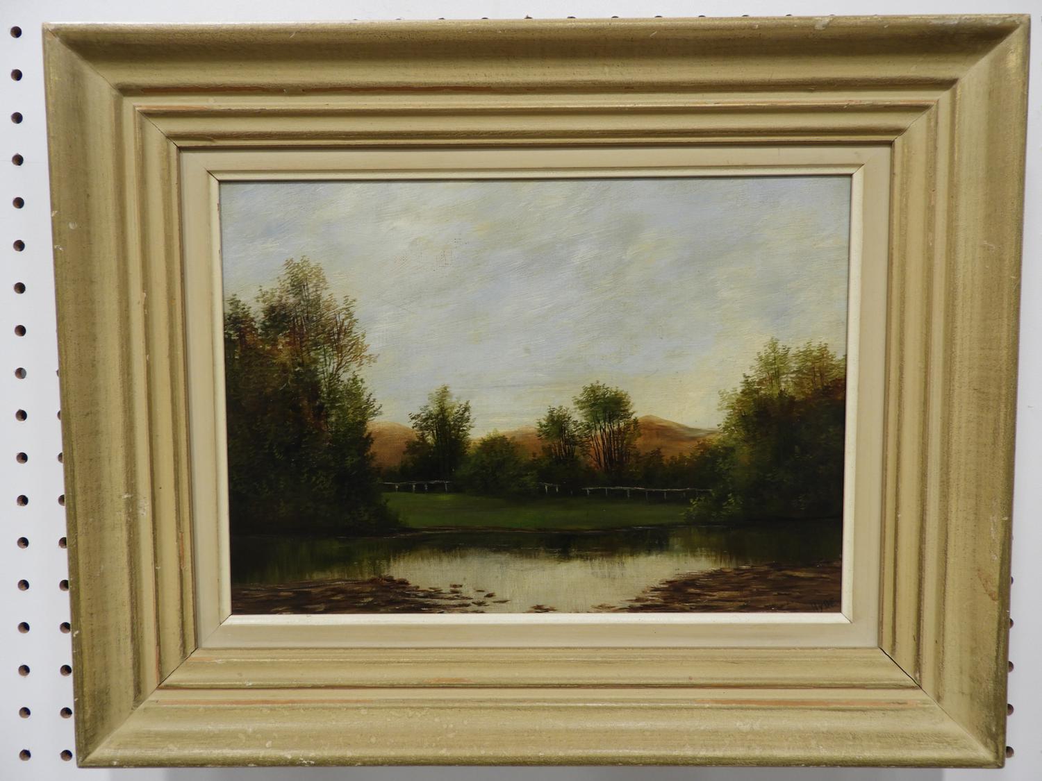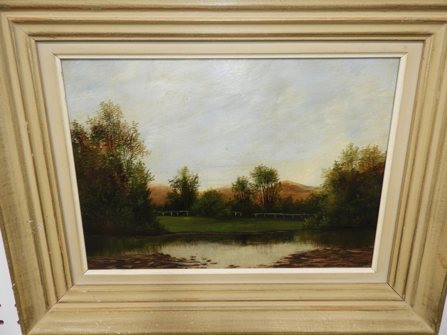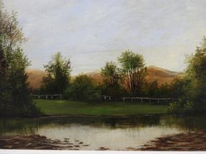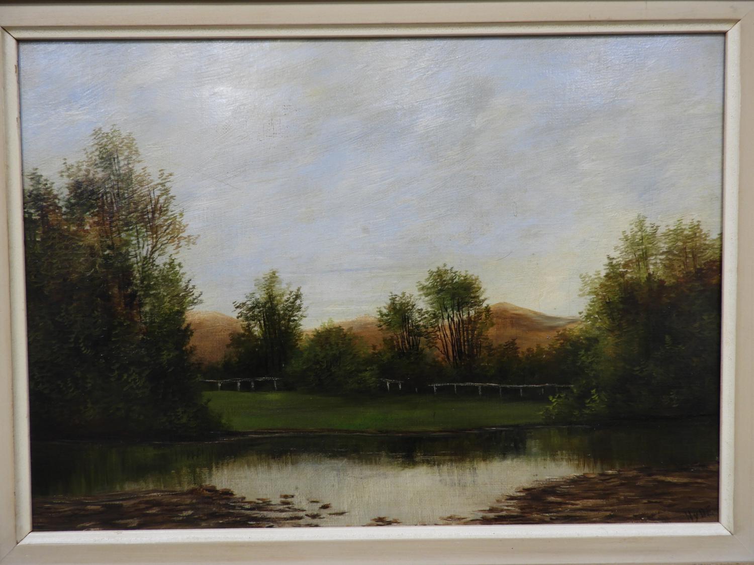 hyde, oil on canvas, 10" x 14", "landscape with pond"