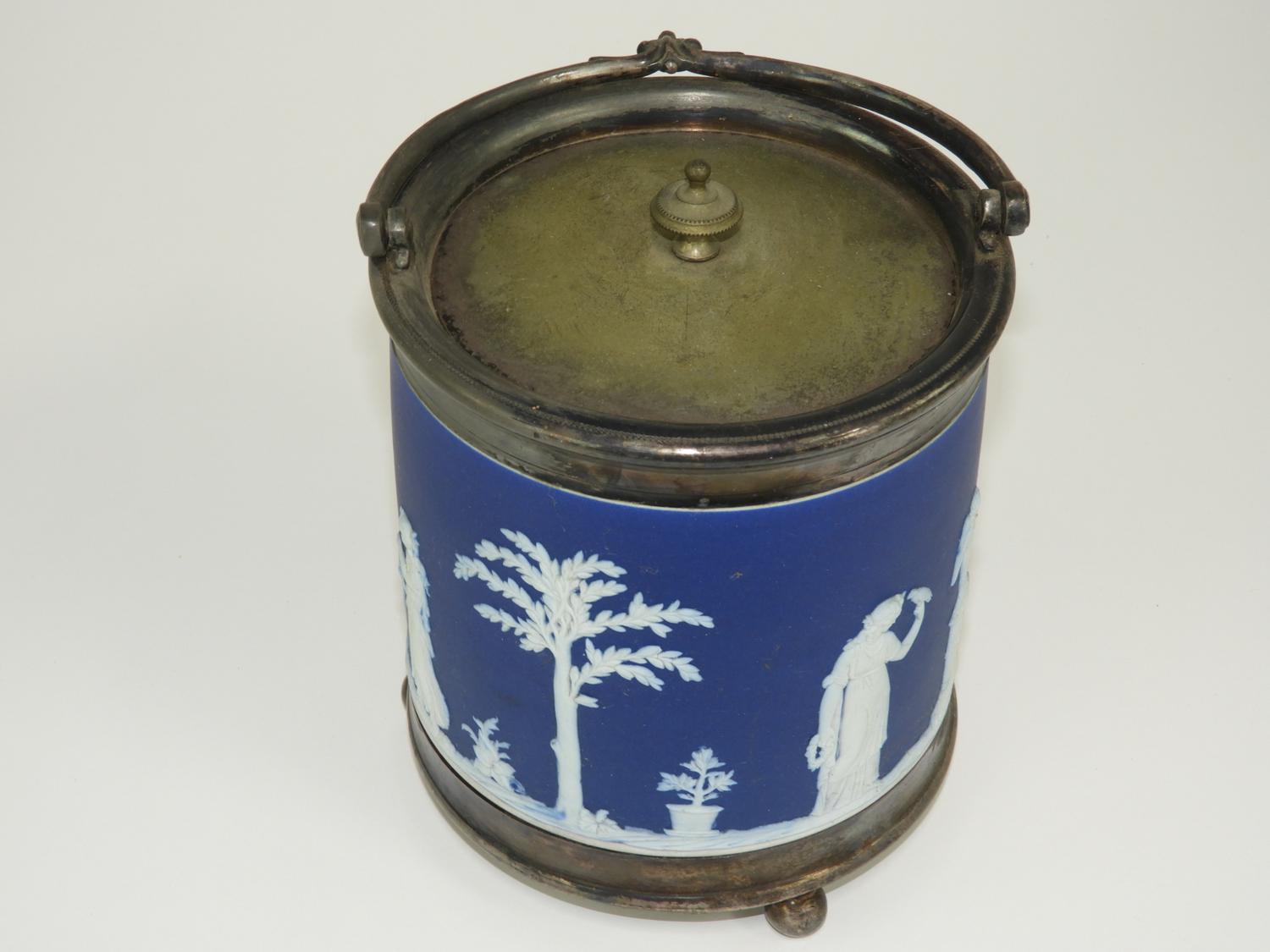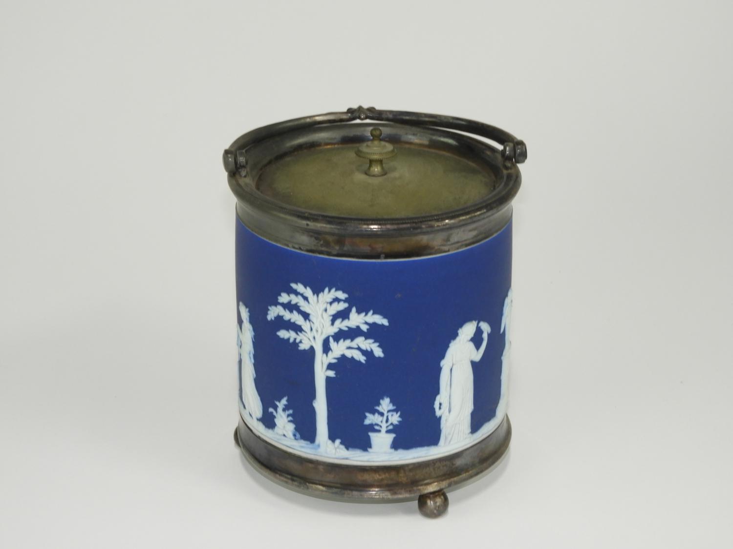 wedgwood jasperware biscuit barrel, ht 9 1/2"