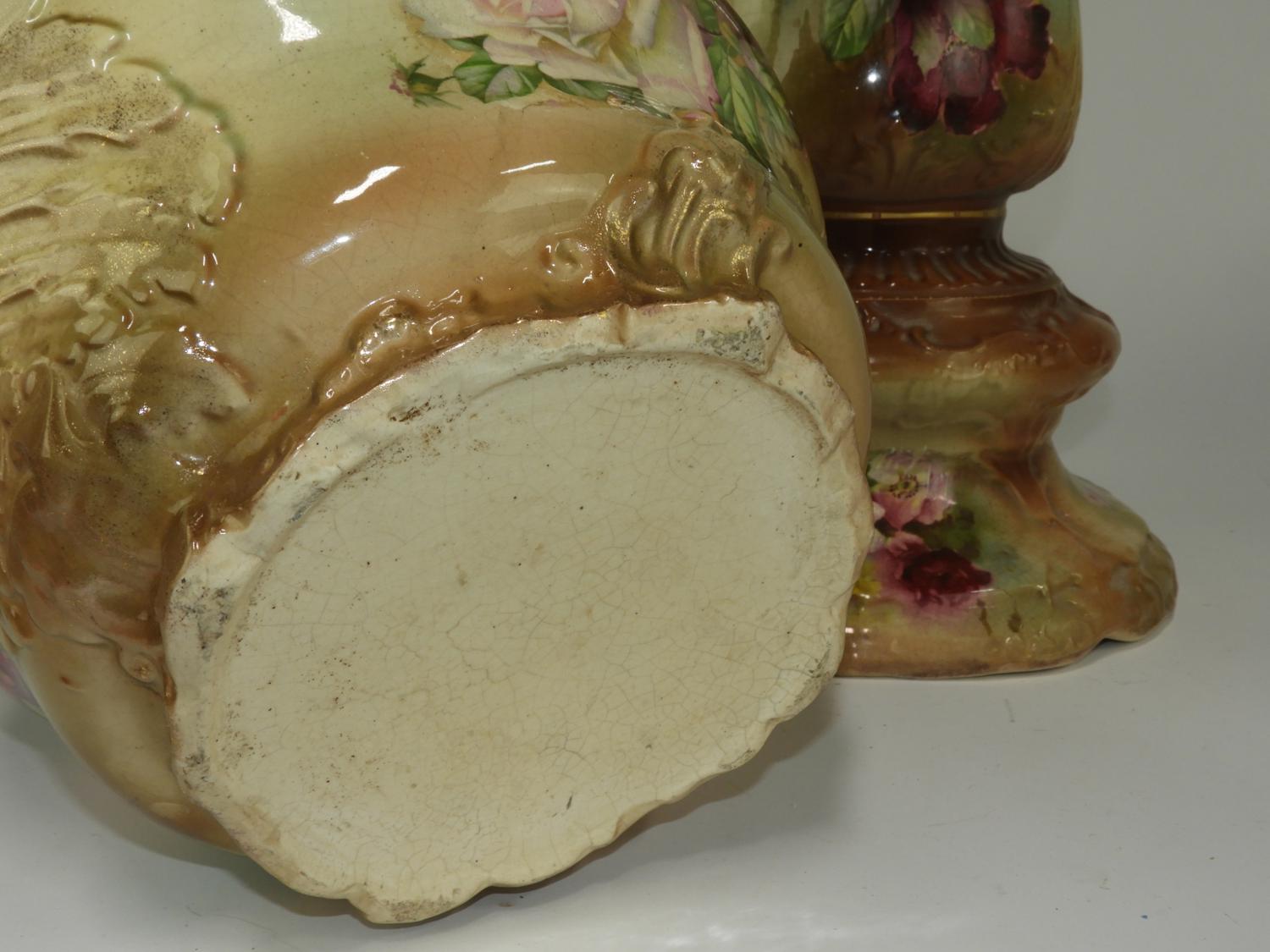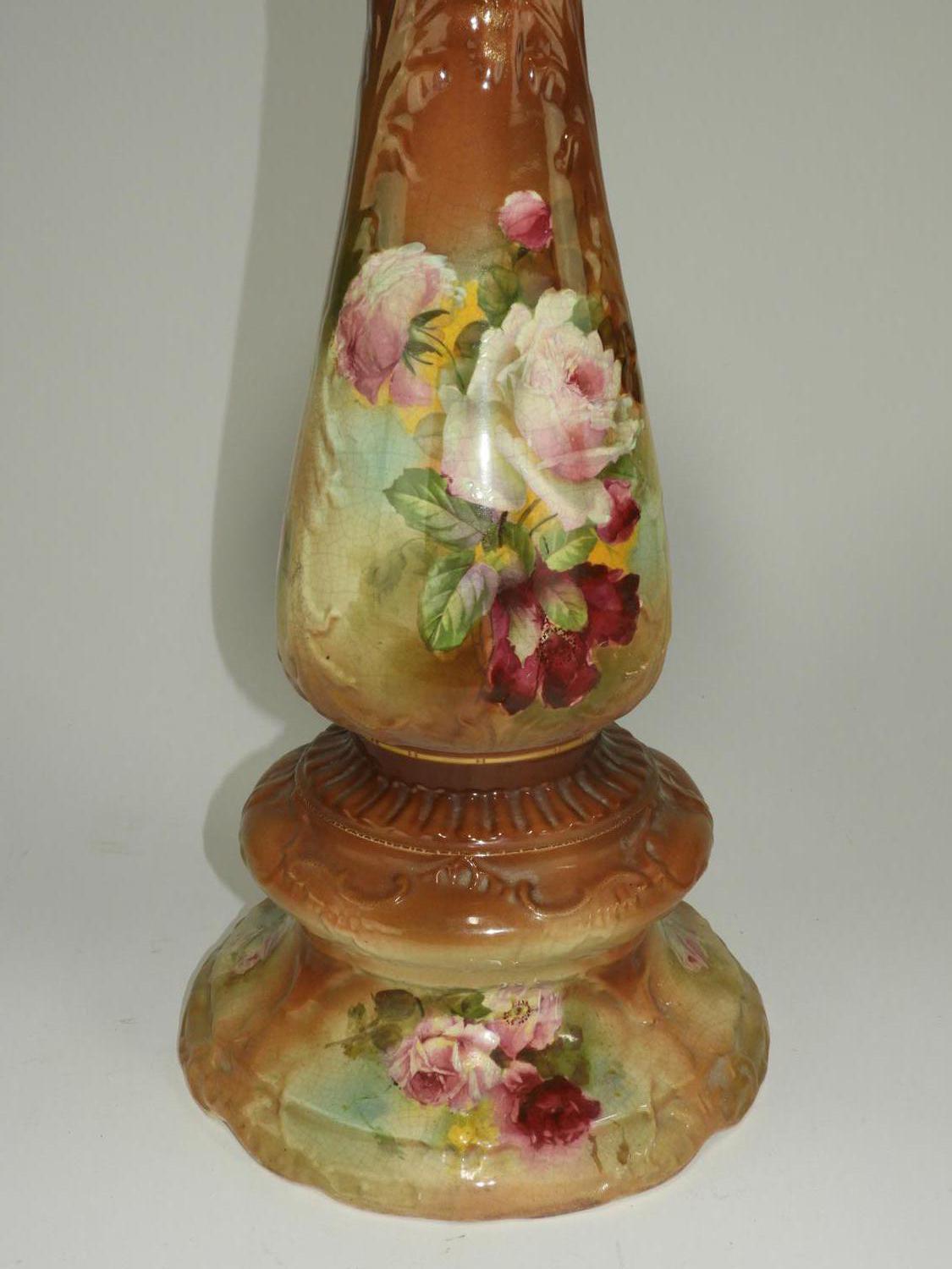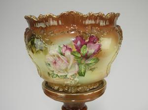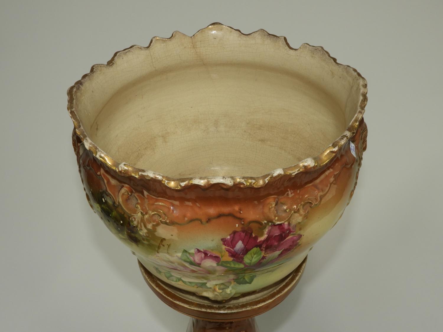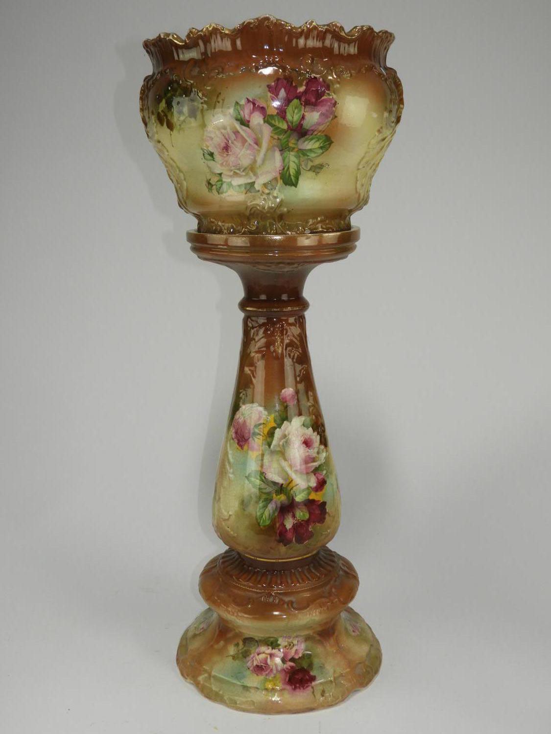 english hand painted jardiniere on stand, ht. 32 1/2"