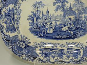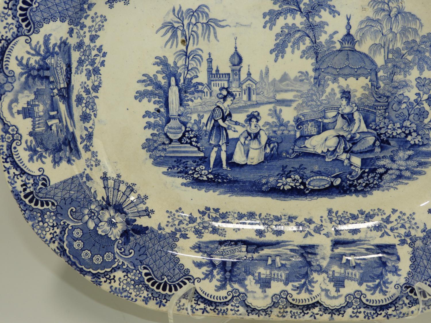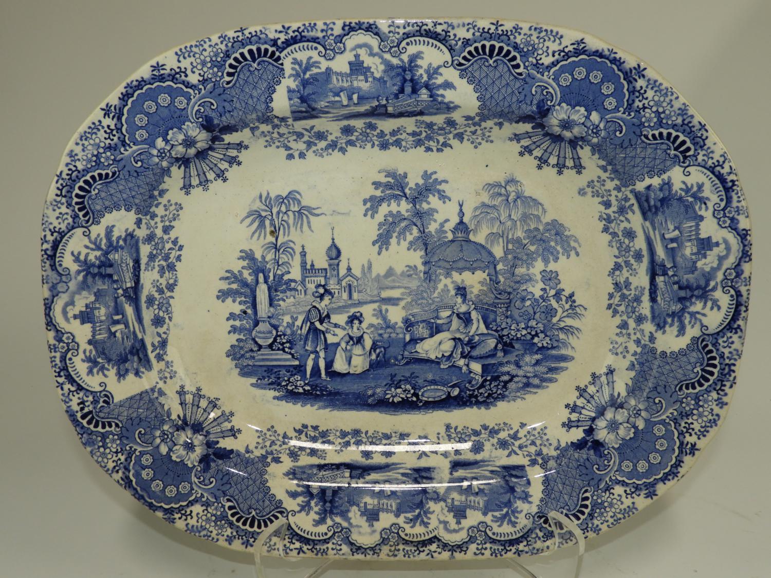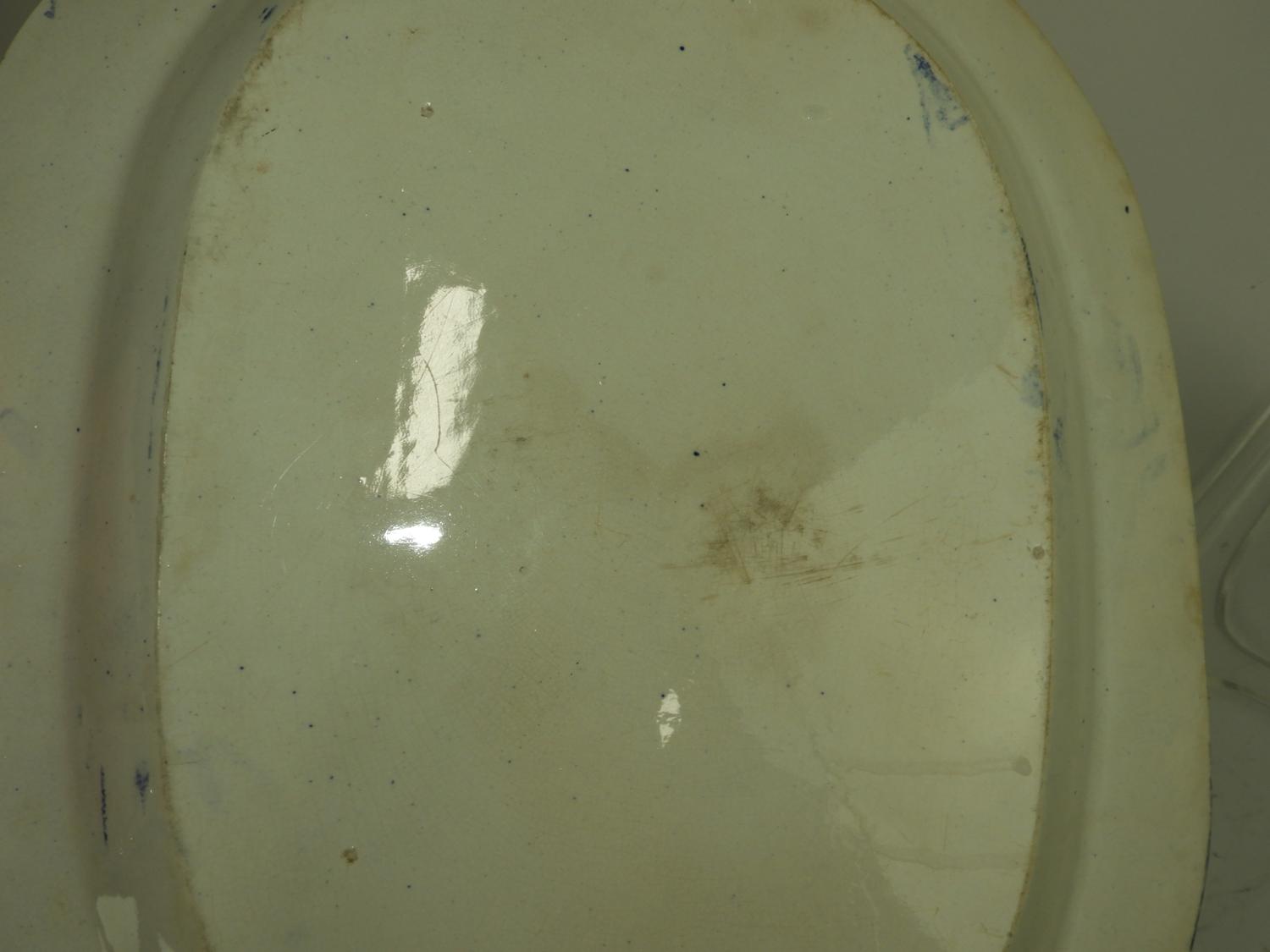 blue and white transfer print ironstone platter, 16" x 12 1/2"