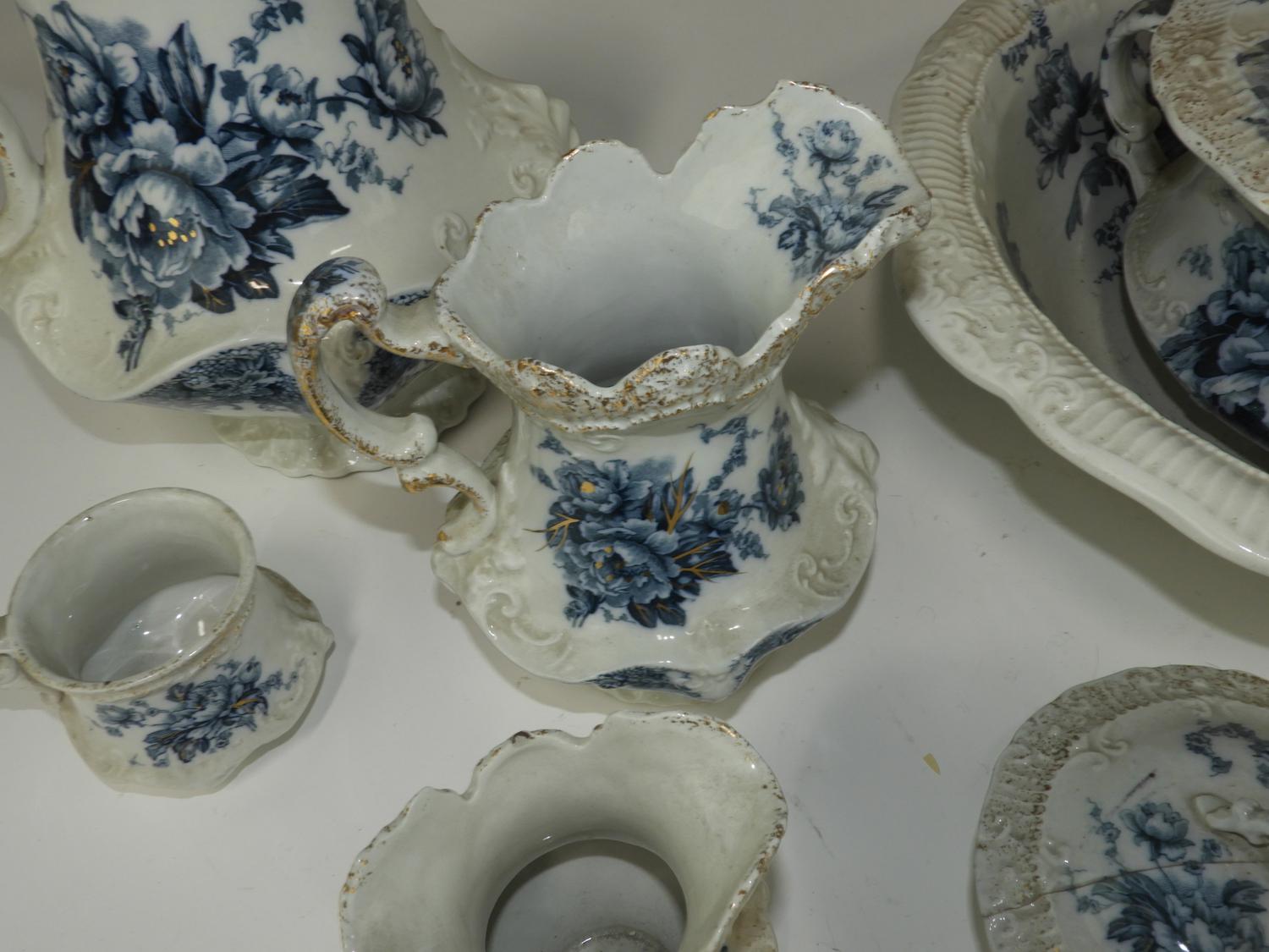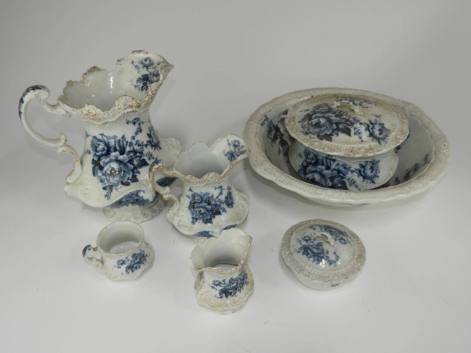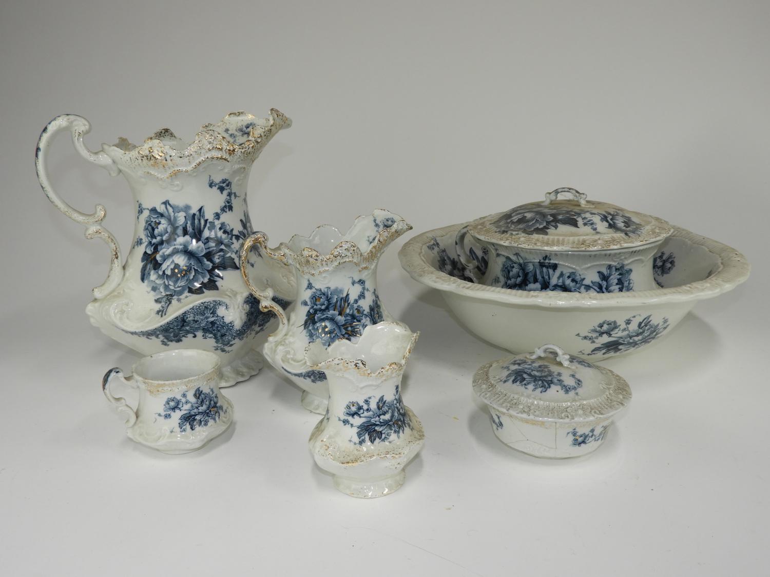 nine piece burslem transfer print wash set