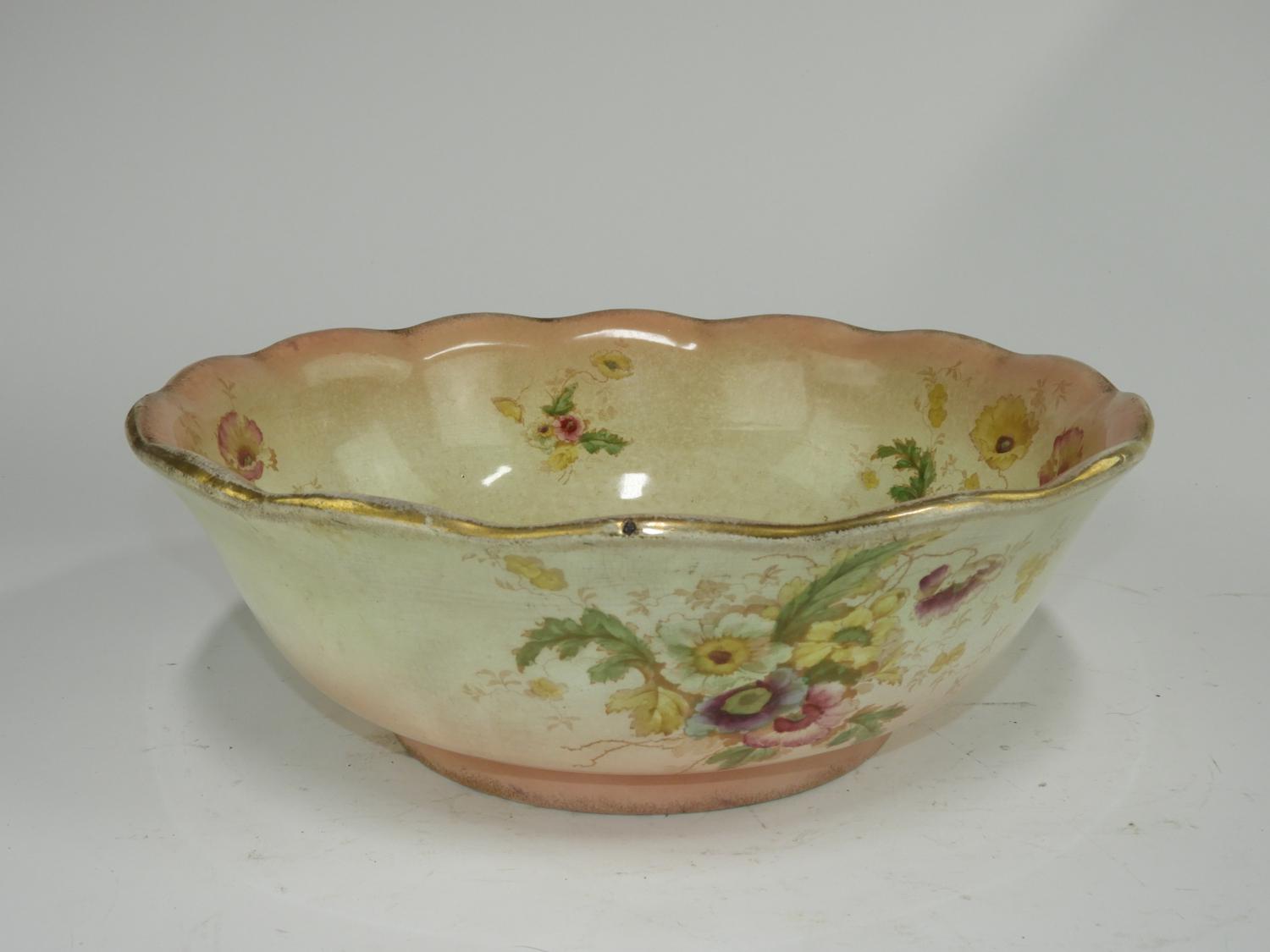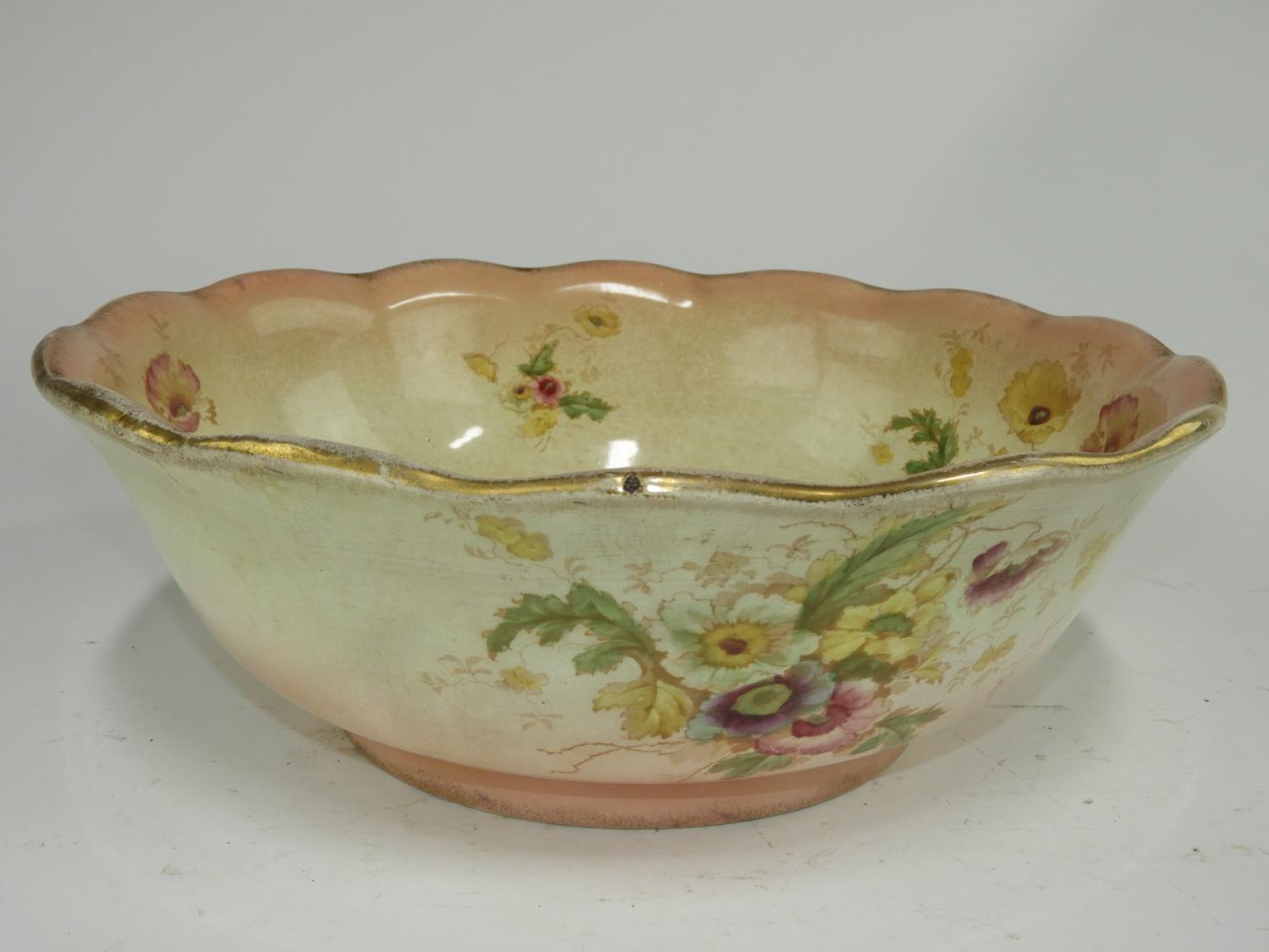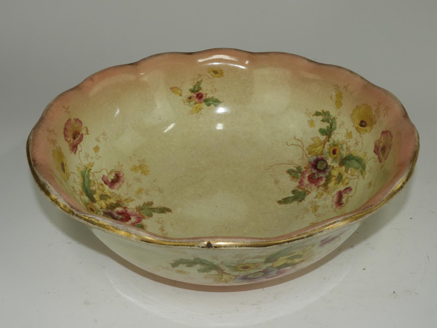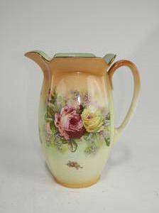 wash basin and pitcher with floral decoration, ht. 12"