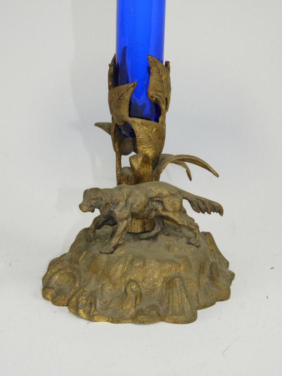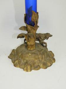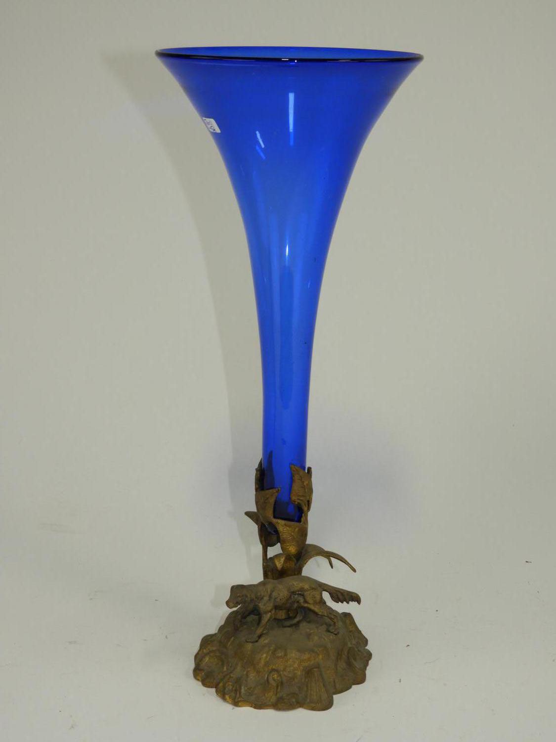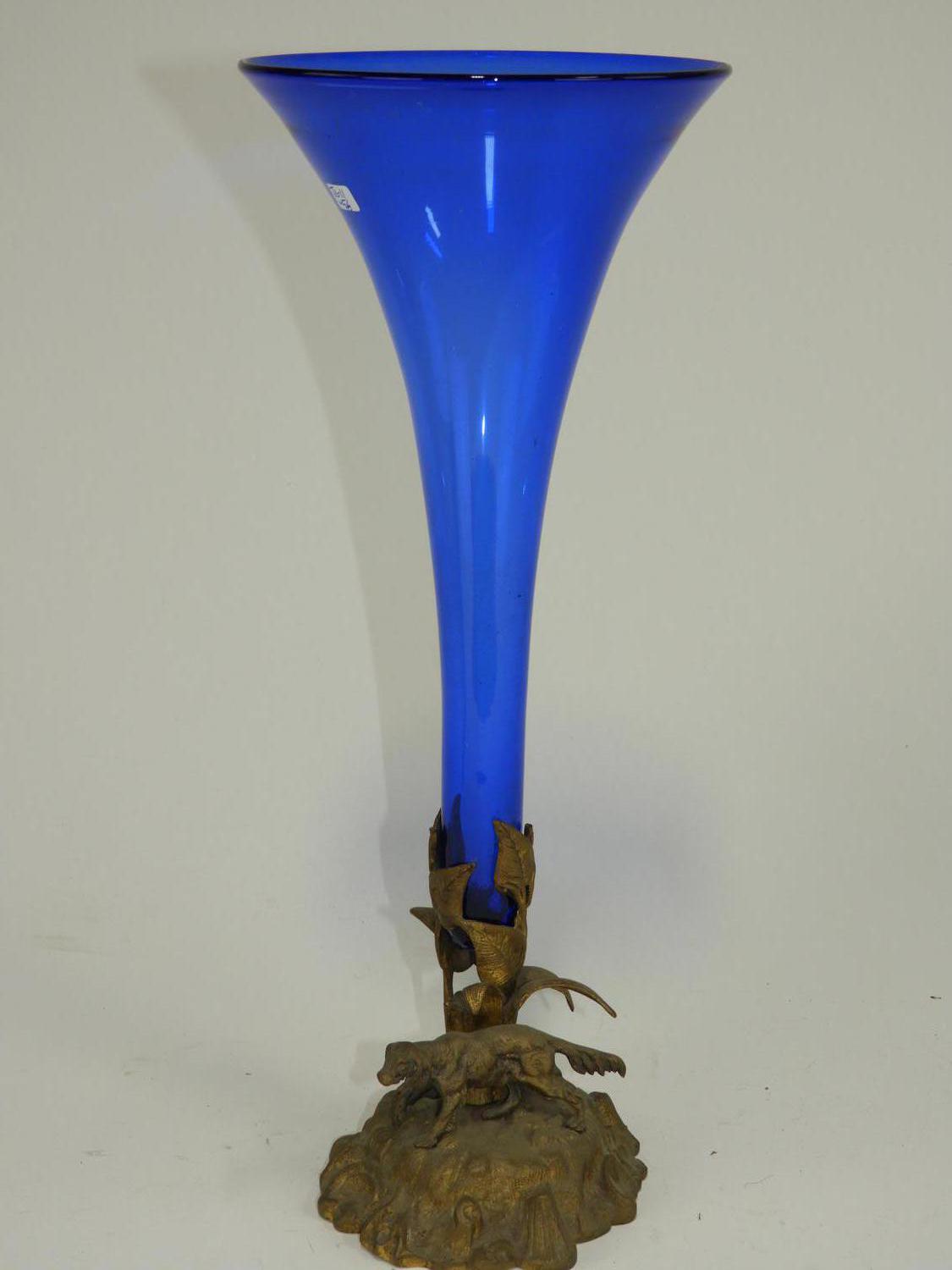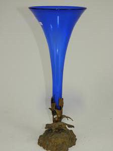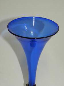cobalt glass vase on stand, ht 15 3/4"