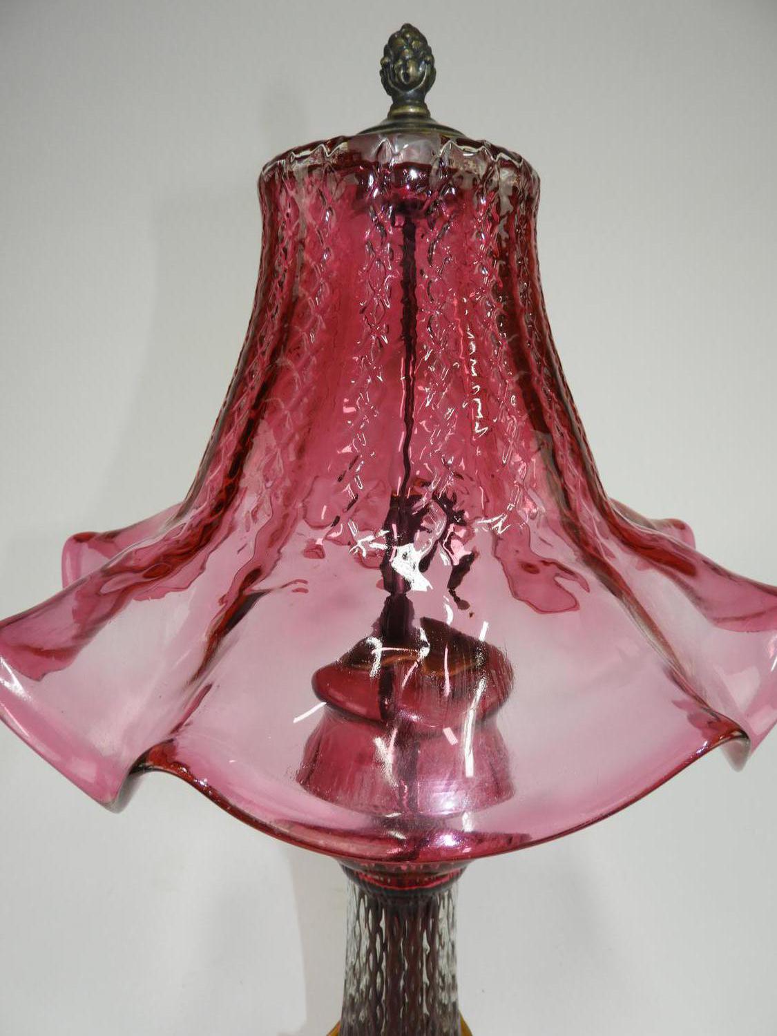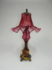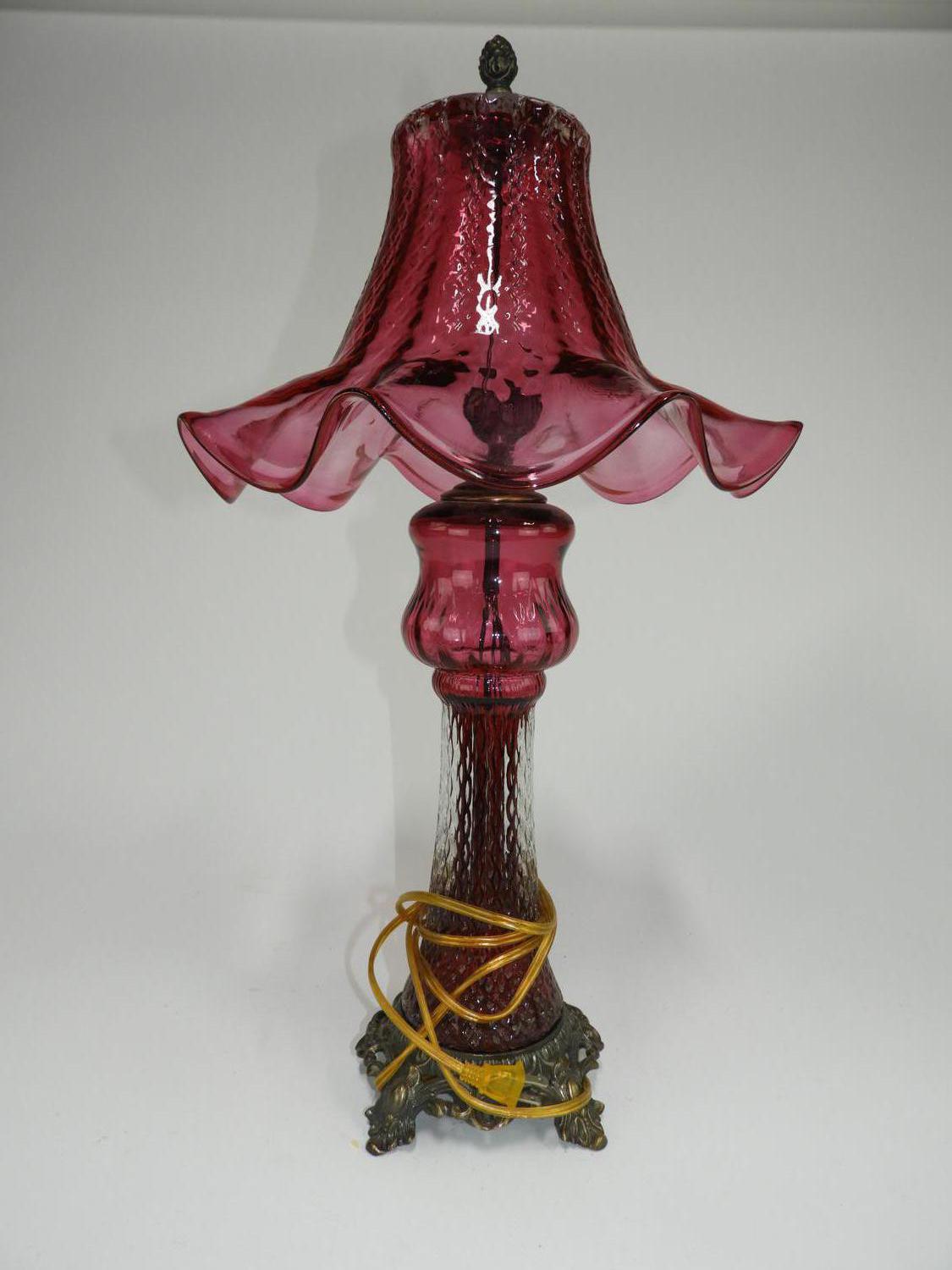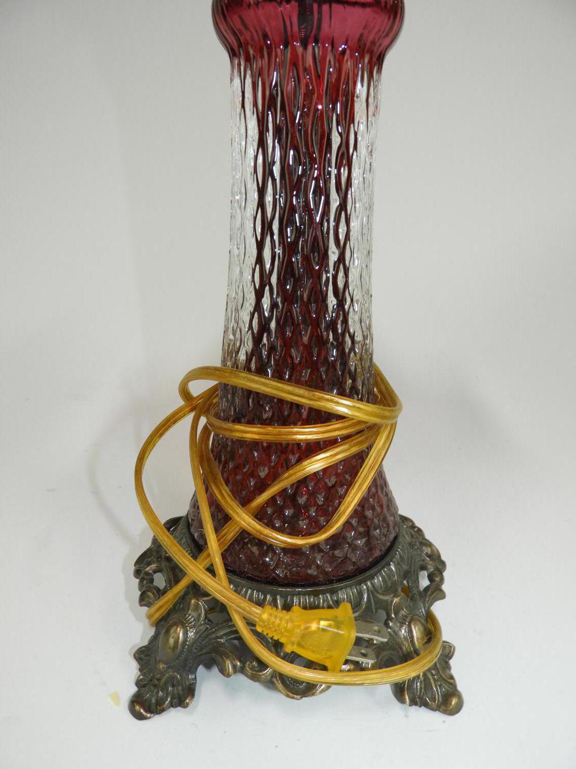 ruby glass gilt metal mounted table lamp, ht. 26"