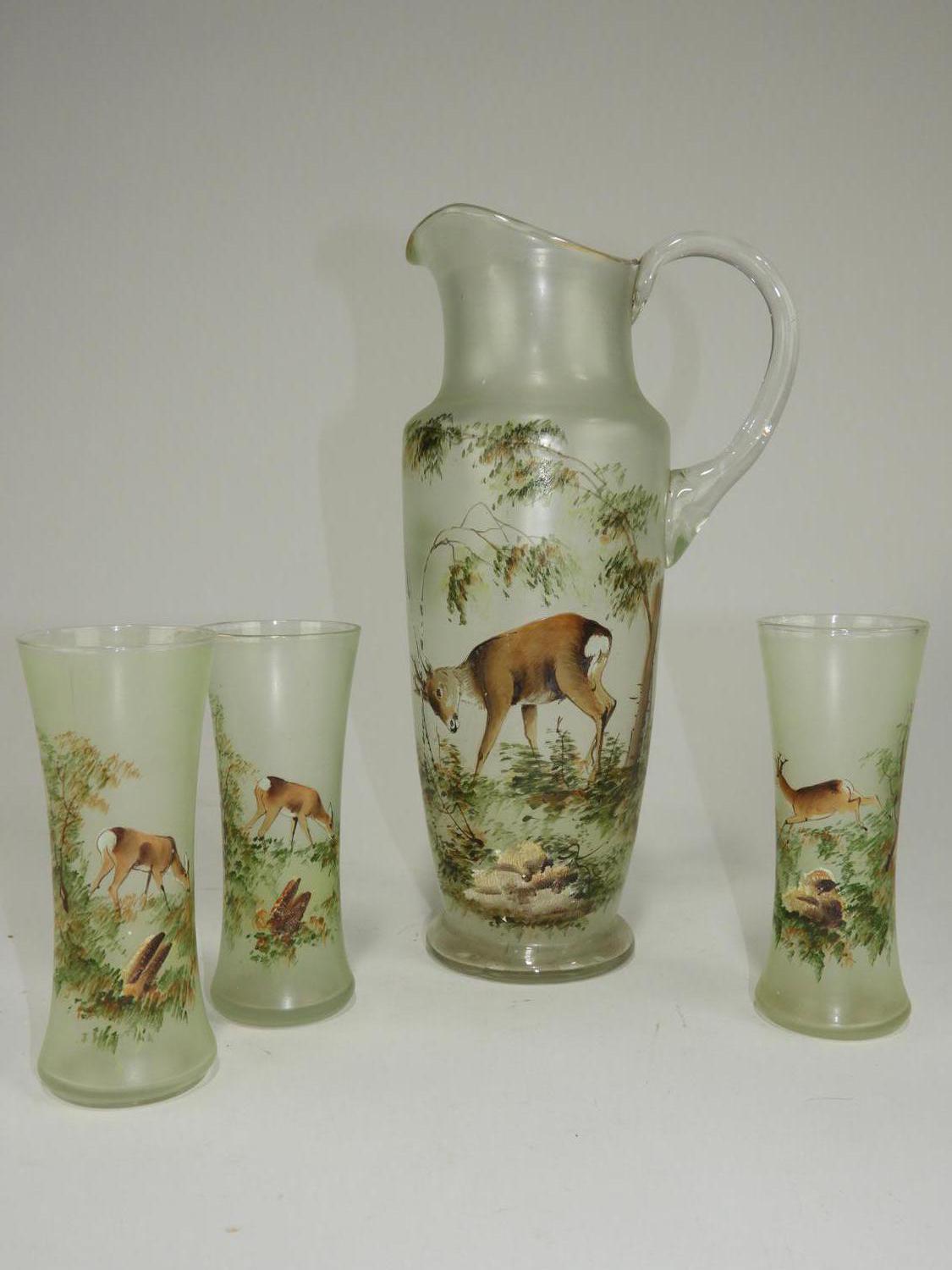 four piece lemonade set, pitcher and three glasses, ht. 13"