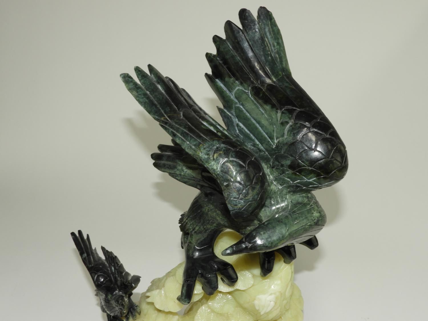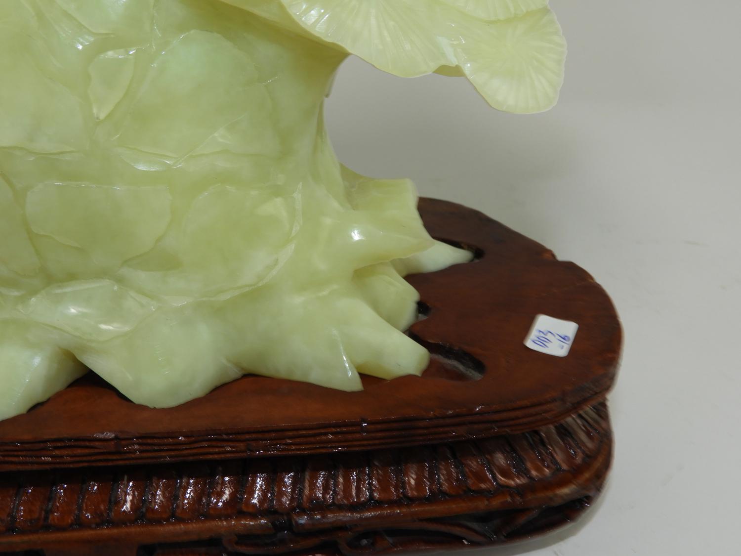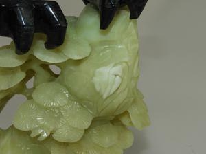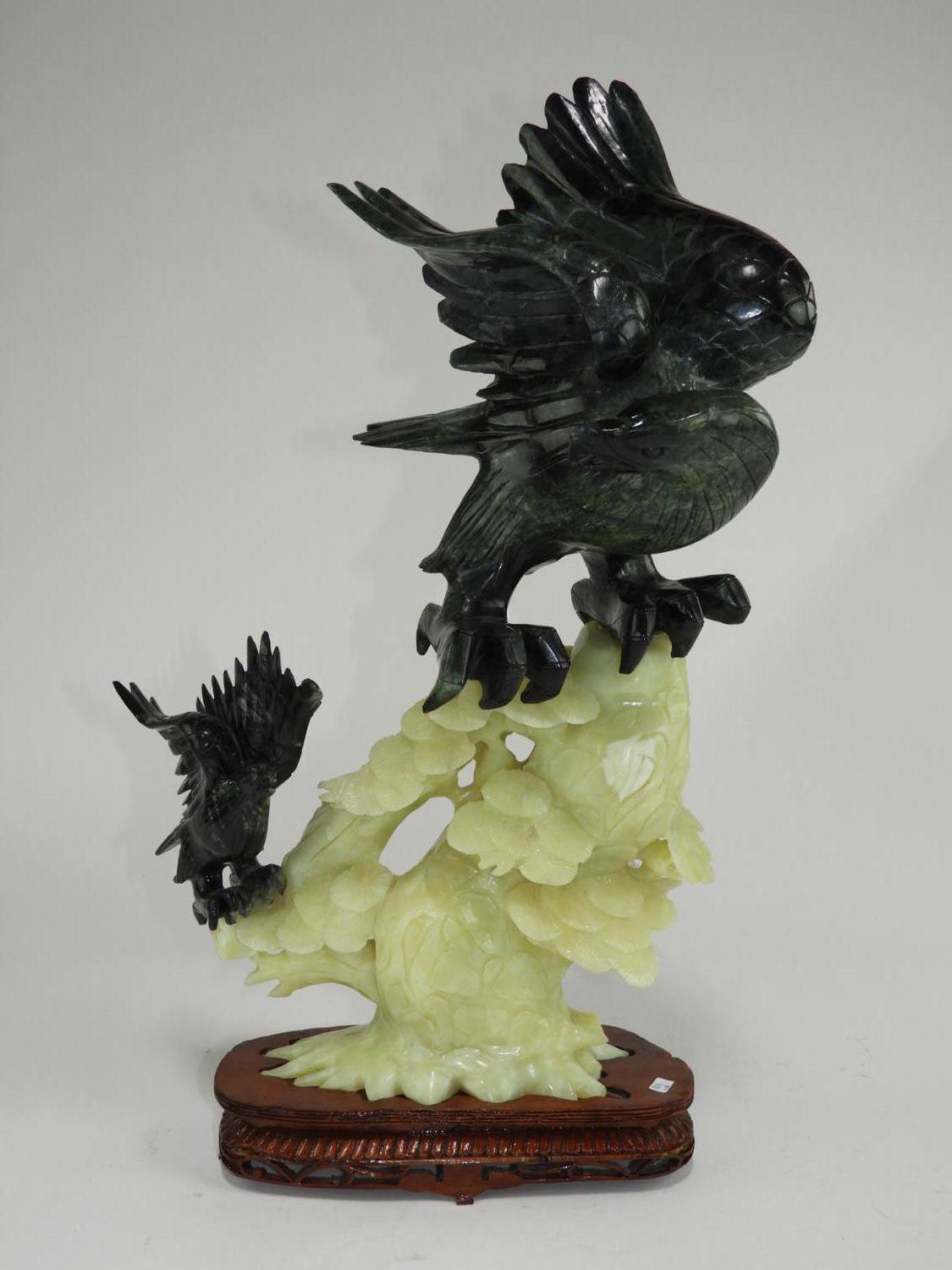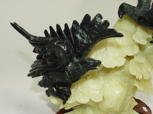 large chinese carved hardstone bird group on stand, 22 1/2" x 14" x 10"