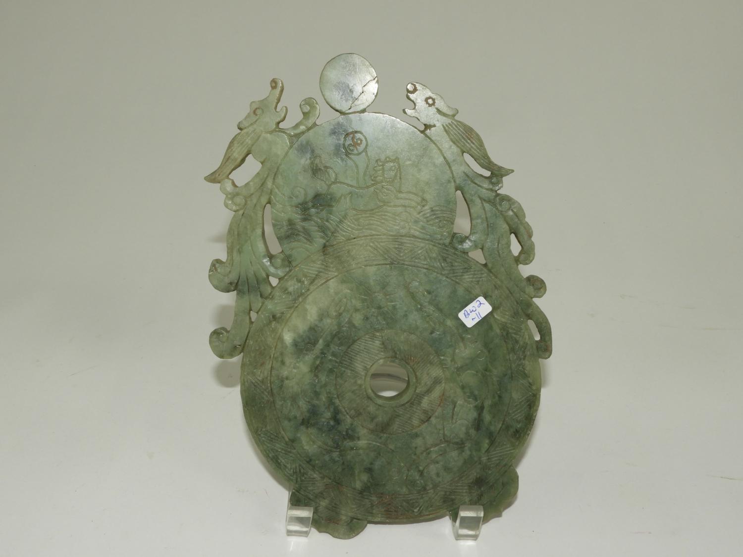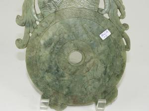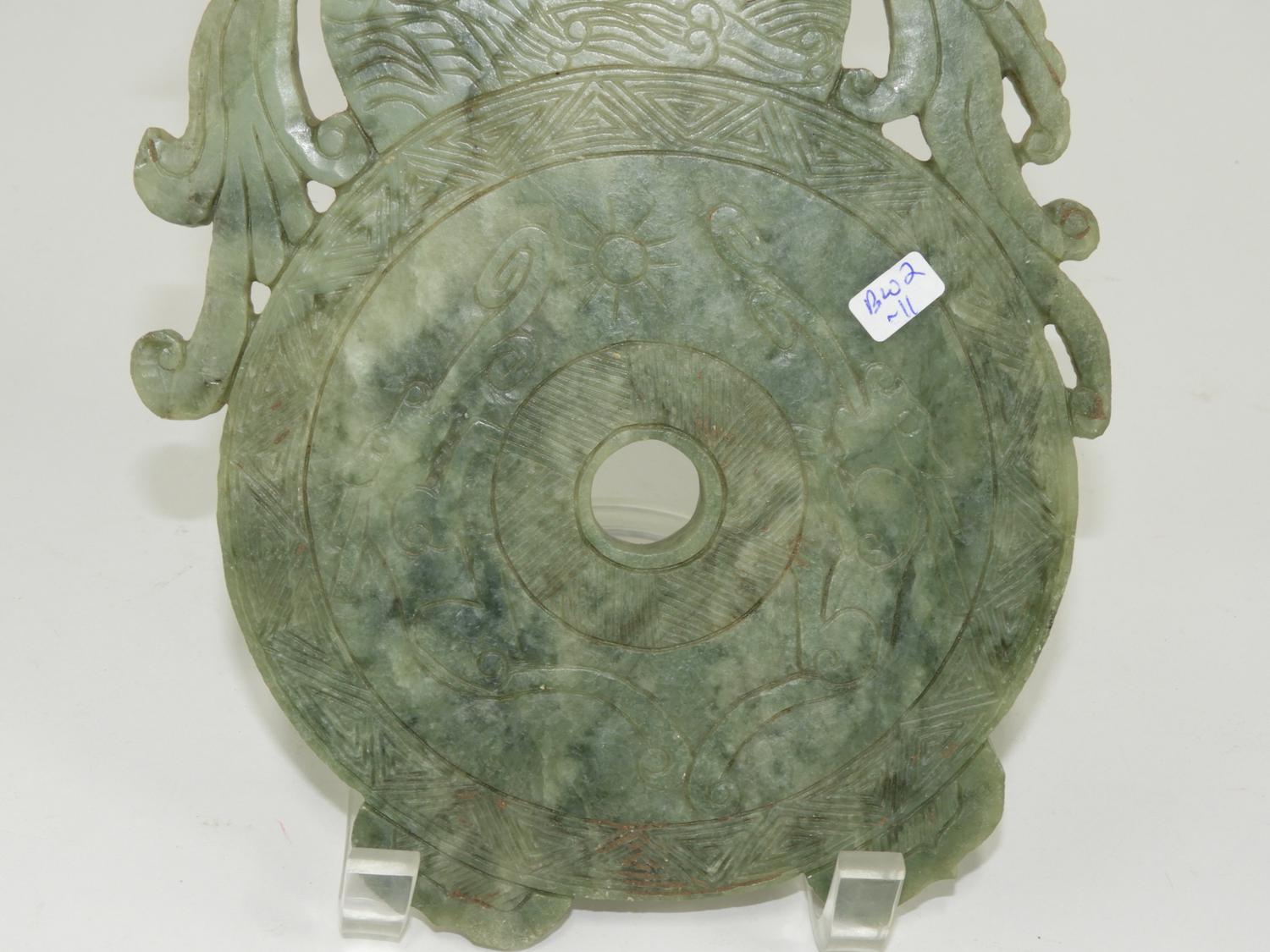 chinese carved bi-disc decorated with dragons, 10" x 7"