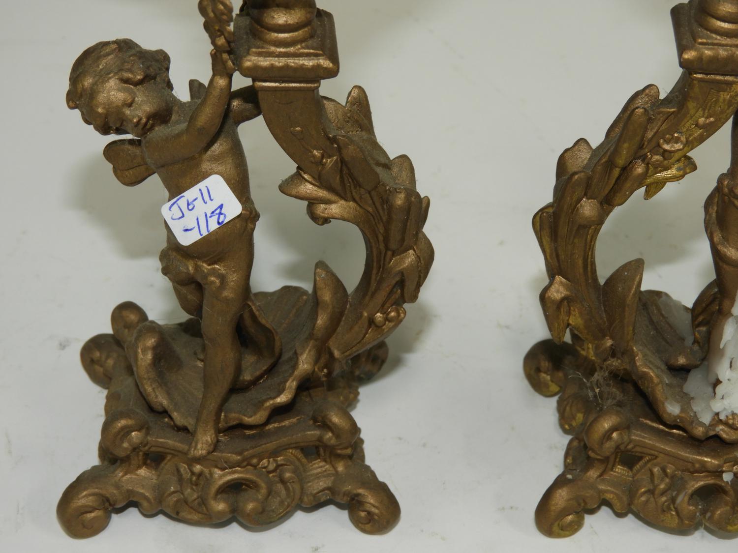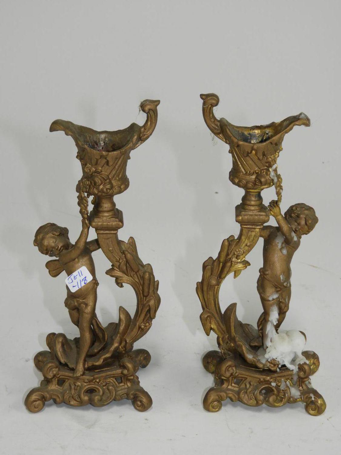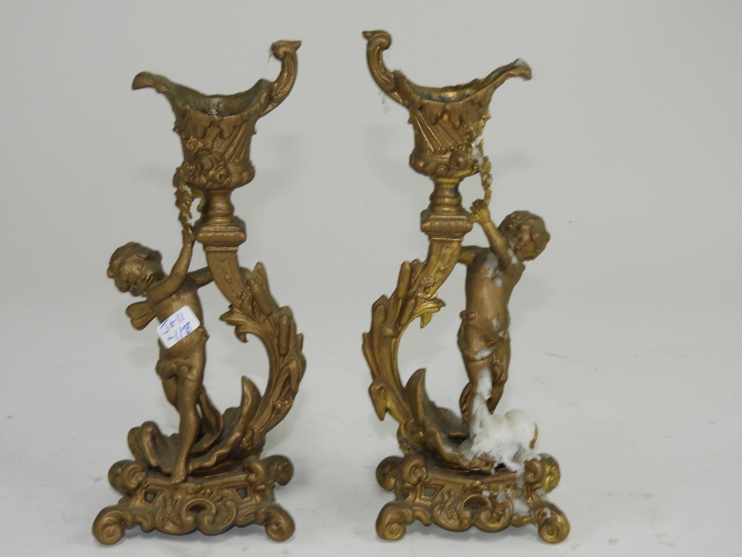 pair of figural gilded candlesticks, 8"