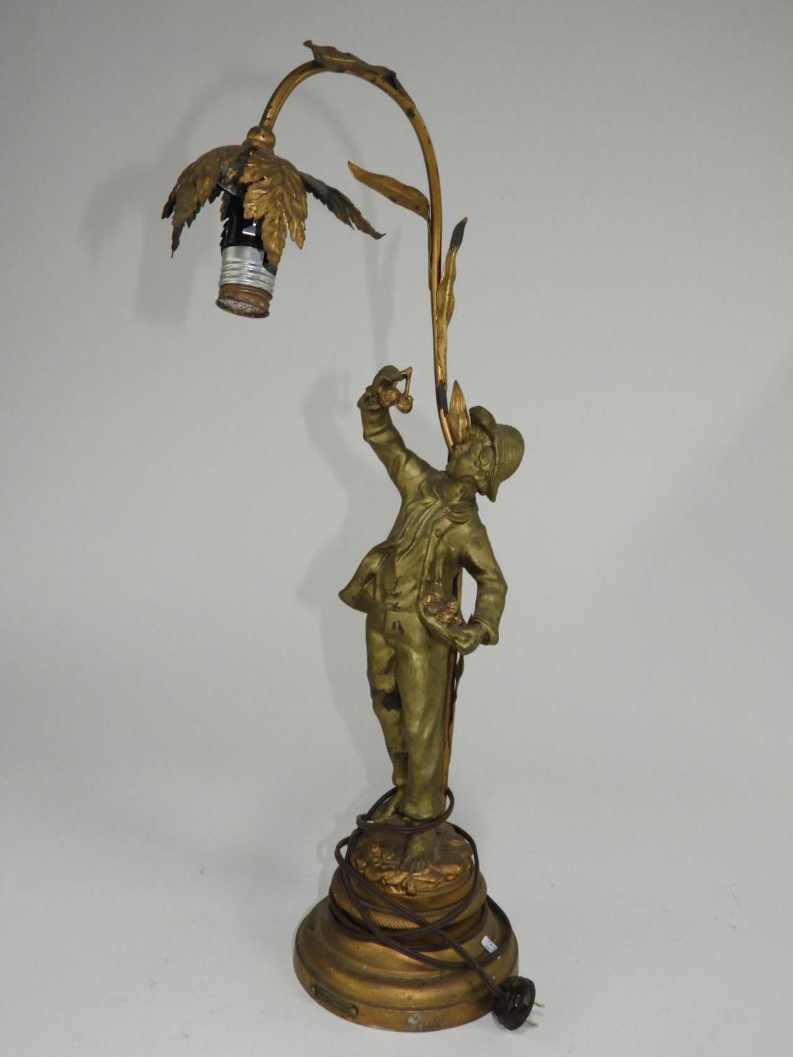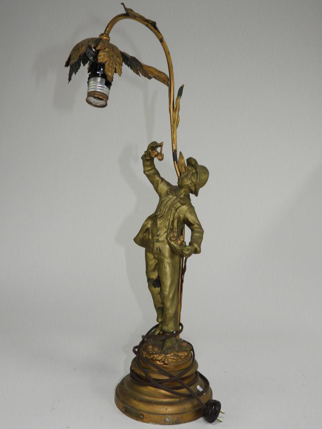bronze patinated metal figural table lamp, bears foundry mark, ht. 23"