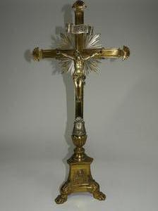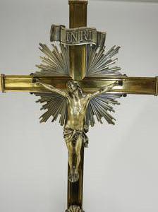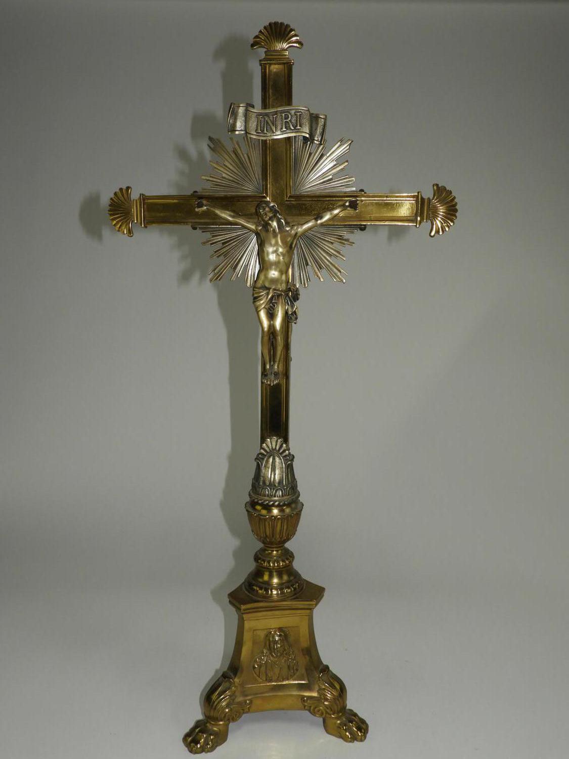 large brass alter crucifix, double sided, ht. 31 1/2"