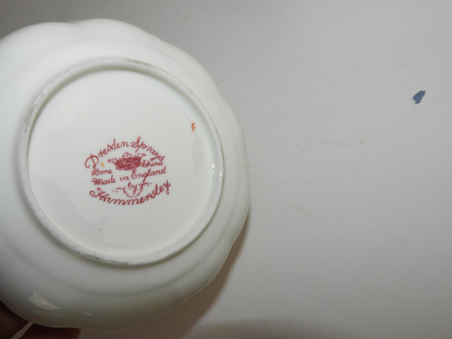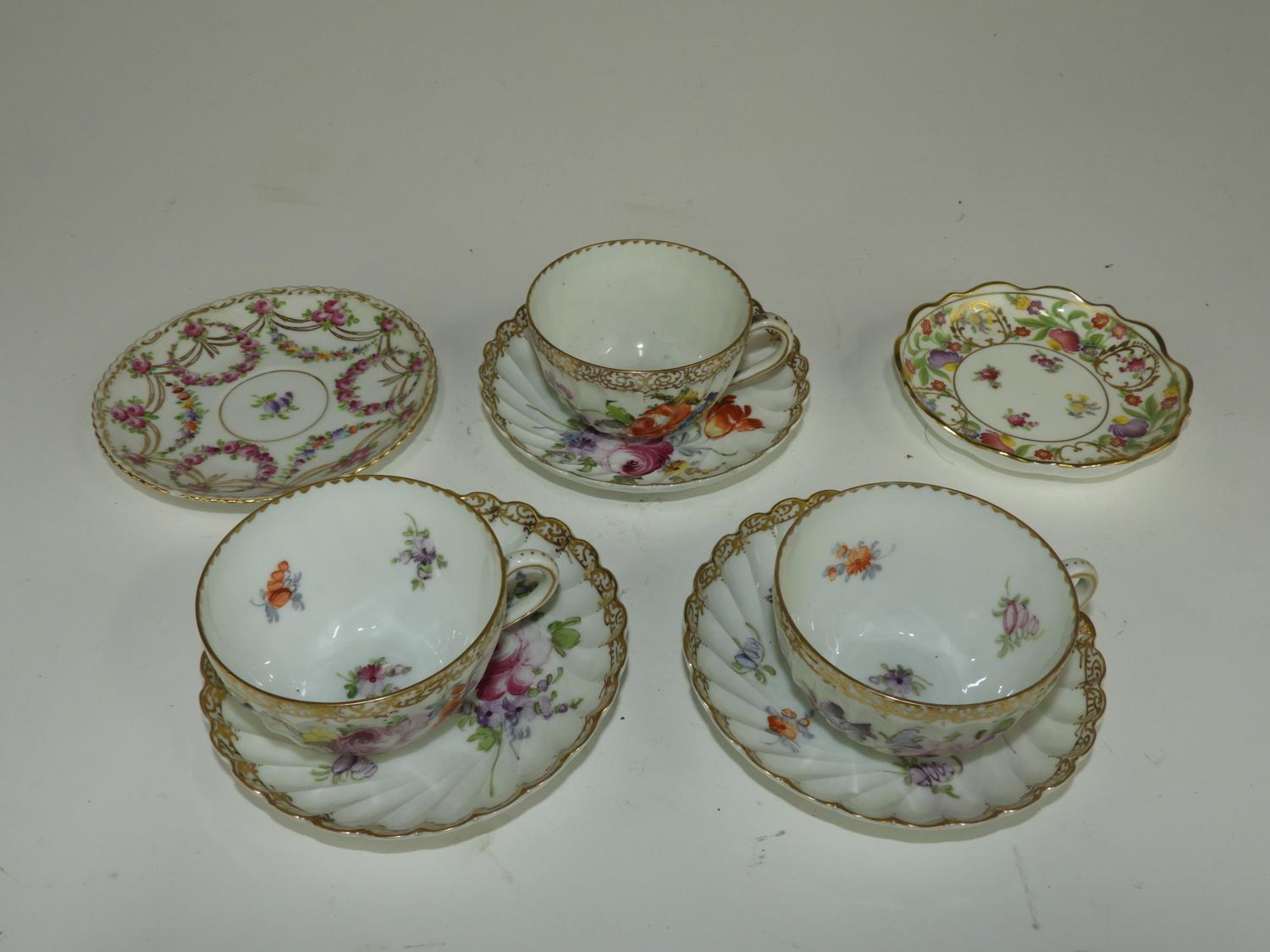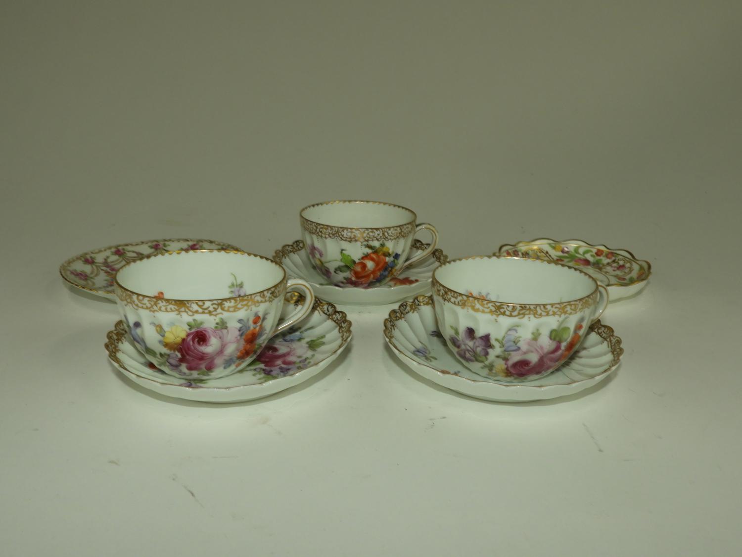 3 dresden cups and saucers, two dishes