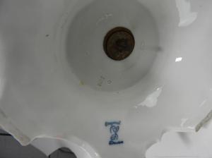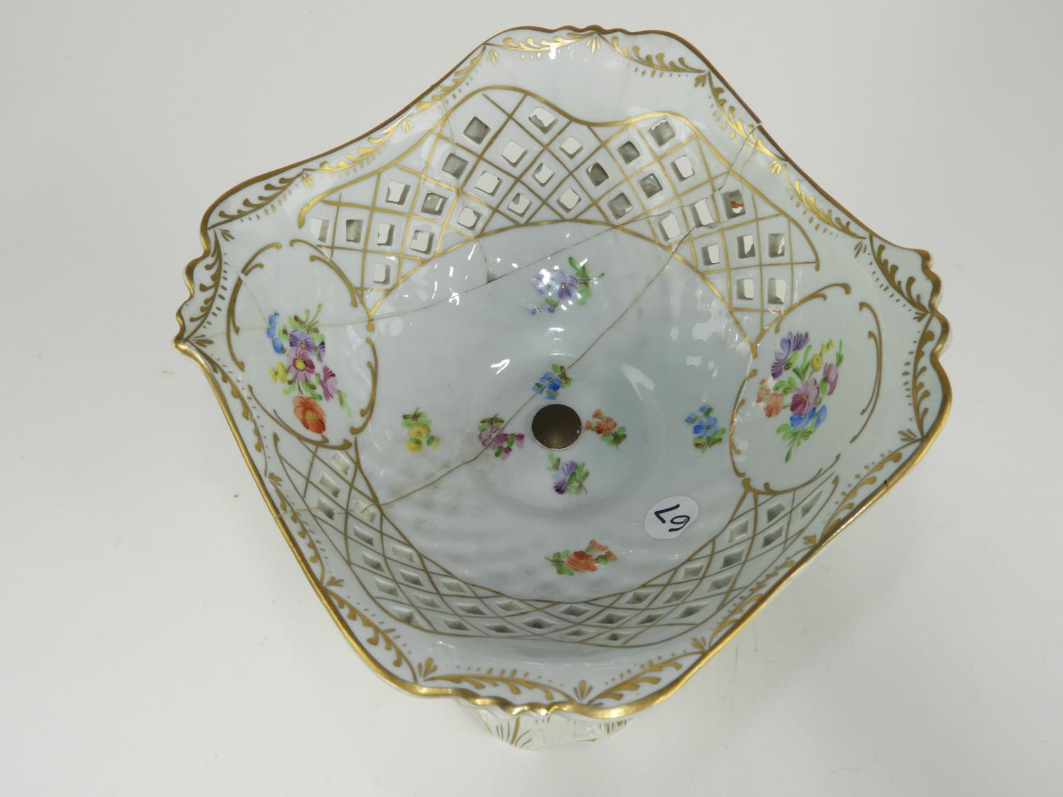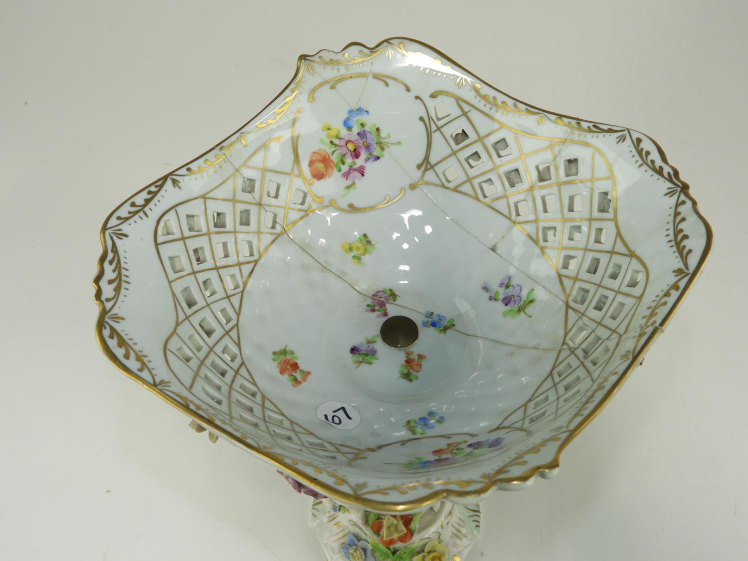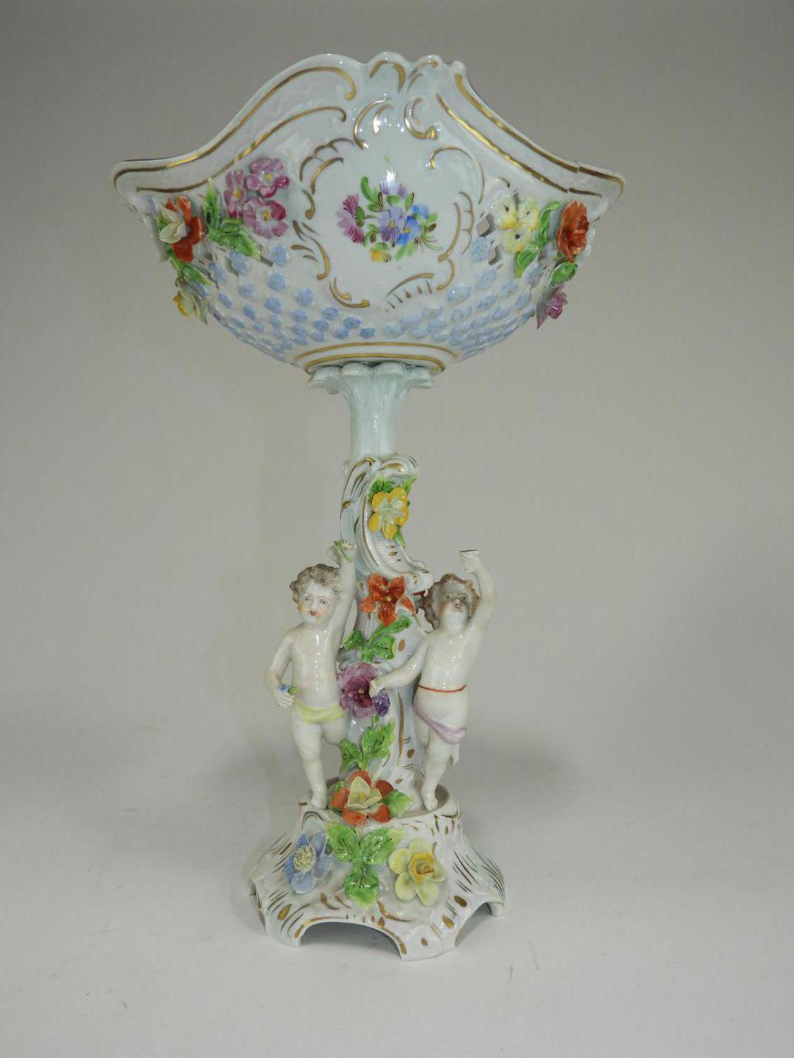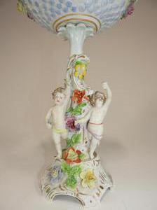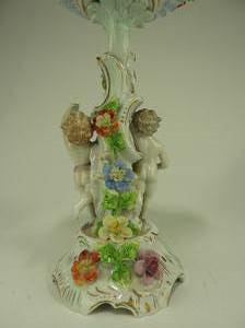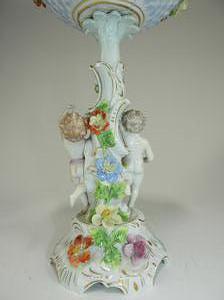 dresden figural comport, ht 14" x 9 1/2" x 9"