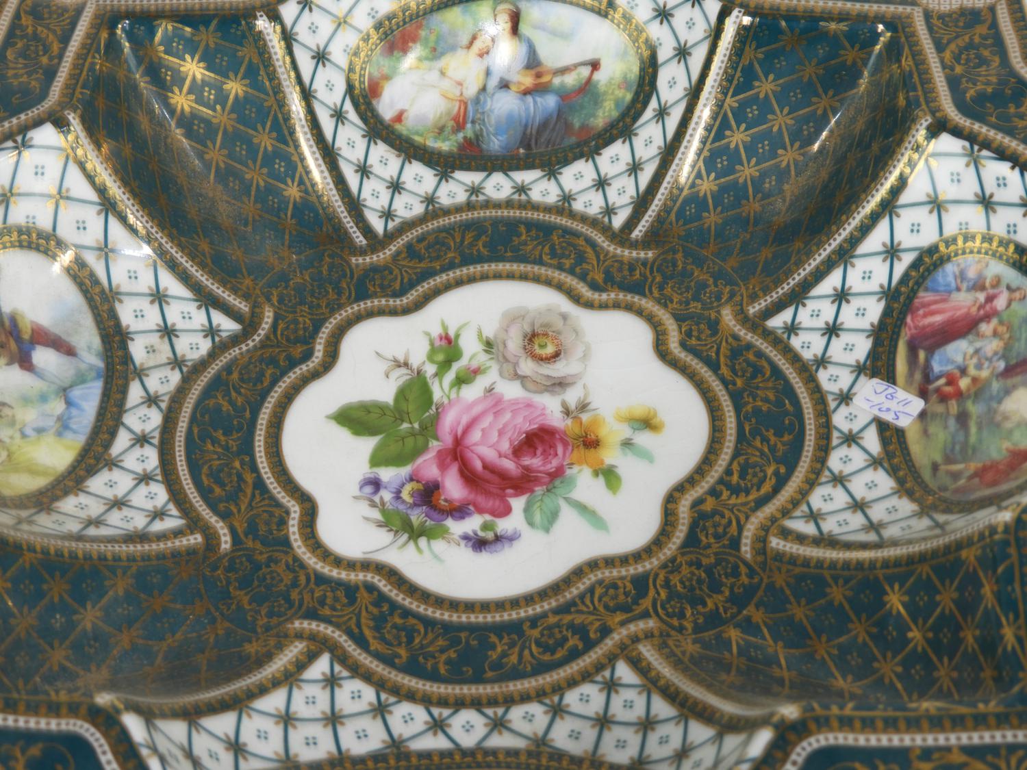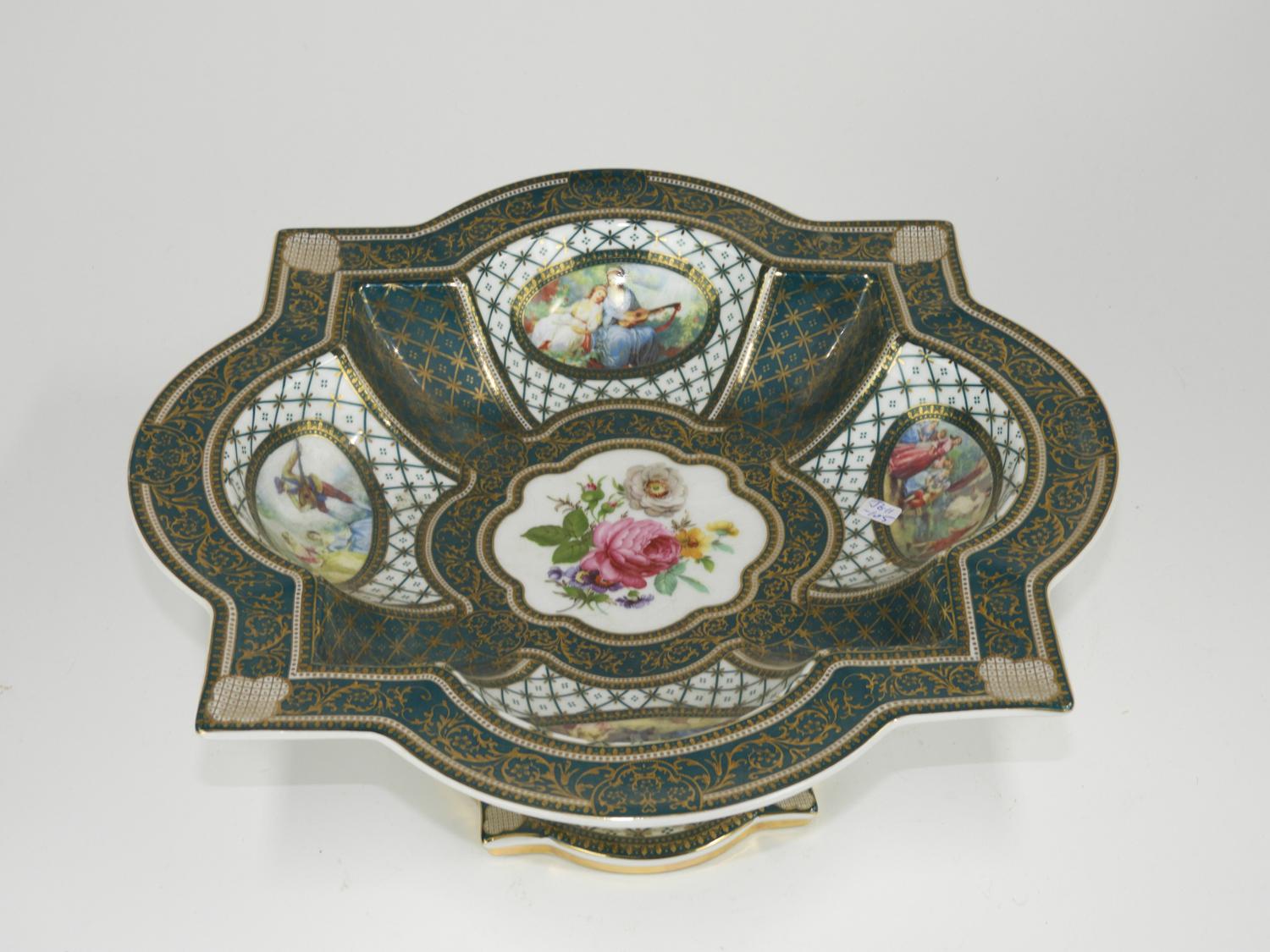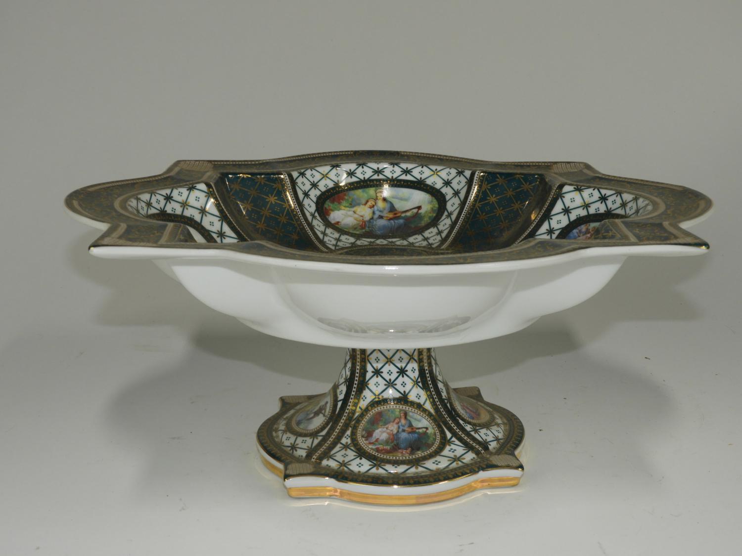 continental style handpainted and gilded comport, 6 1/4" x 14 1/2" x 14 1/2"