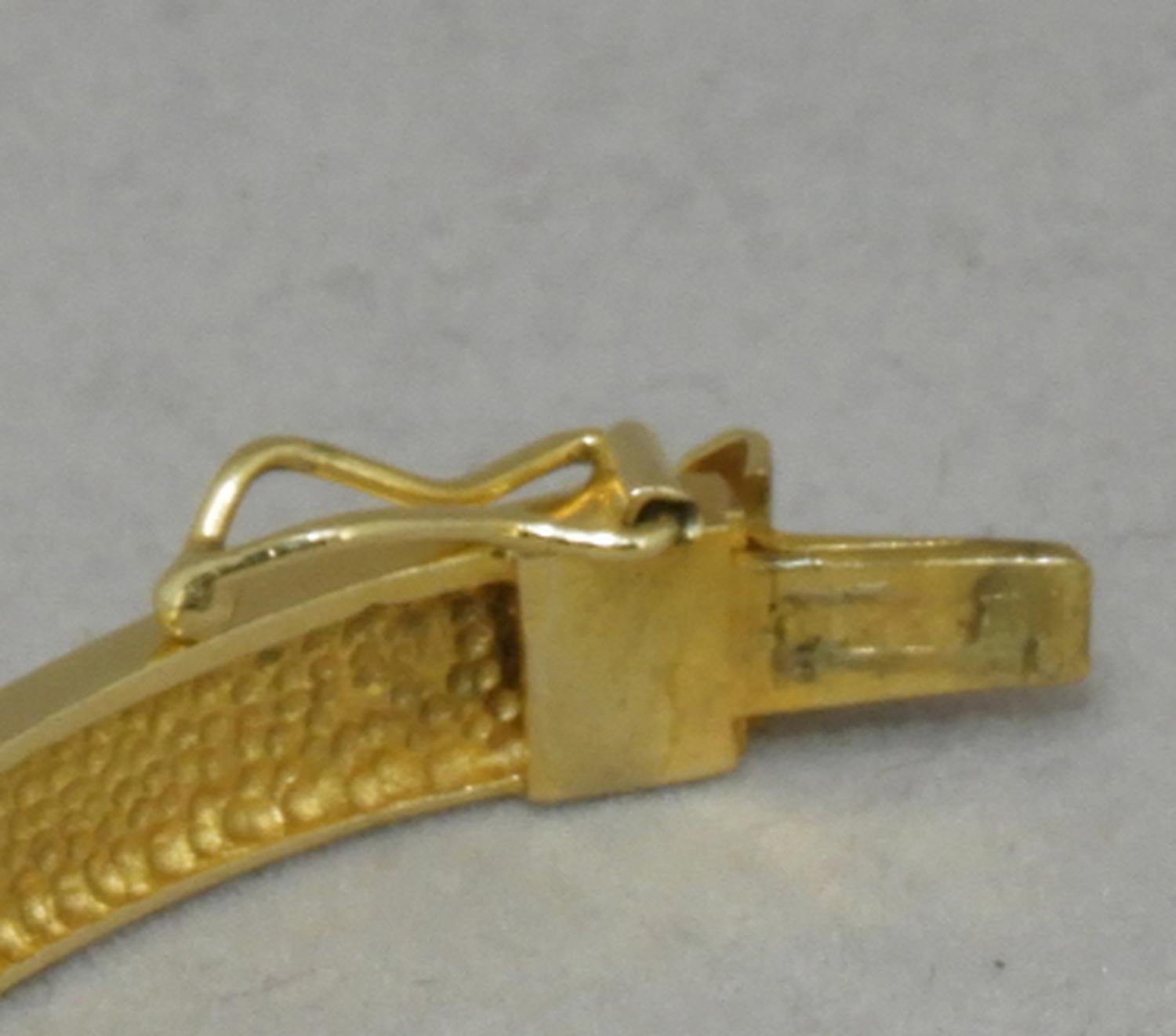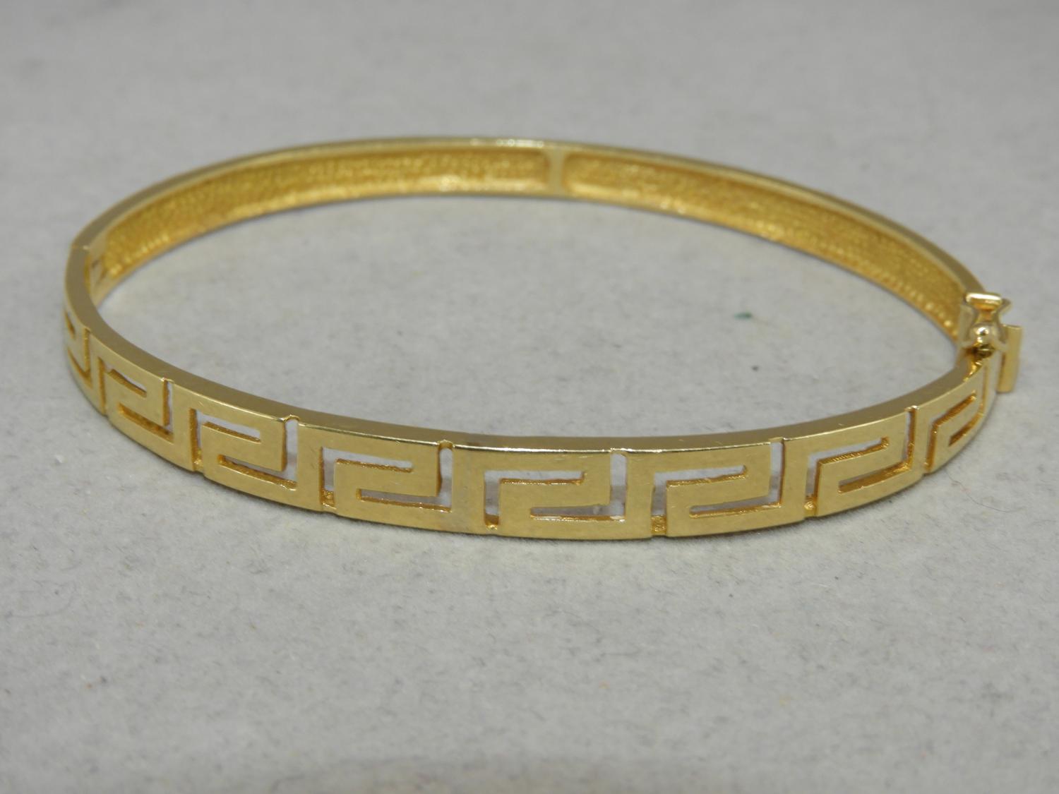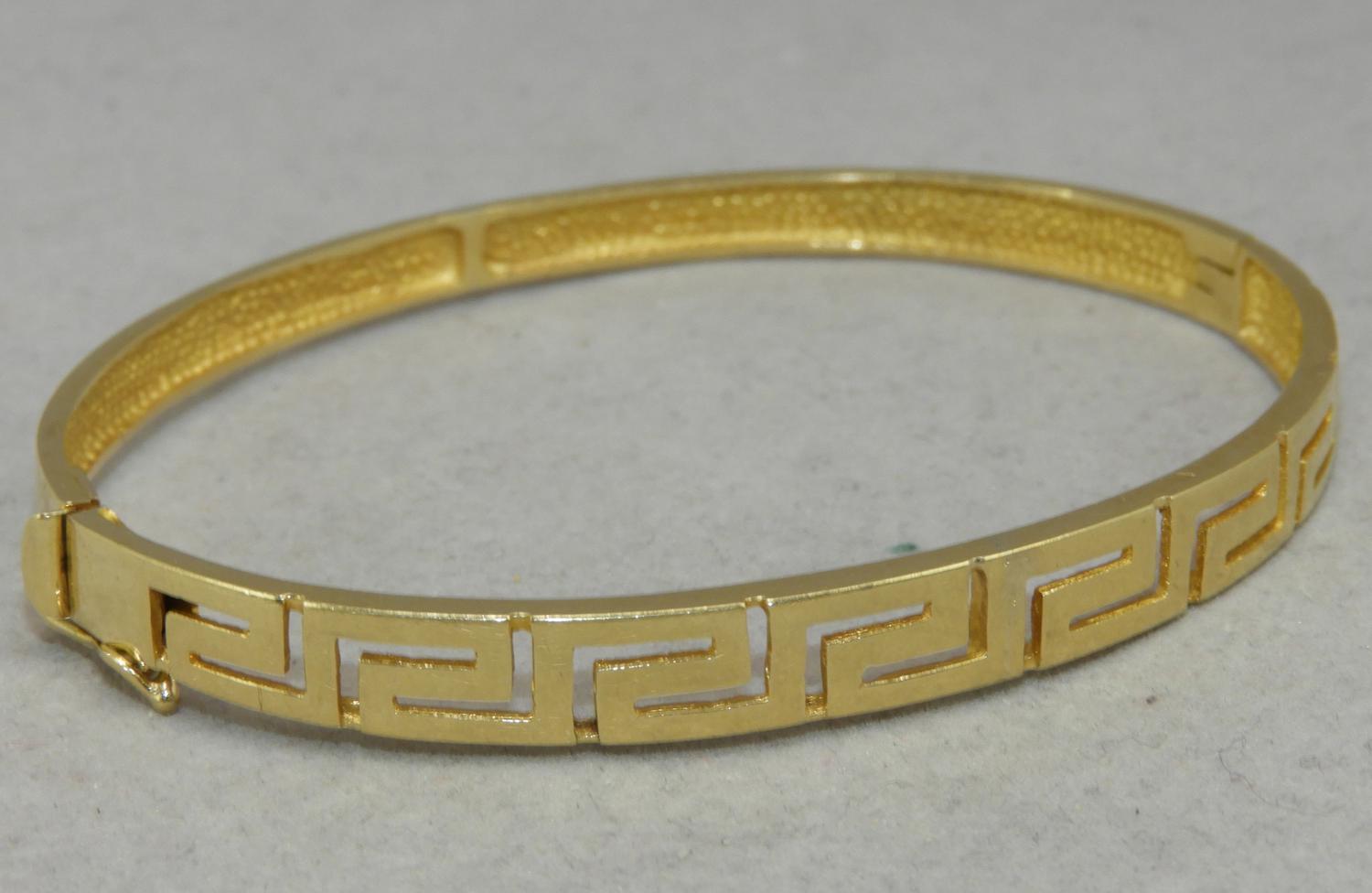 14k. yellow gold greek key motif bangle, weighing approx 12.6 grams, 2 1/2" x 2"