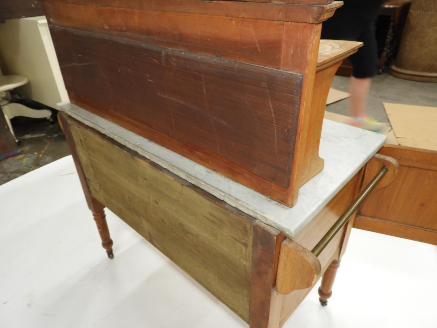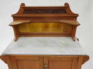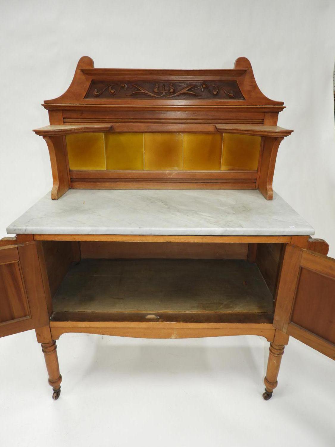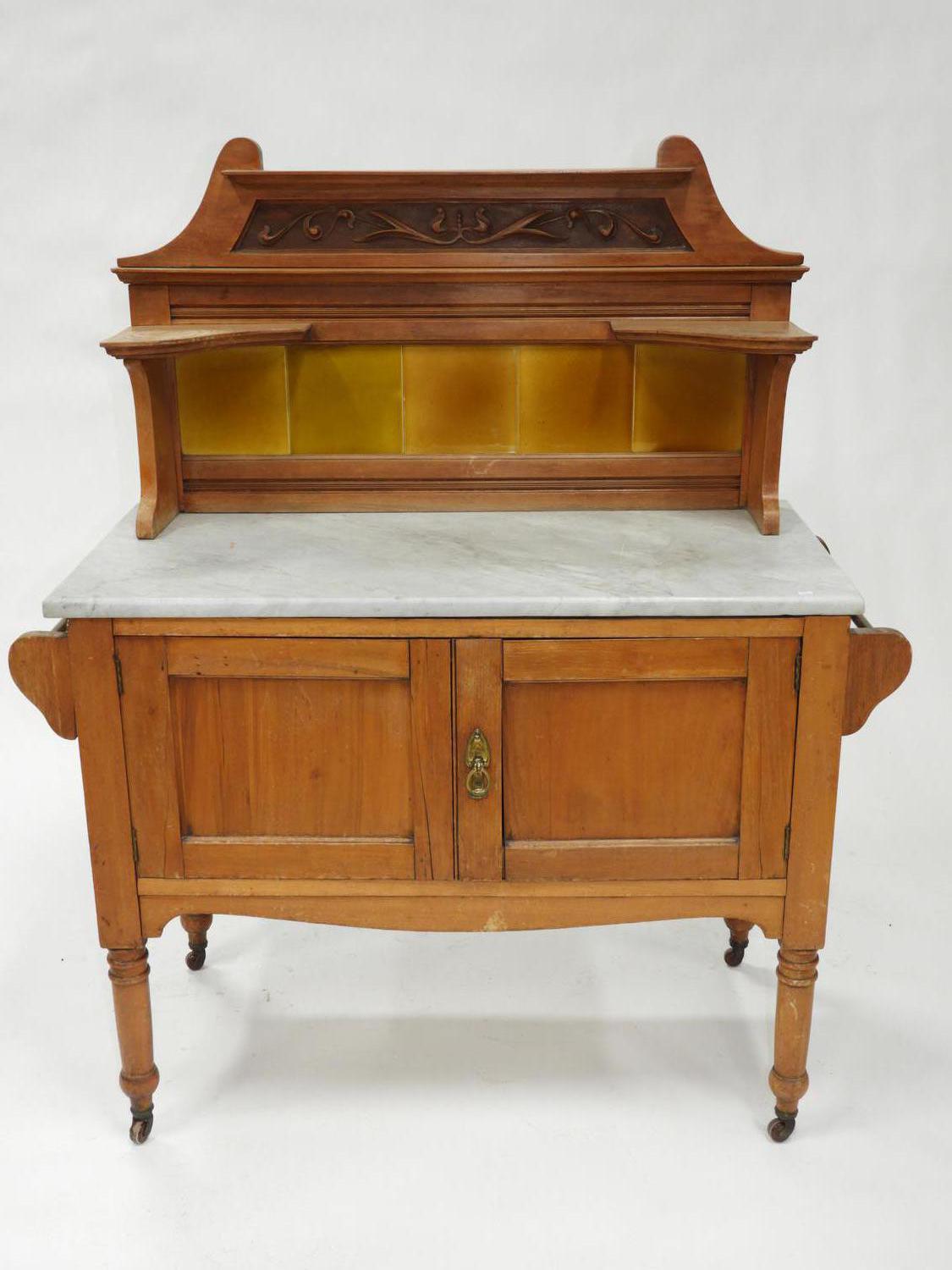 art nouveau marble top wash stand with tiled back, 48" x 42" x 18"