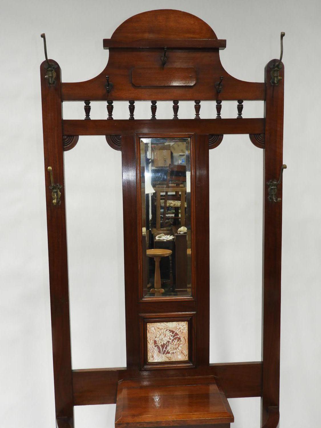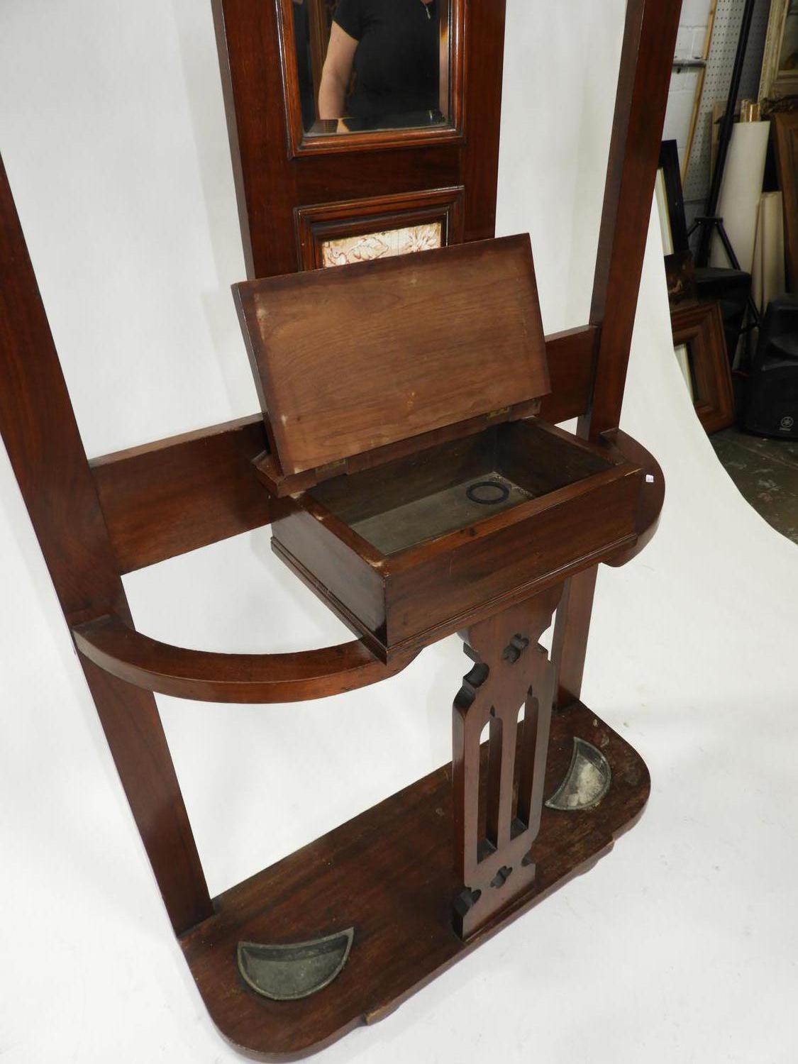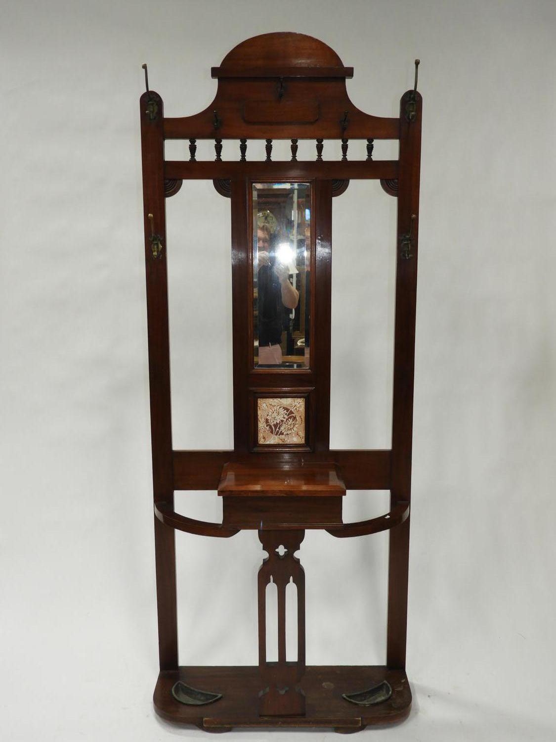 arts and crafts walnut hall stand, 84" x 34" x 12"