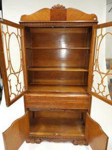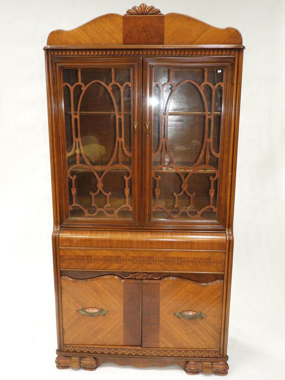 art deco parquetry inlaid china cabinet, 74" x 37" x 16"