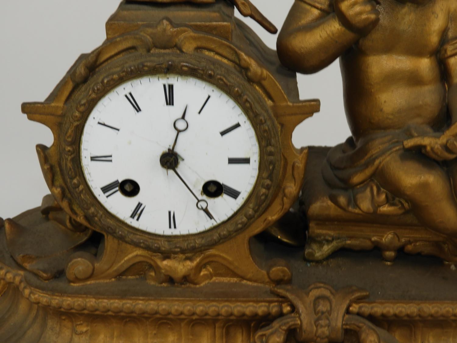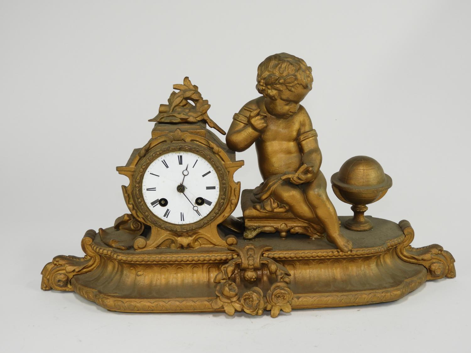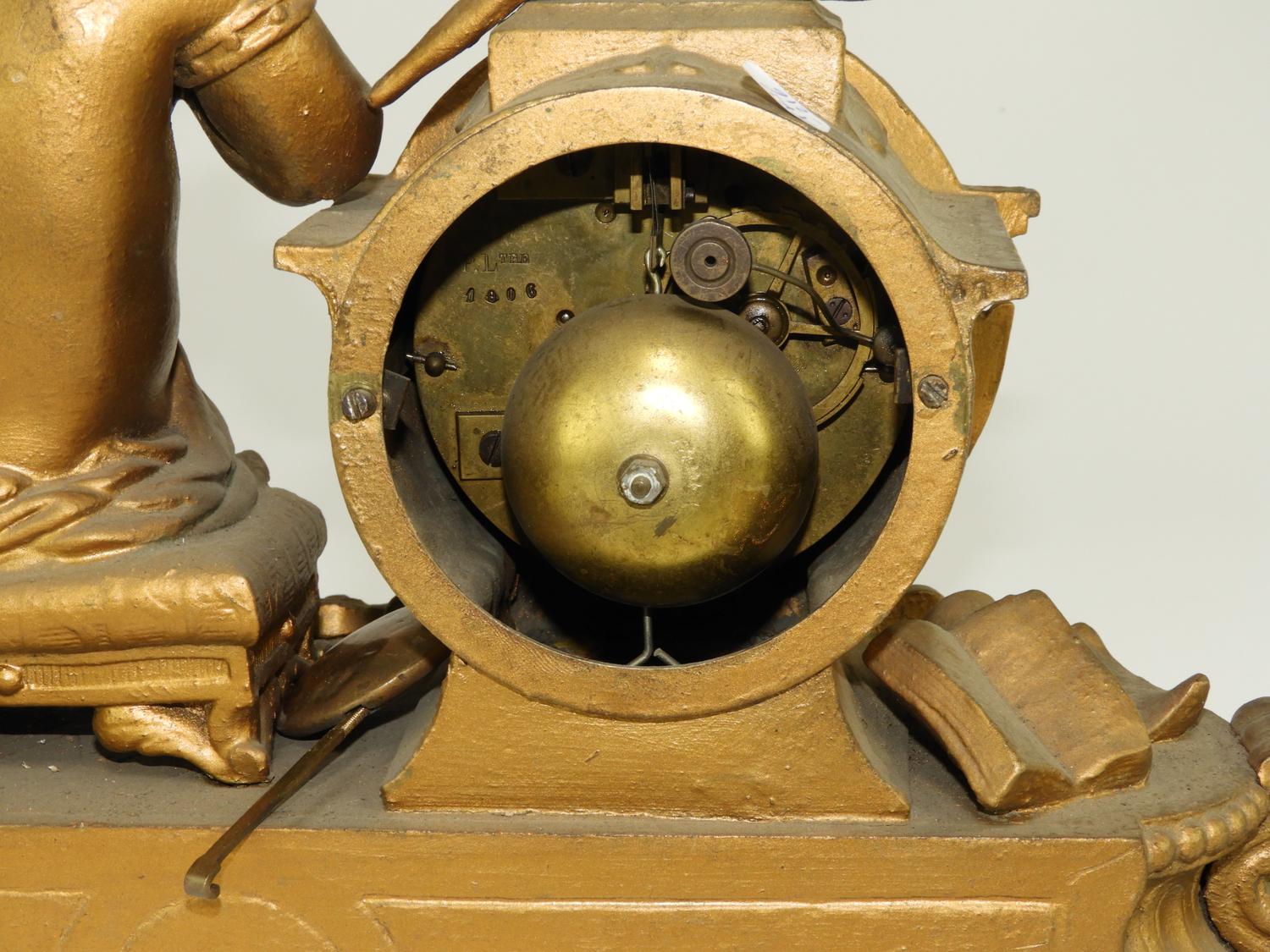 french figural mantle clock, 10" x 19"