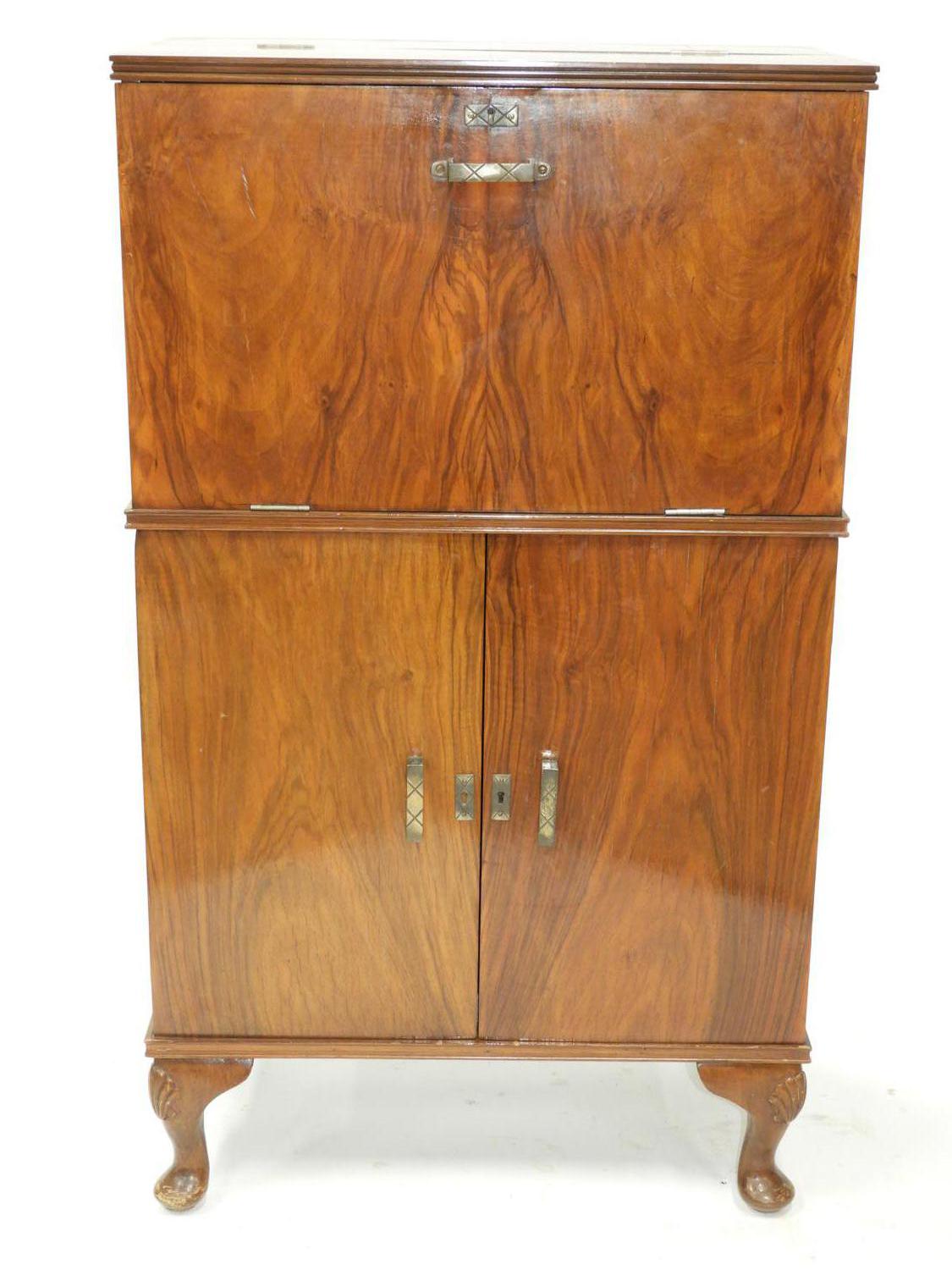 art deco walnut bar cabinet, 42 1/2" x 20 1/2" x 14 1/2"