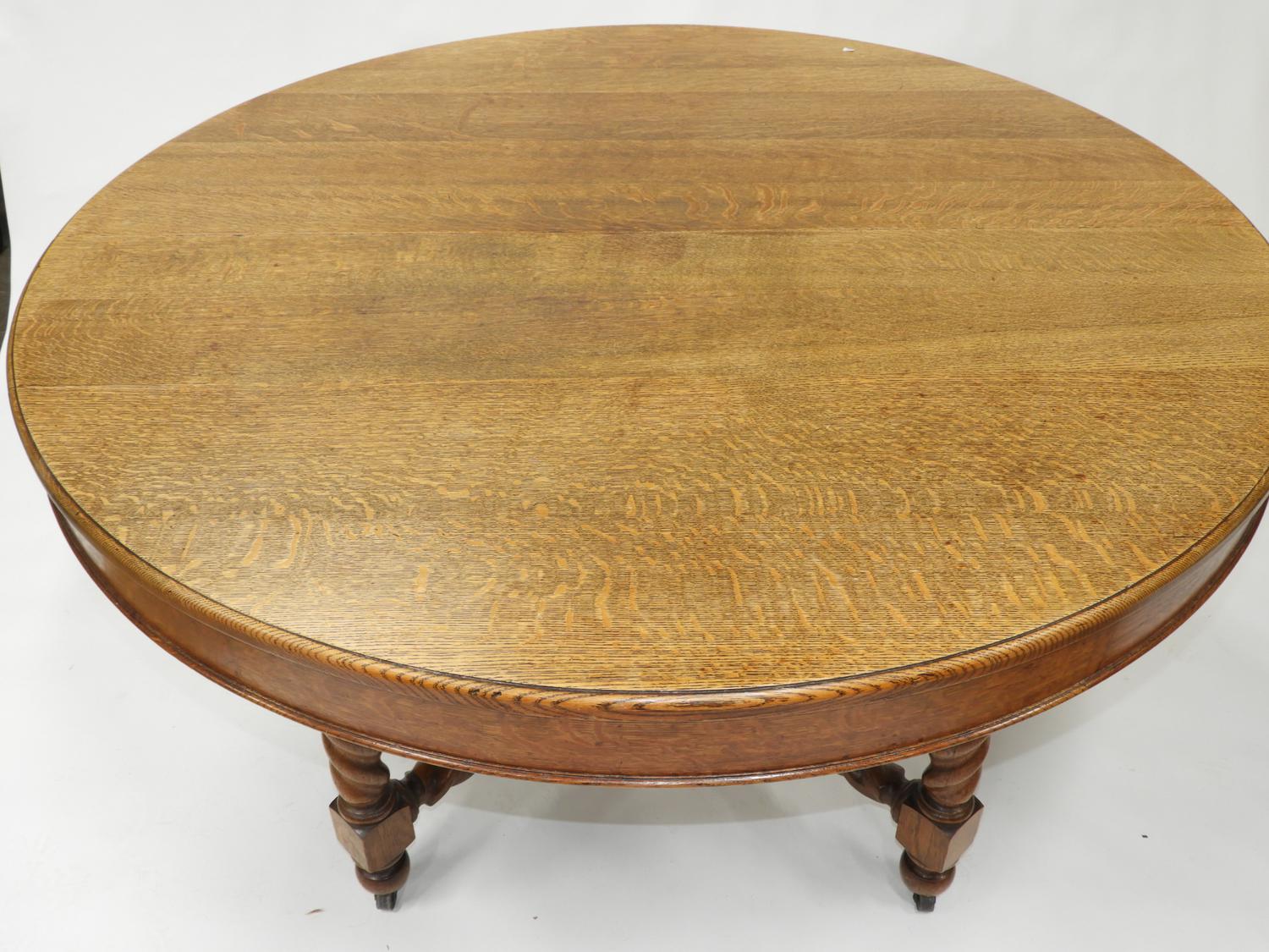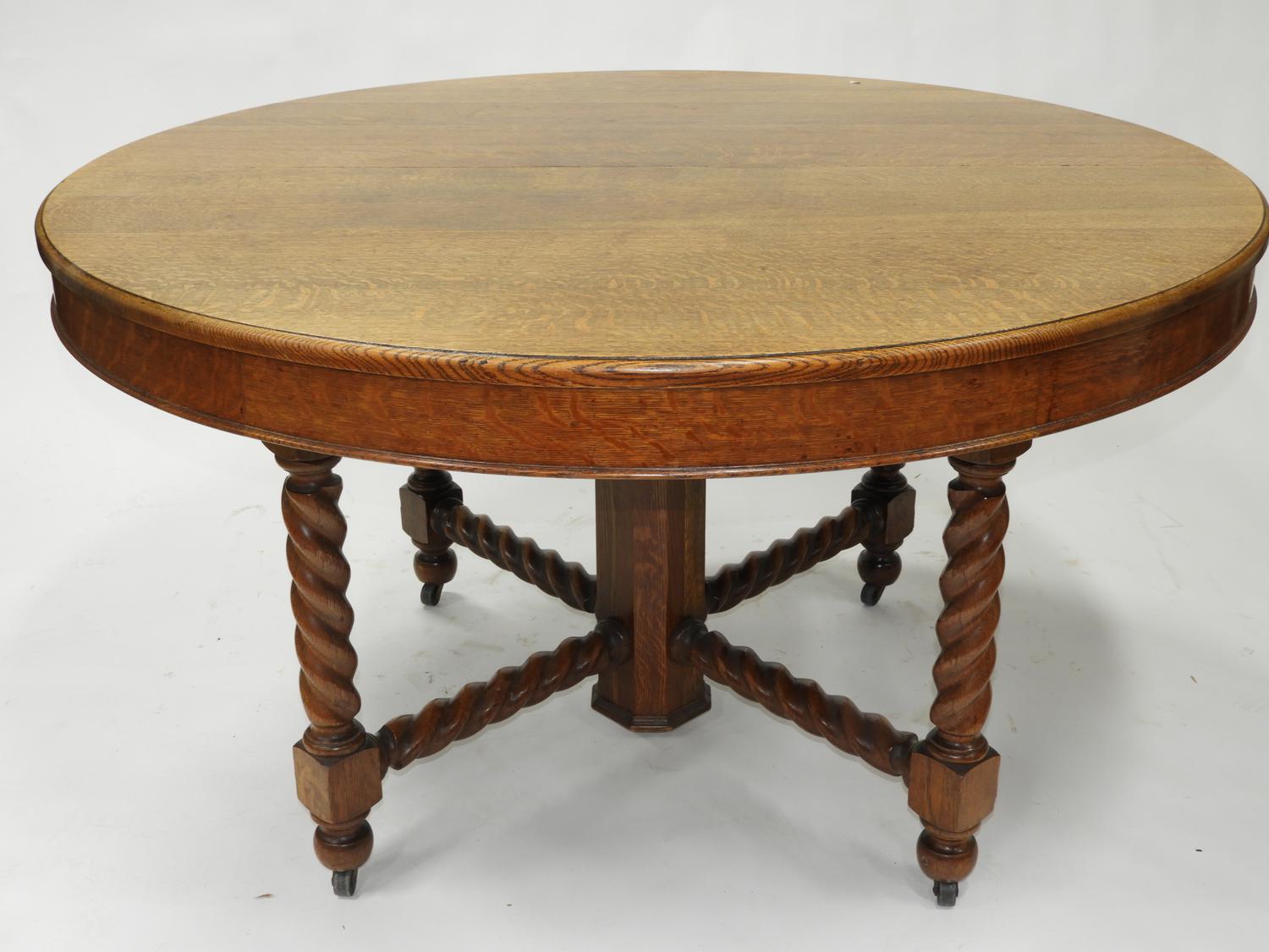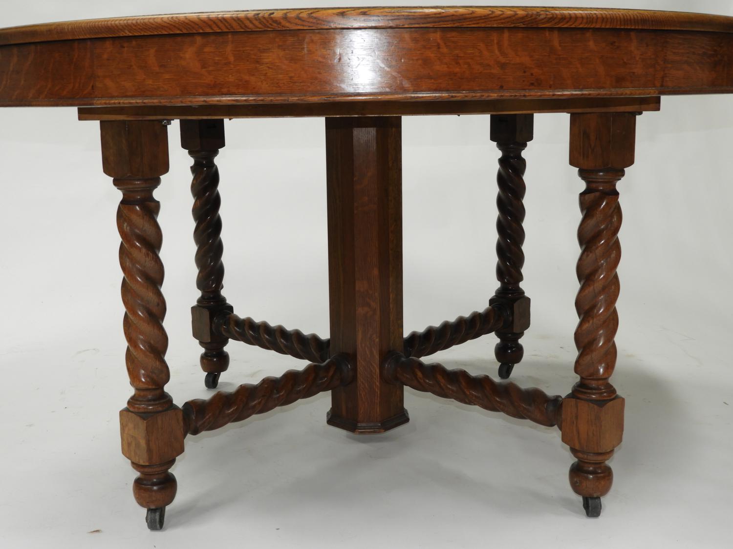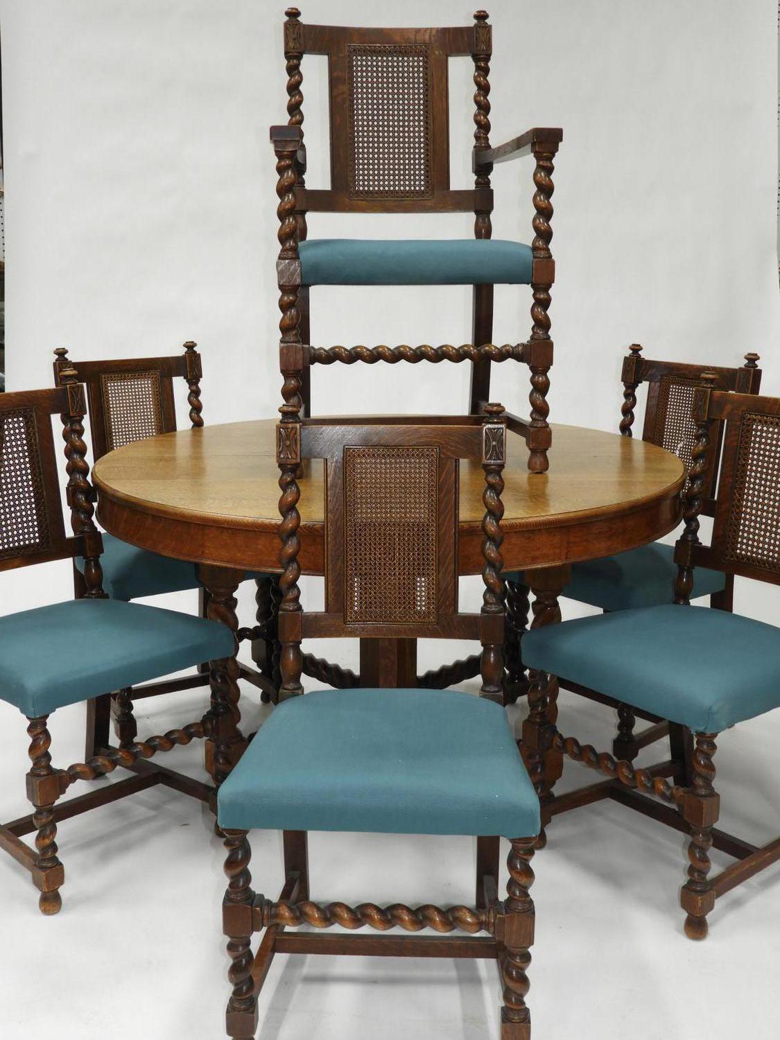 arts and crafts oak dining suite, table with leaves, 6 chairs