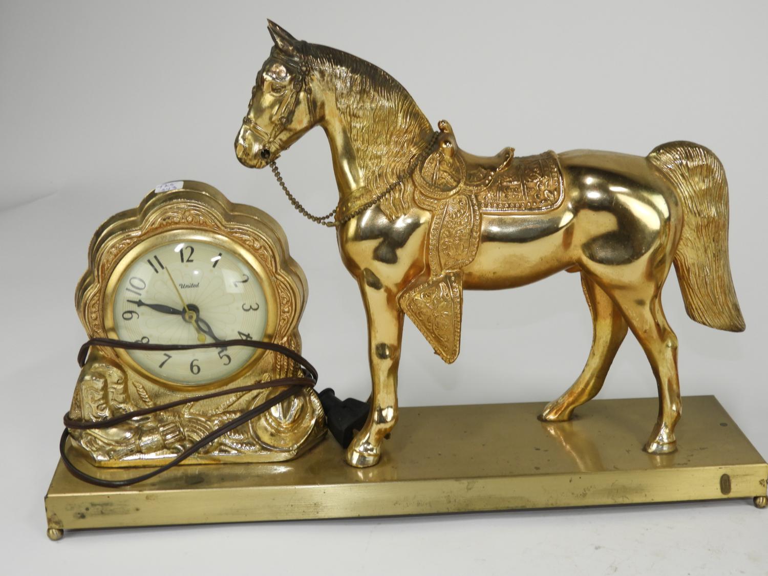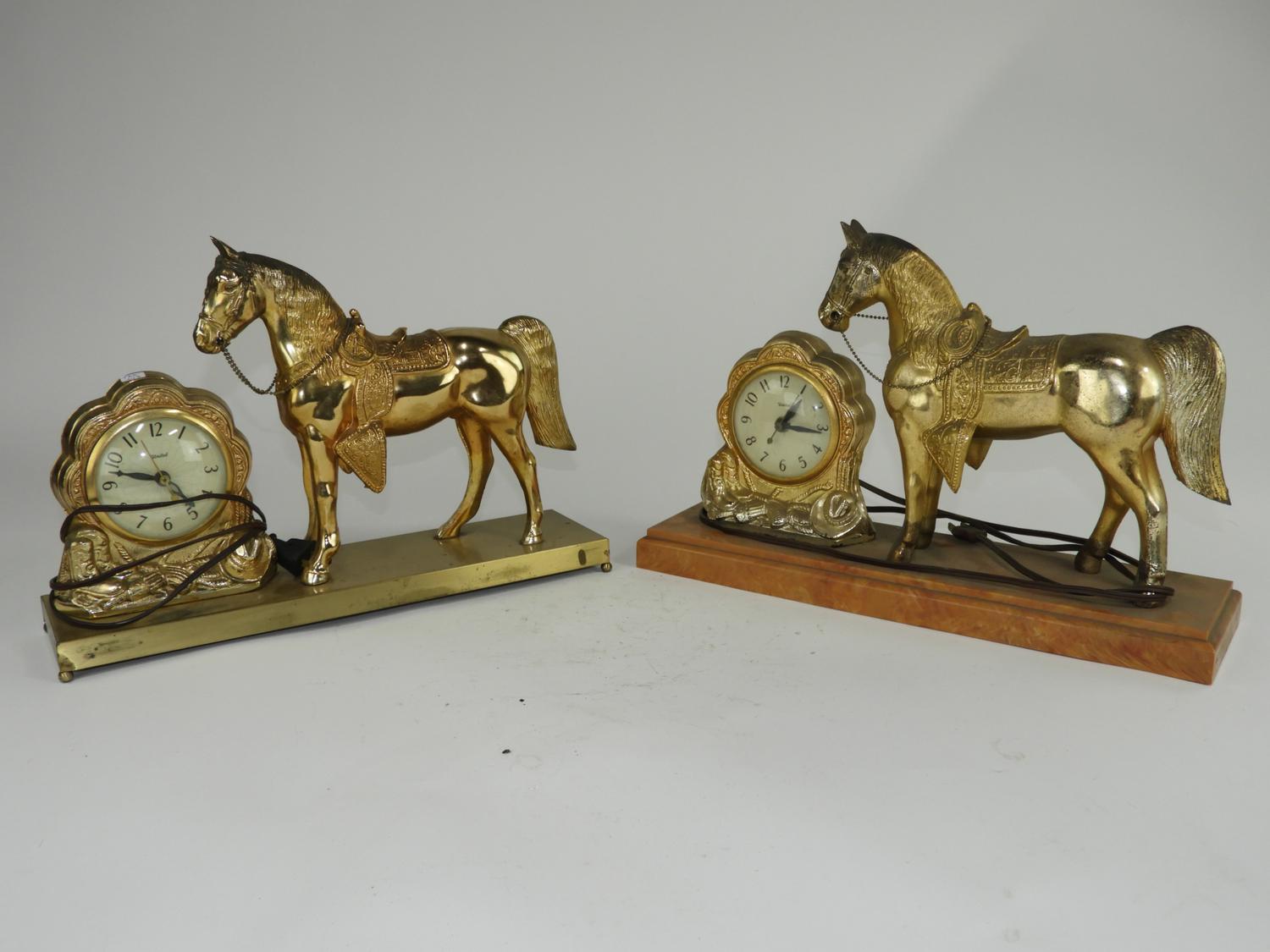 pair of horse motif mantle clocks, 11" x 17"