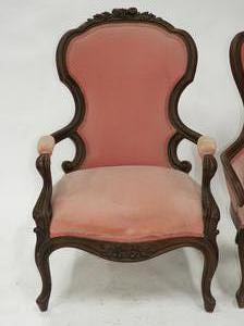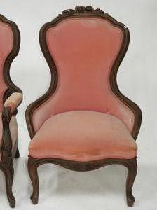 ladies and gents carved mahogany parlor chairs