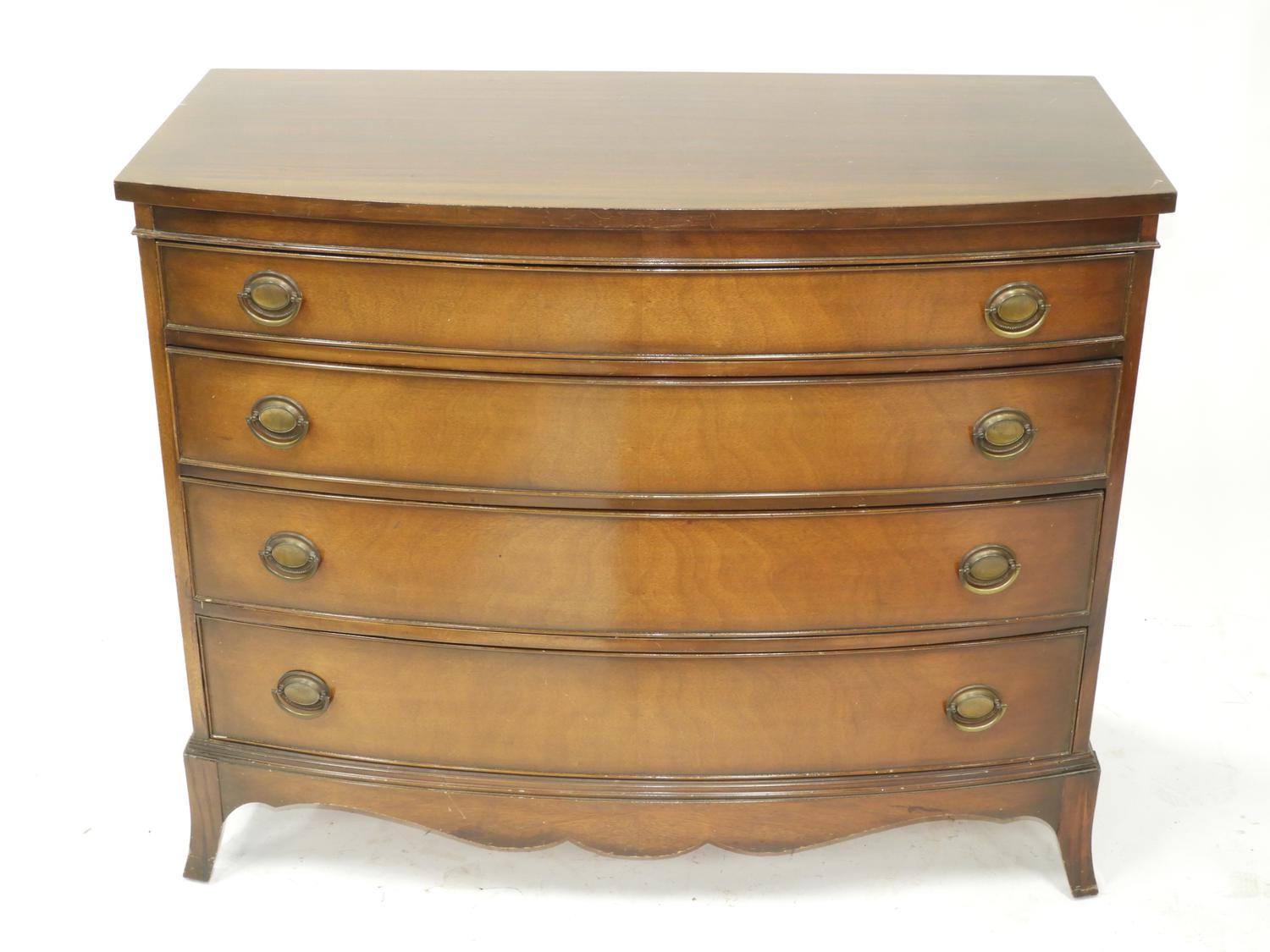 bowfront mahogany chest of drawers, 37" x 45" x 22"