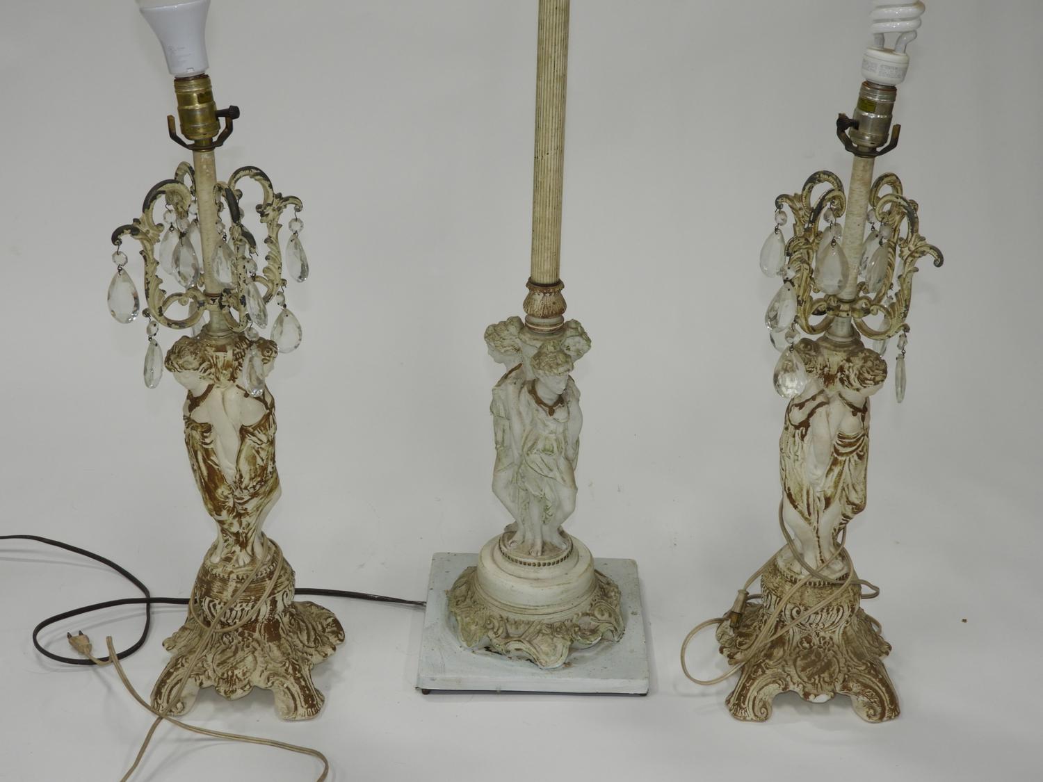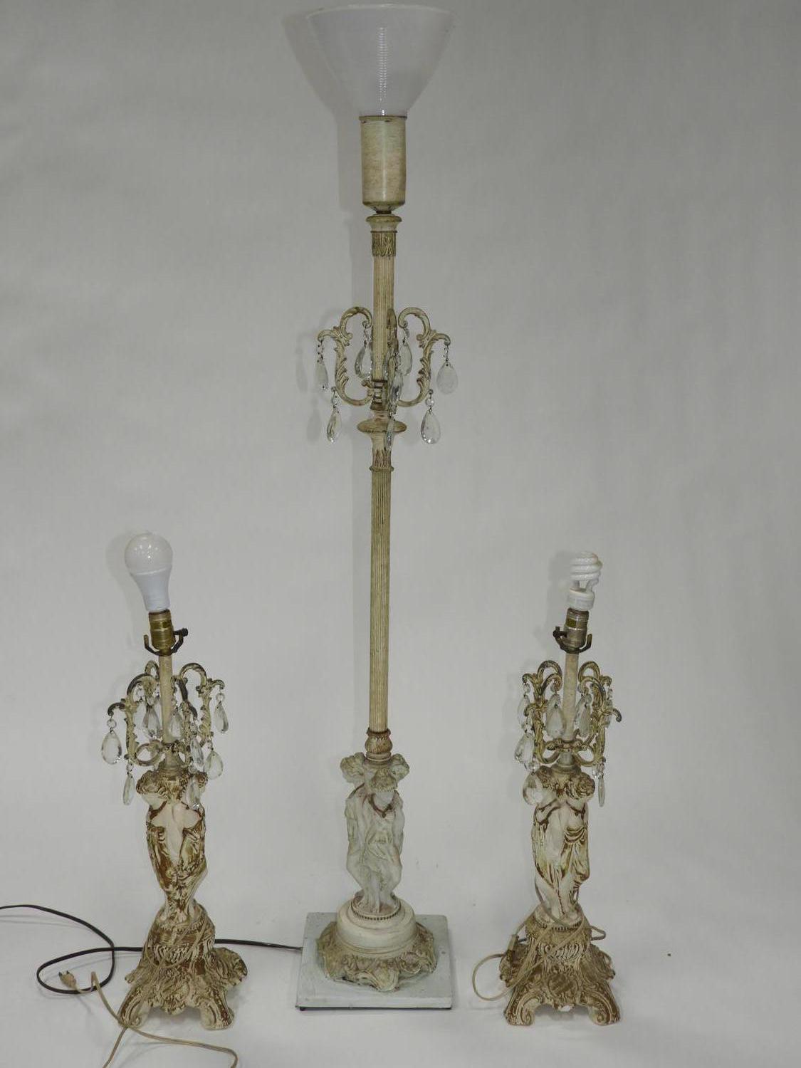 set of 3 figural lamps, pr of table lamps and floor lamp