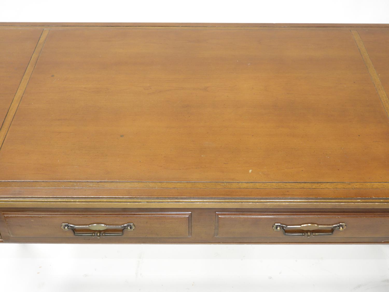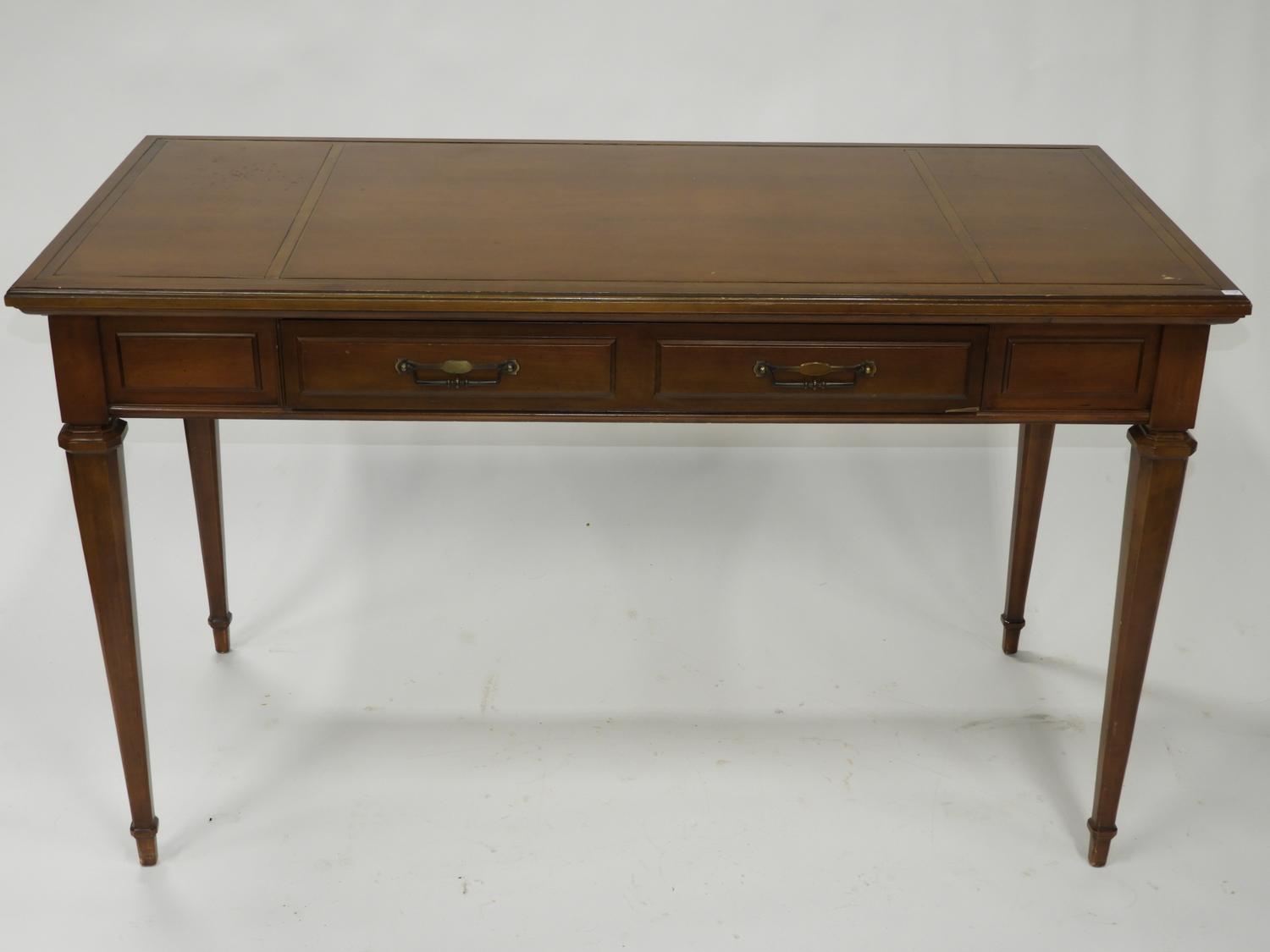 pecan finish writing table, mid 20th century, 30" x 50" x 24"