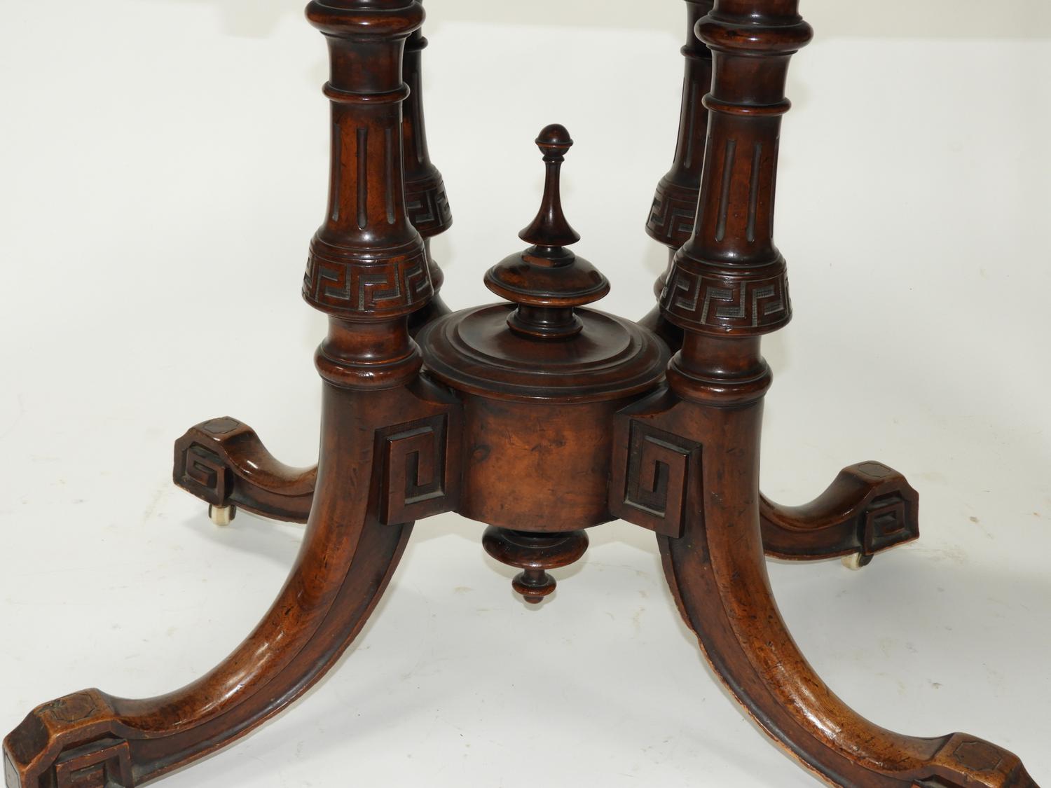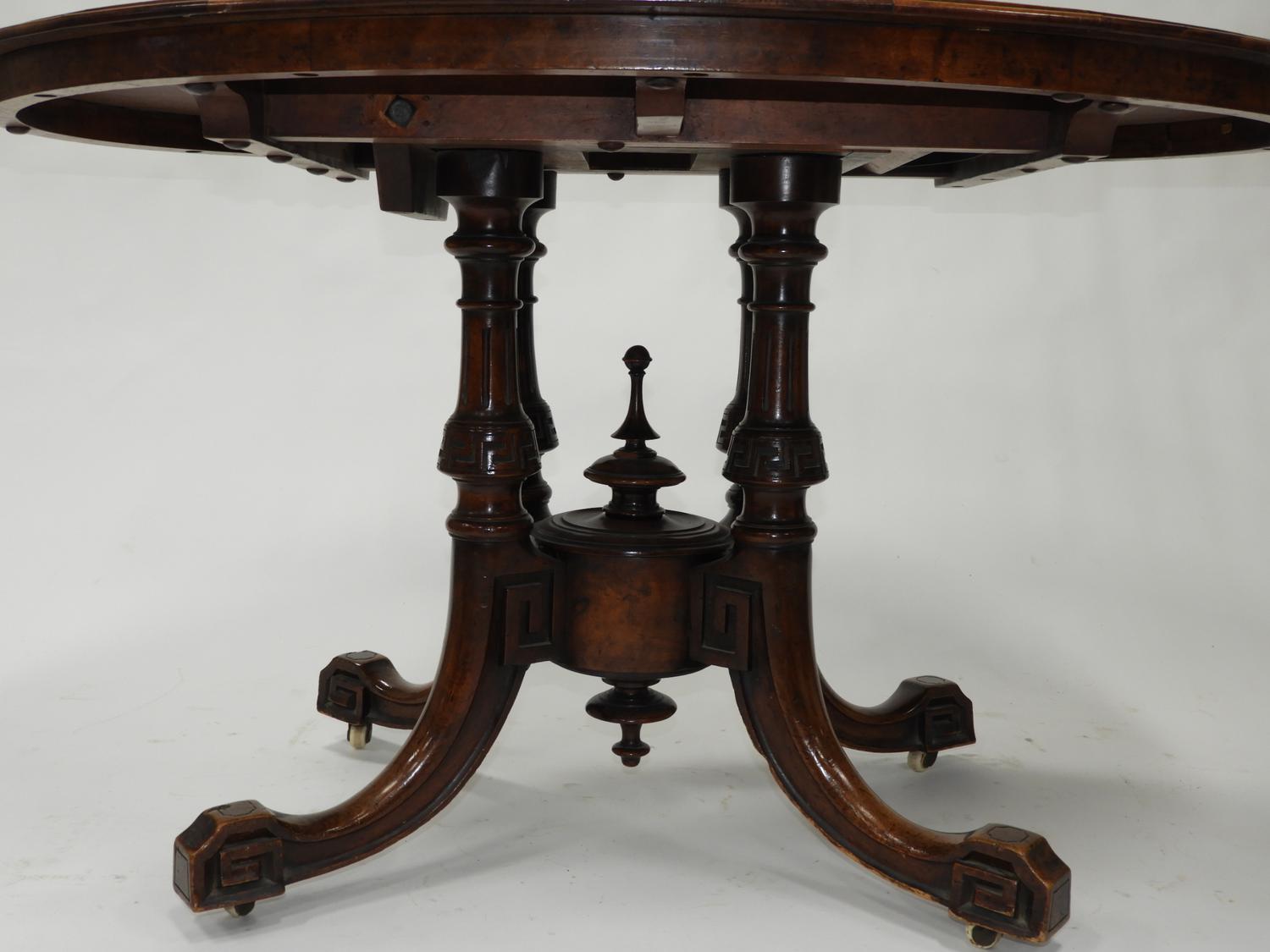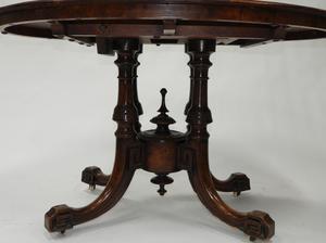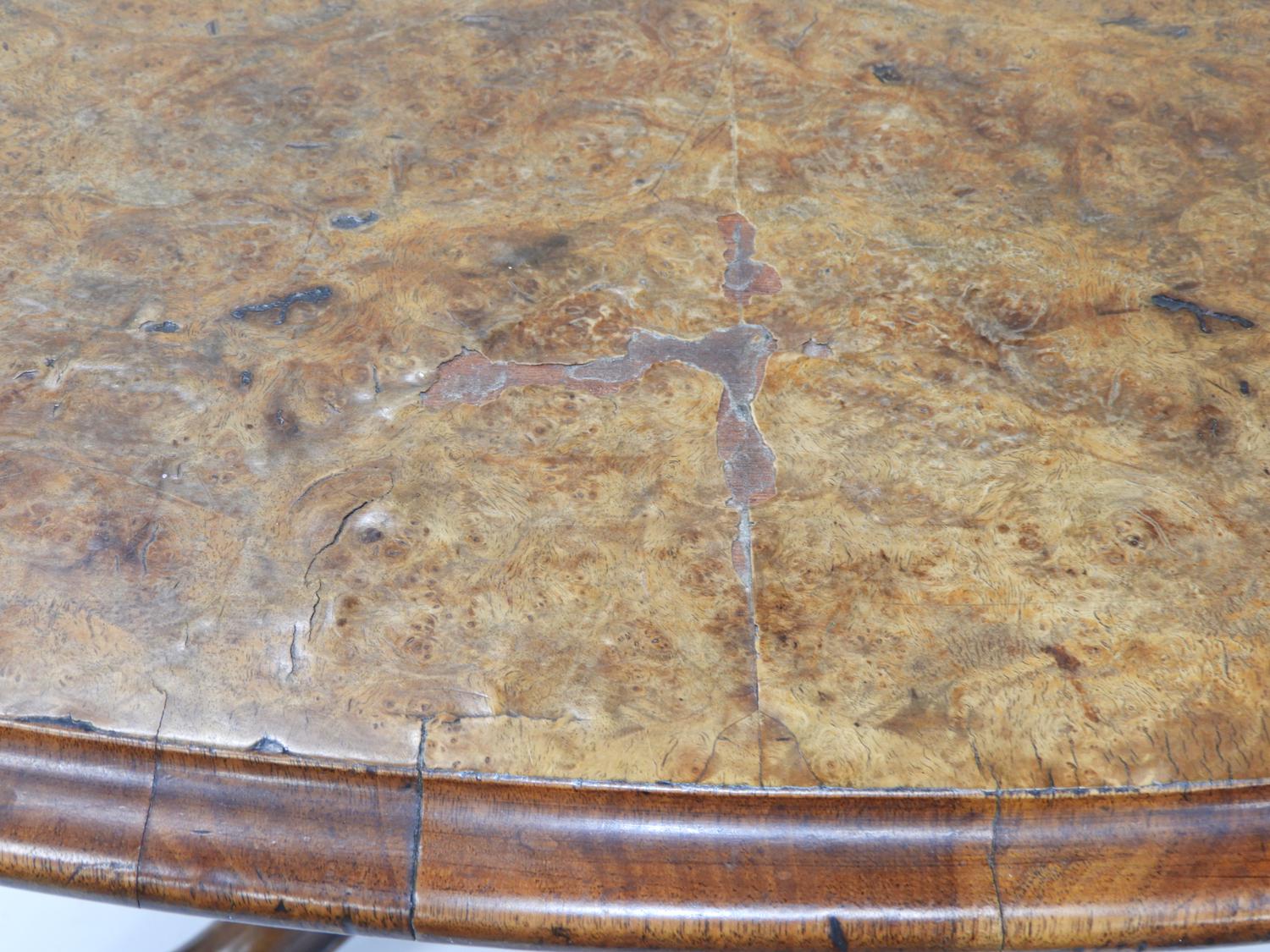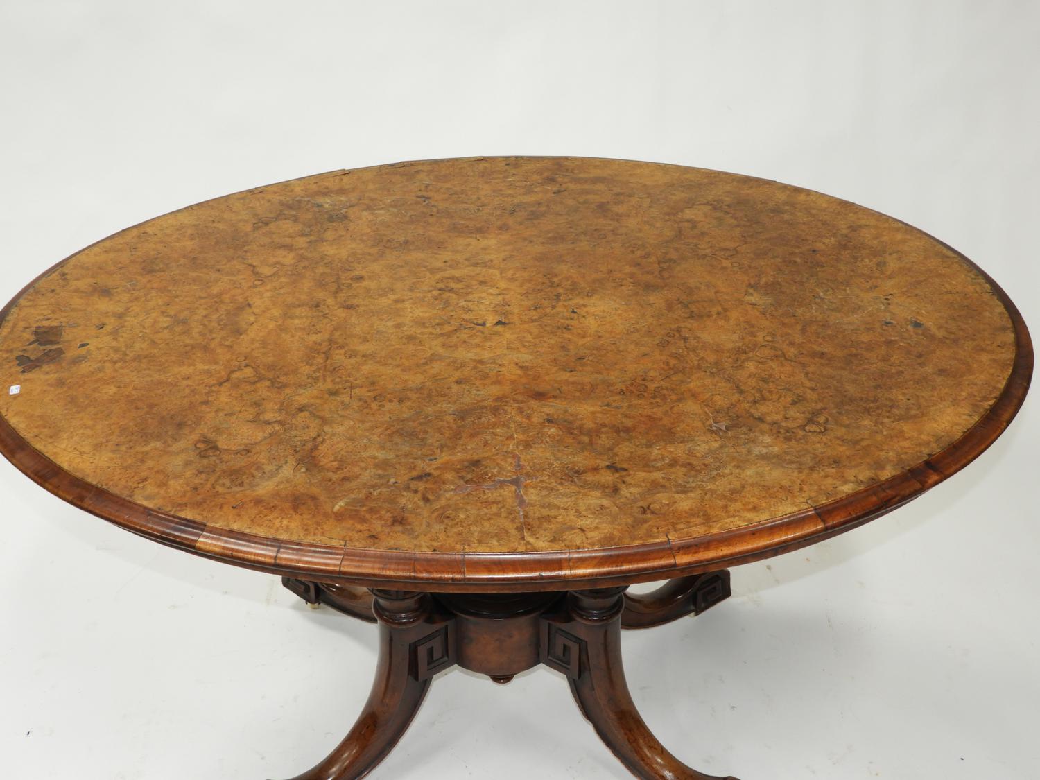 19th century burl walnut tilt top breakfast table, 29" x 48 1/2" x 36"